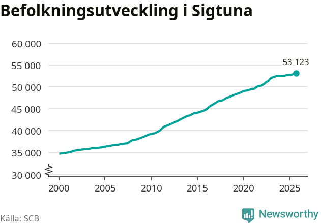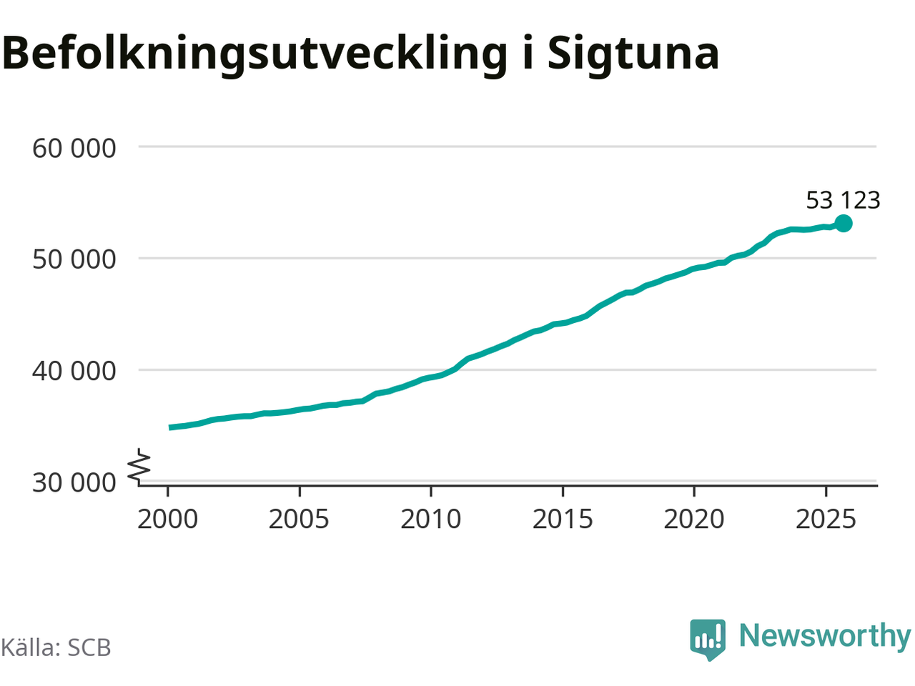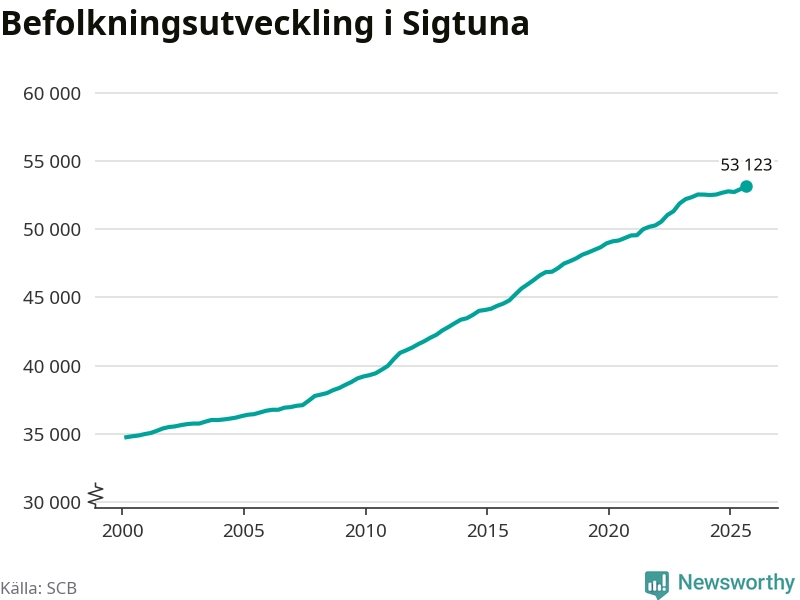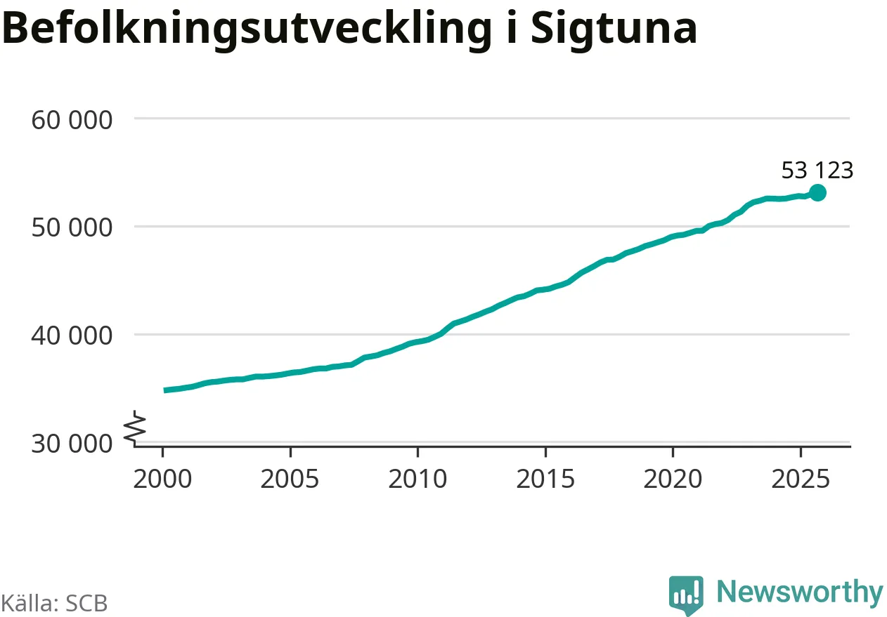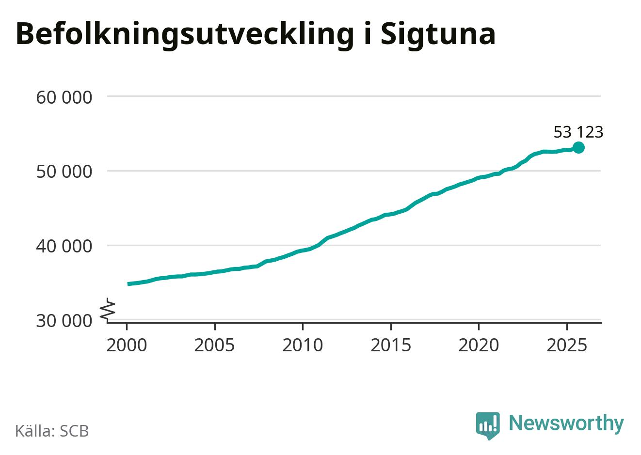 Befolkningen ökade i Sigtuna kommun under det tredje kvartalet 2025. Den 30 september bodde enligt SCB:s senaste siffror 53 123 personer i kommunen, vilket är 197 fler än i slutet av andra kvartalet.
