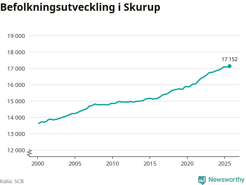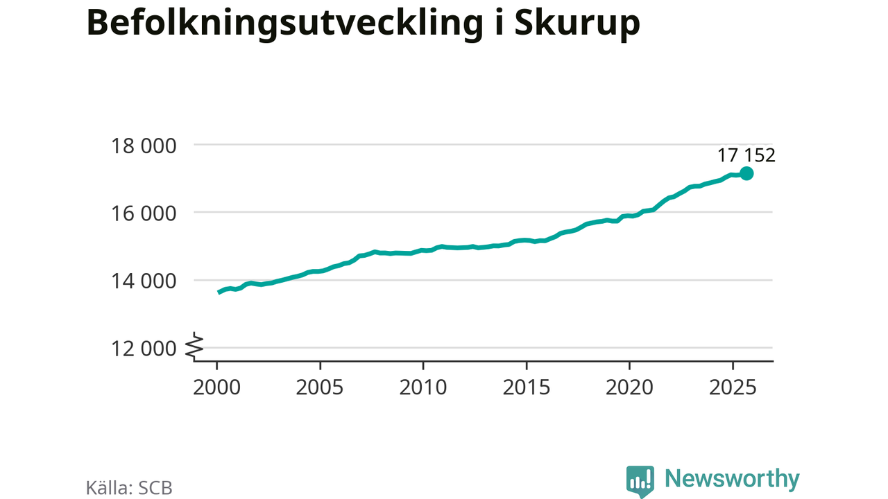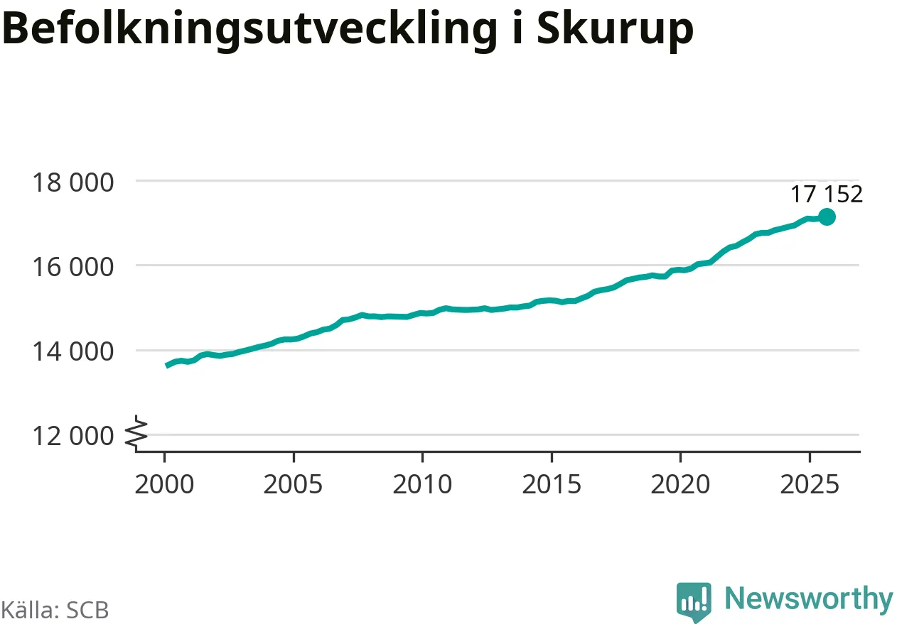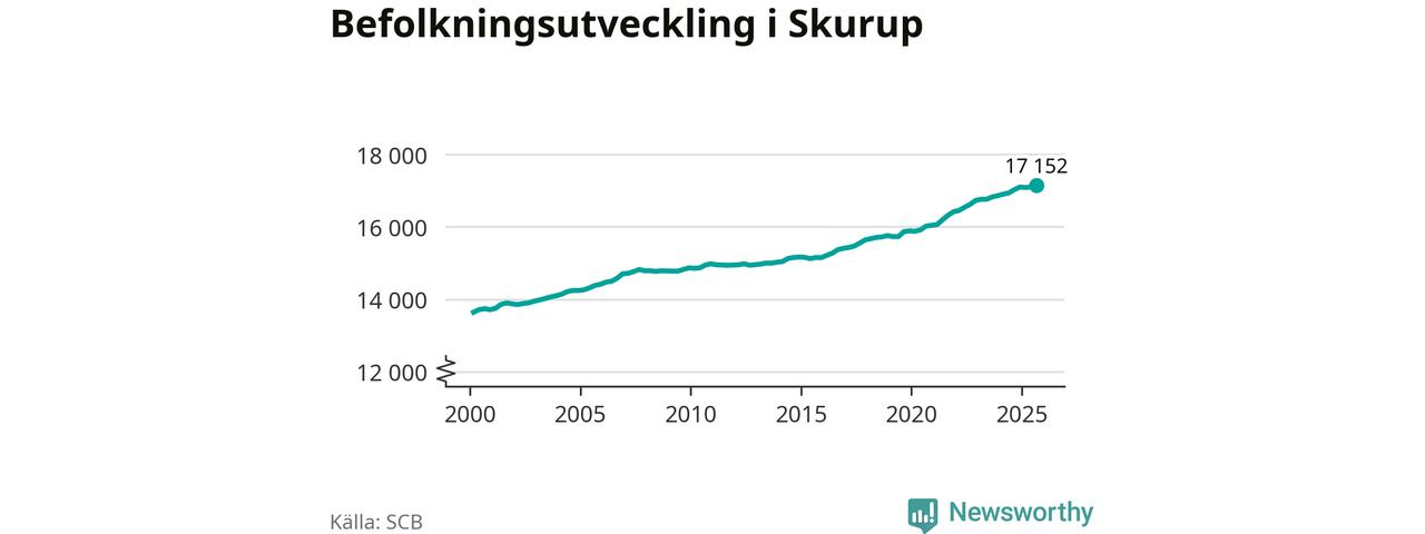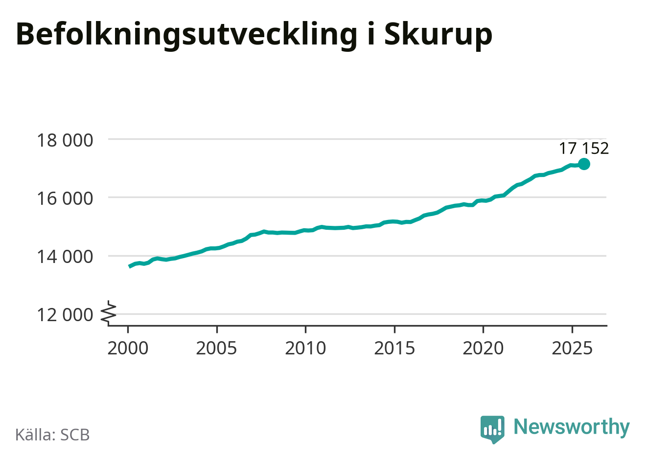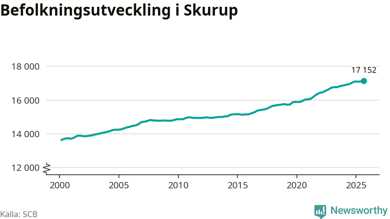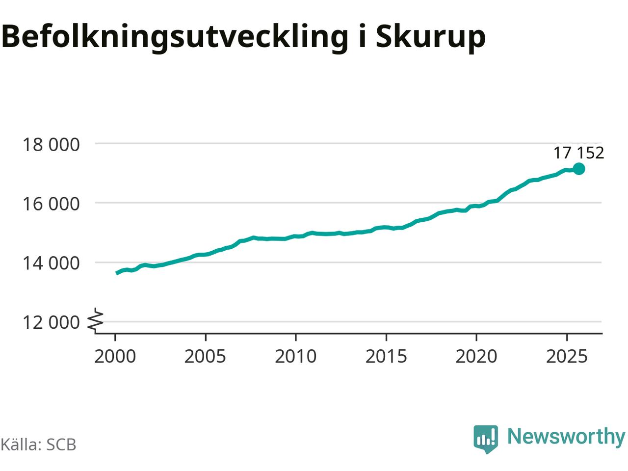 Befolkningen ökade i Skurups kommun under det tredje kvartalet 2025. Den 30 september bodde enligt SCB:s senaste siffror 17 152 personer i kommunen, vilket är 51 fler än i slutet av andra kvartalet.