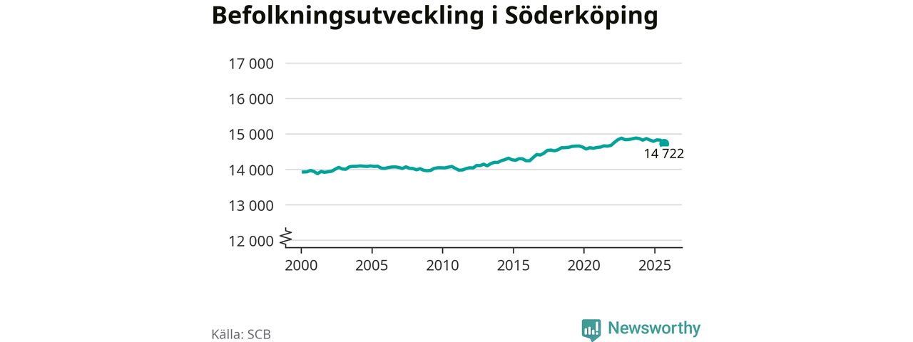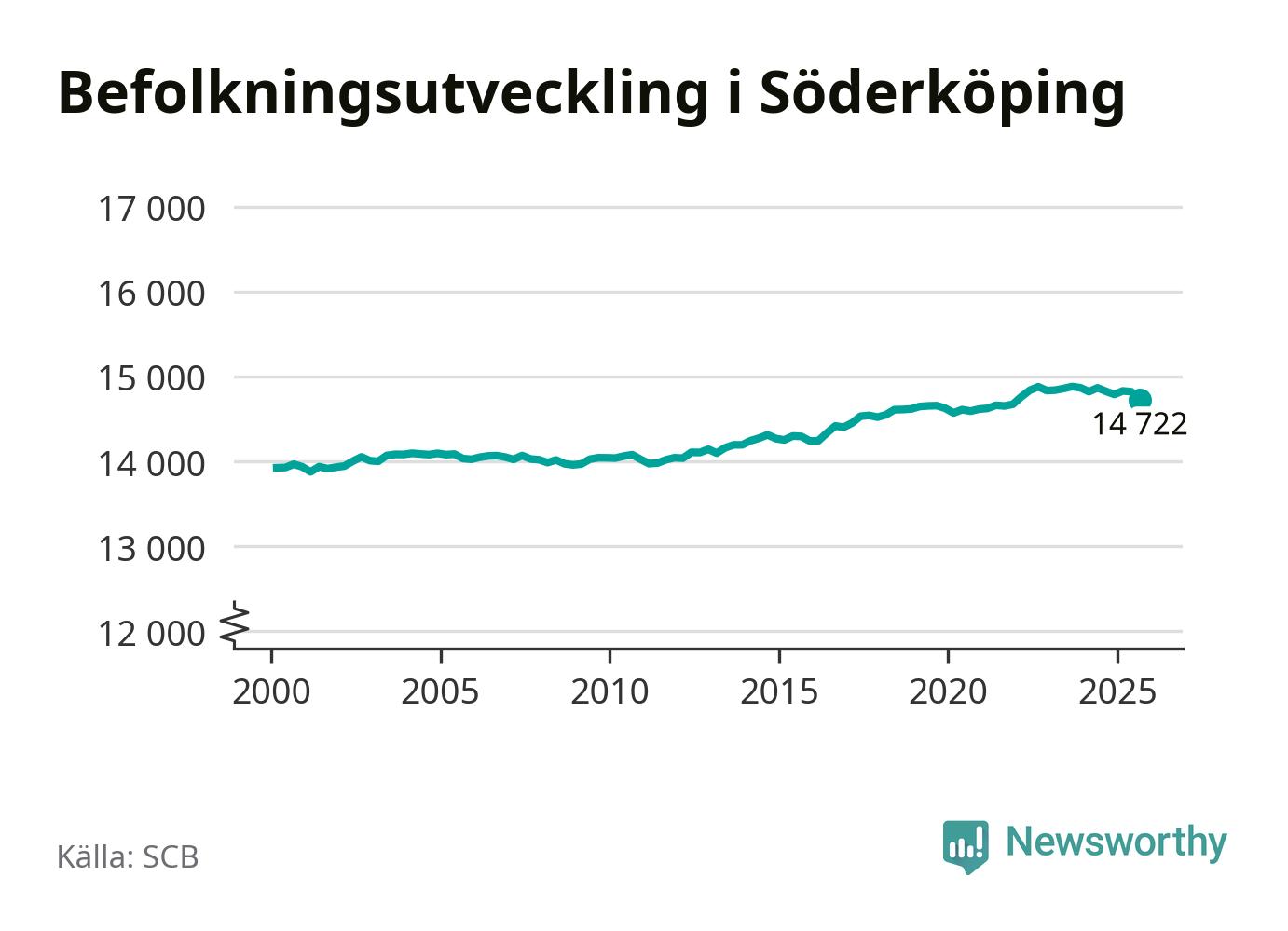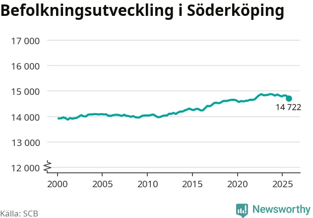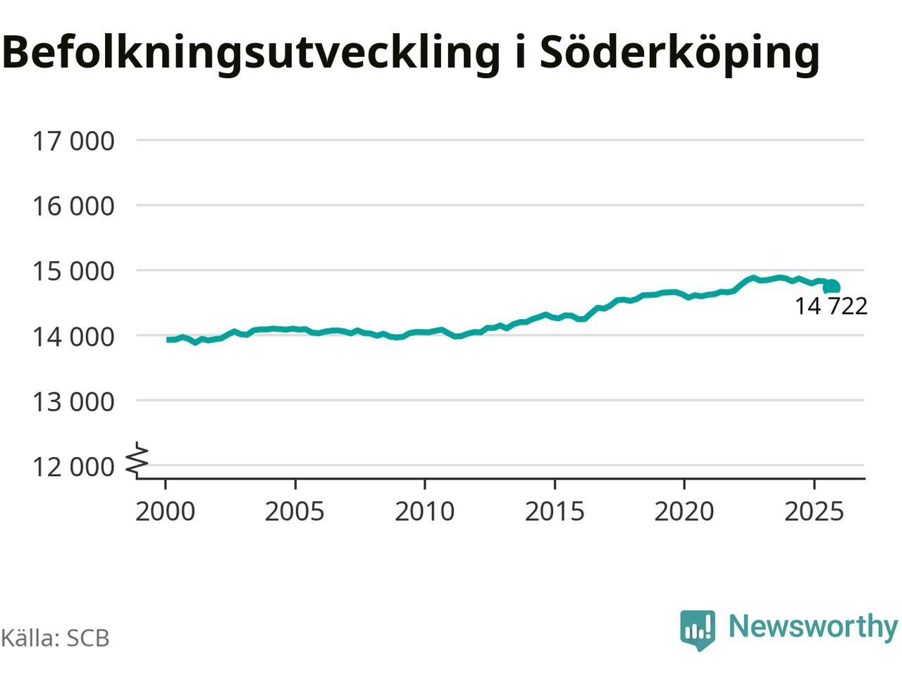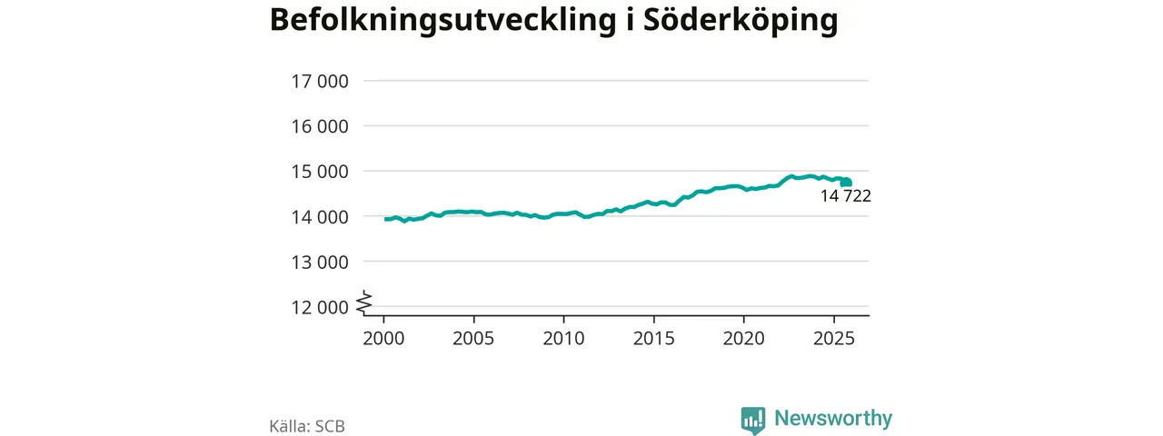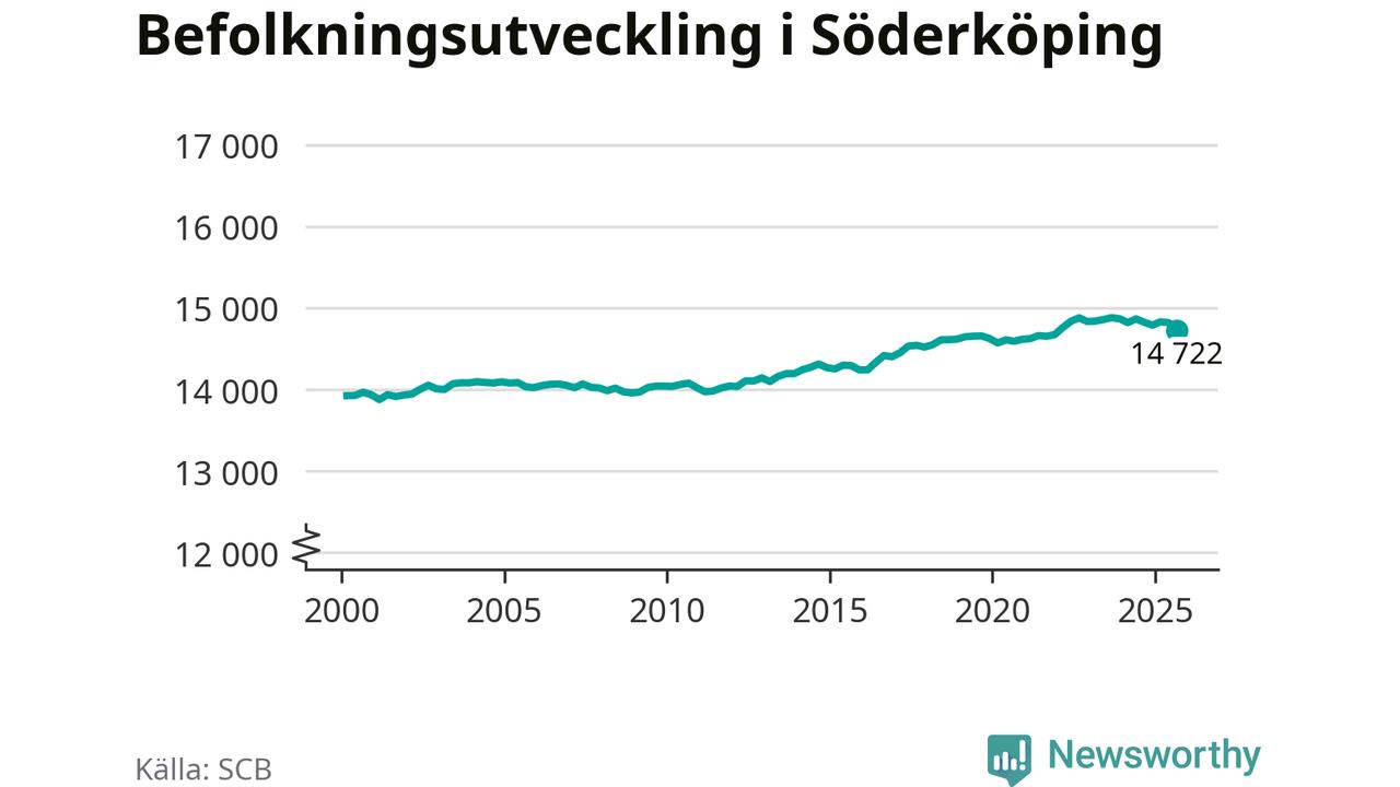Befolkningen minskade i Söderköpings kommun under det tredje kvartalet 2025. Den 30 september bodde enligt SCB:s senaste siffror 14 722 personer i kommunen, vilket är 99 färre än i slutet av andra kvartalet. Minskningen är den största i Östergötland procentuellt sett.