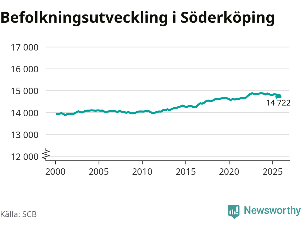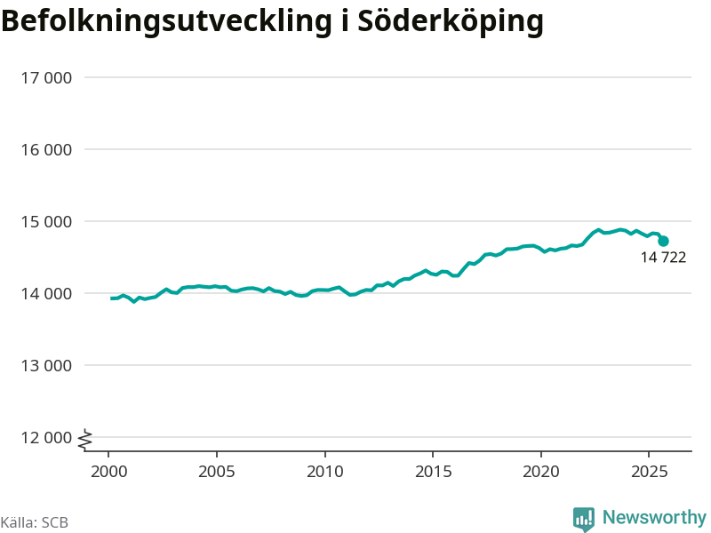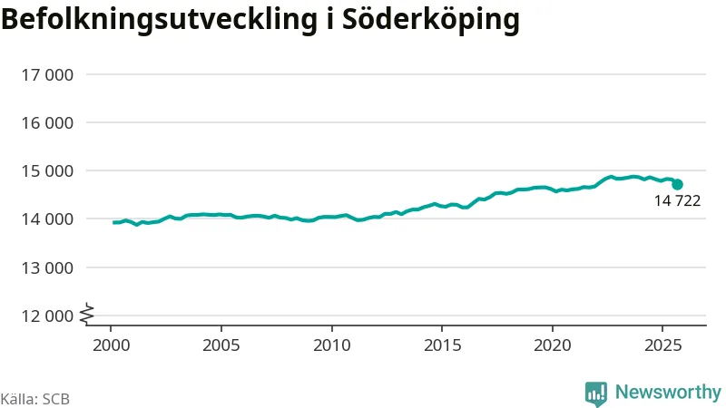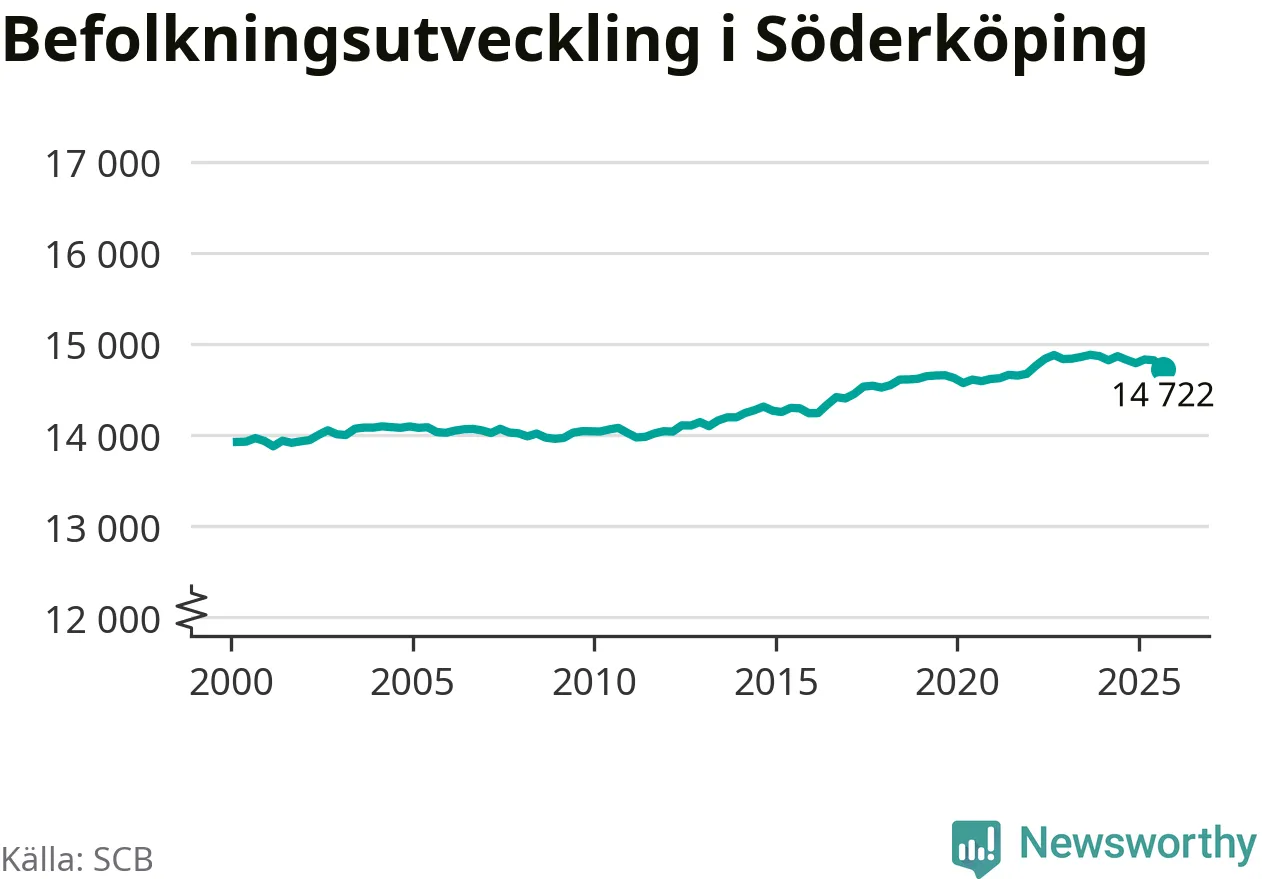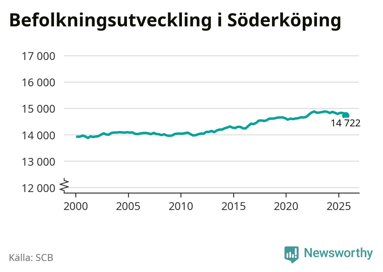 Befolkningen minskade i Söderköpings kommun under det tredje kvartalet 2025. Den 30 september bodde enligt SCB:s senaste siffror 14 722 personer i kommunen, vilket är 99 färre än i slutet av andra kvartalet. Minskningen är den största i Östergötland procentuellt sett.