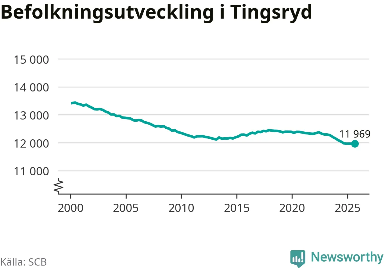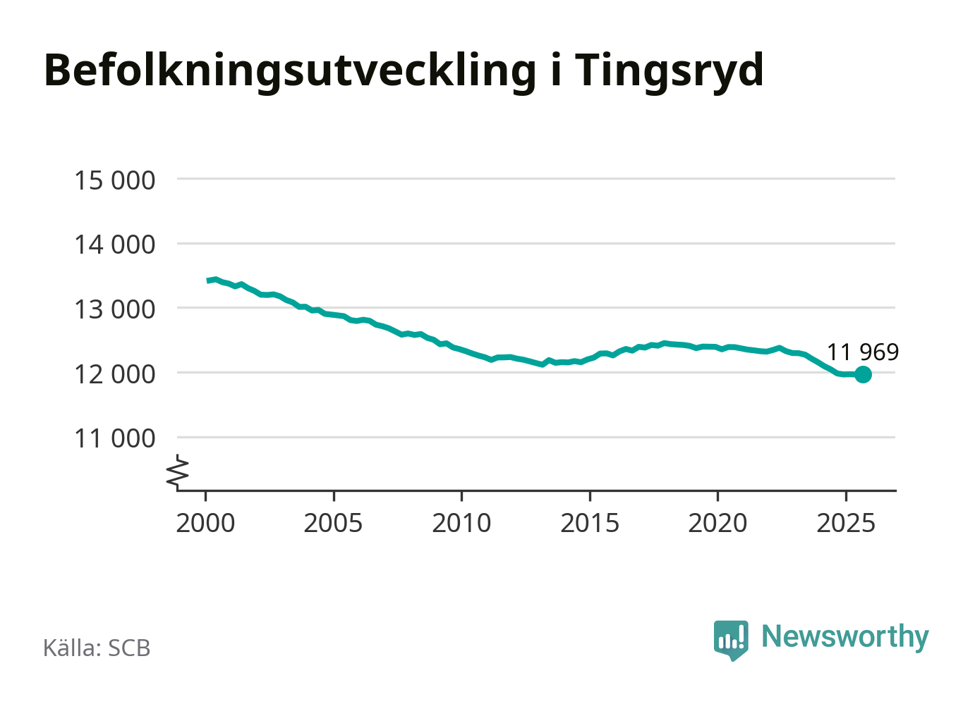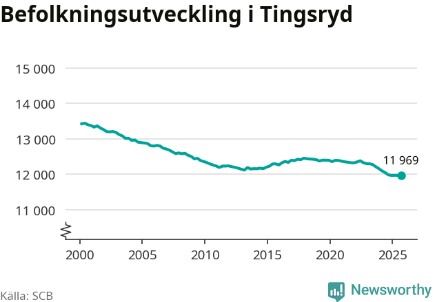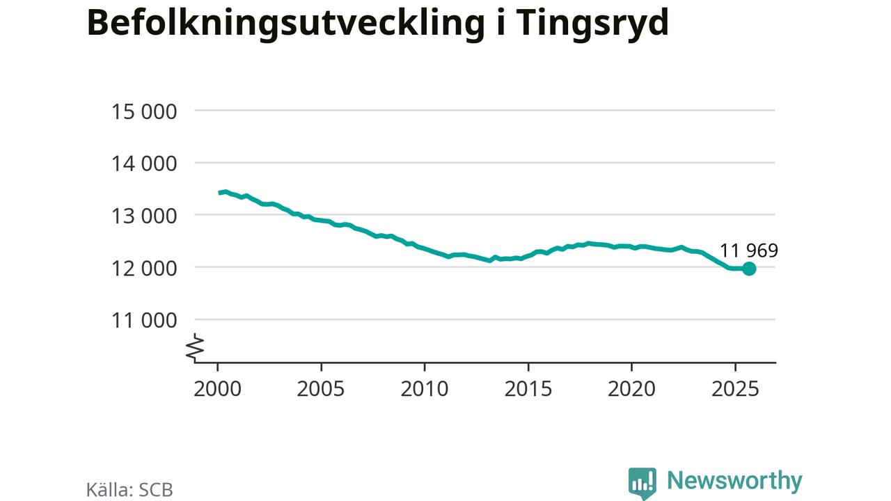 Den 30 september bodde 11 969 personer i Tingsryds kommun, enligt SCB:s senaste siffror. Det är något fler än i slutet av andra kvartalet, men skillnaden är så liten att den lika gärna kan bero på den lilla justering som SCB gör av siffrorna för att skydda enskilda individers identitet.