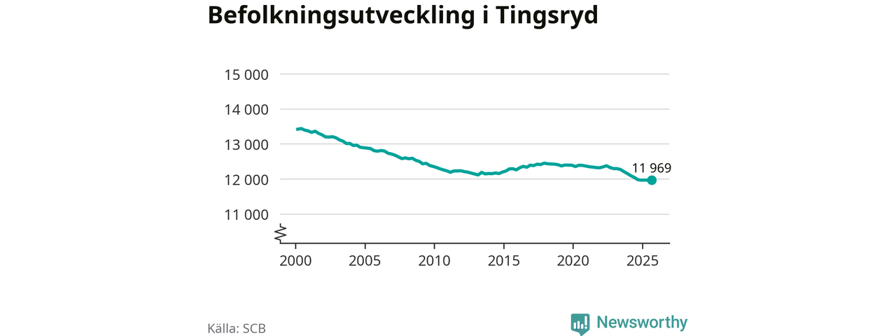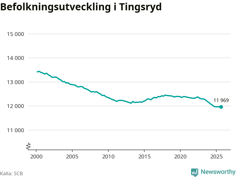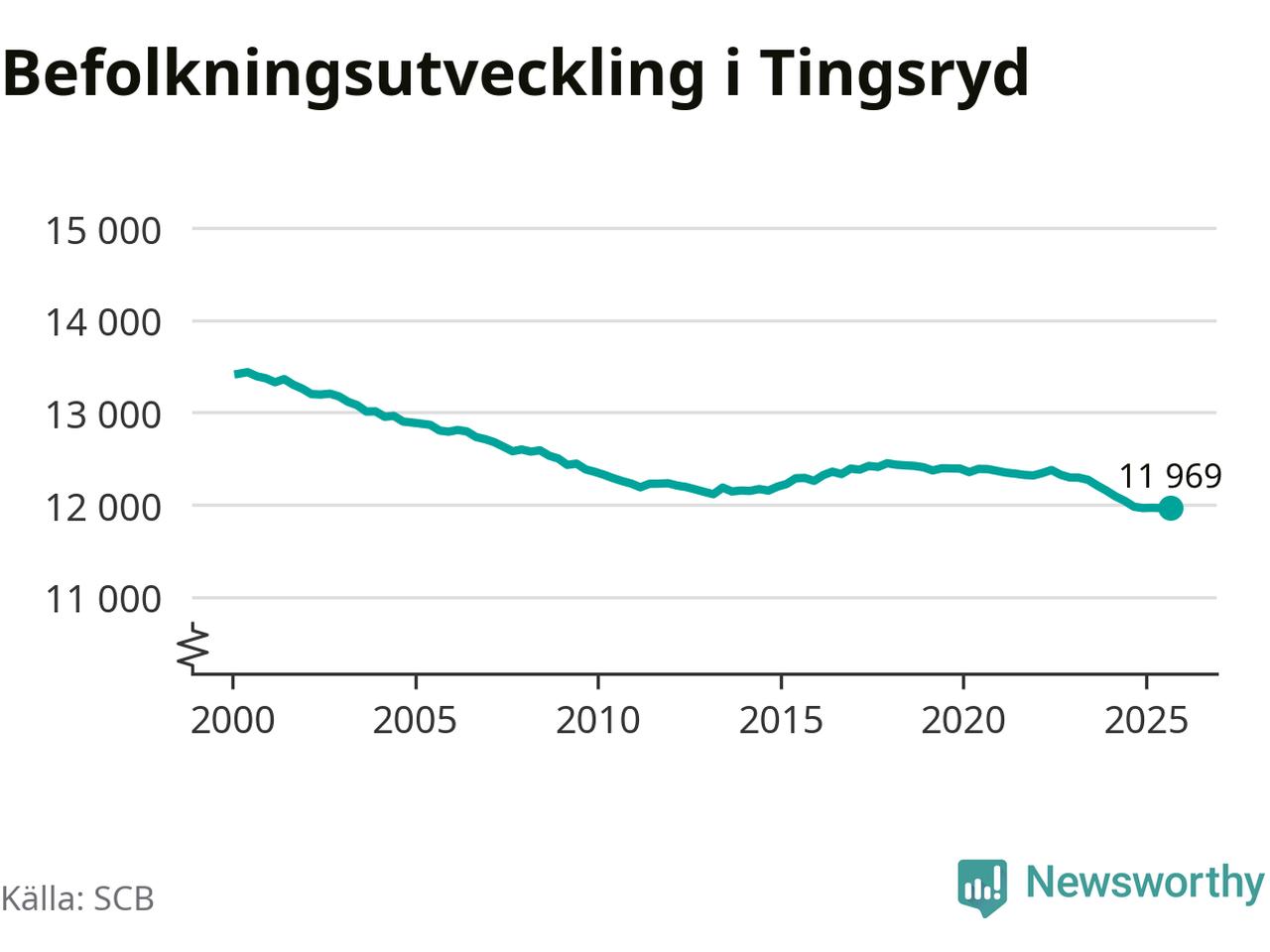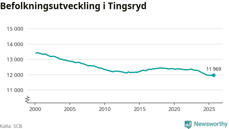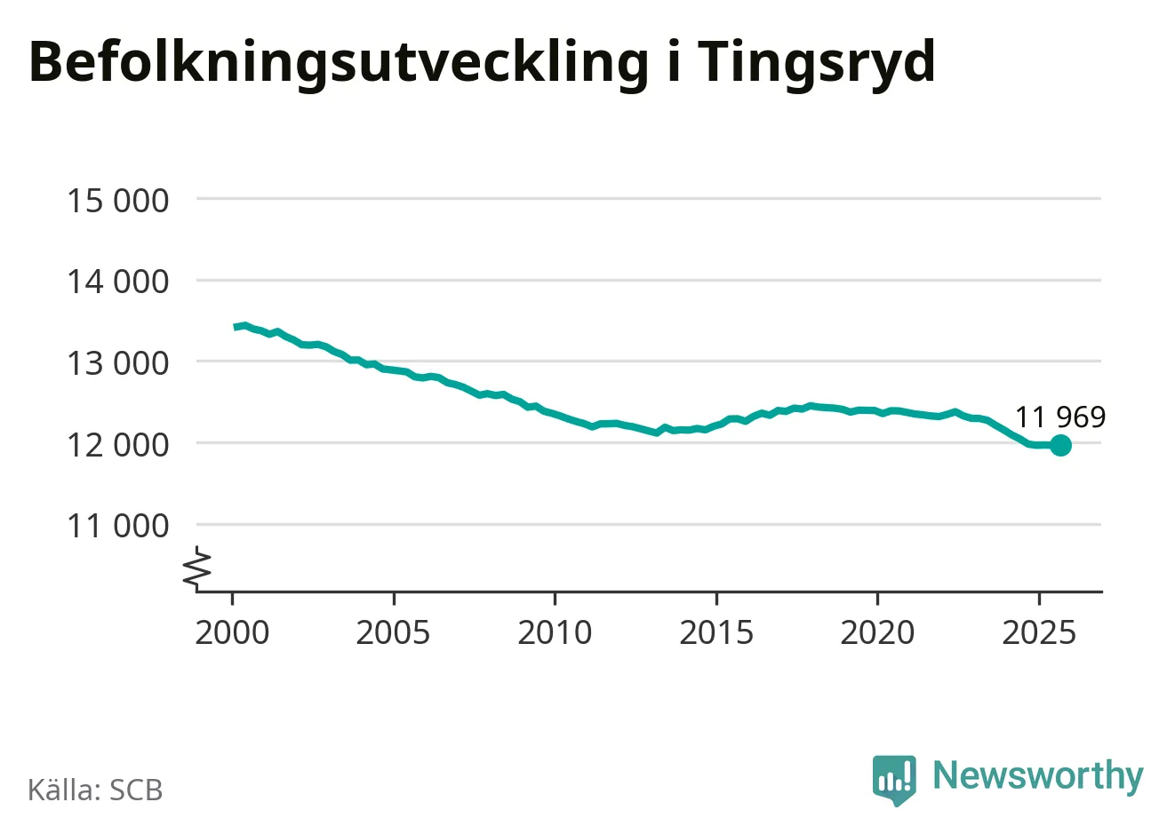 Den 30 september bodde 11 969 personer i Tingsryds kommun, enligt SCB:s senaste siffror. Det är något fler än i slutet av andra kvartalet, men skillnaden är så liten att den lika gärna kan bero på den lilla justering som SCB gör av siffrorna för att skydda enskilda individers identitet.