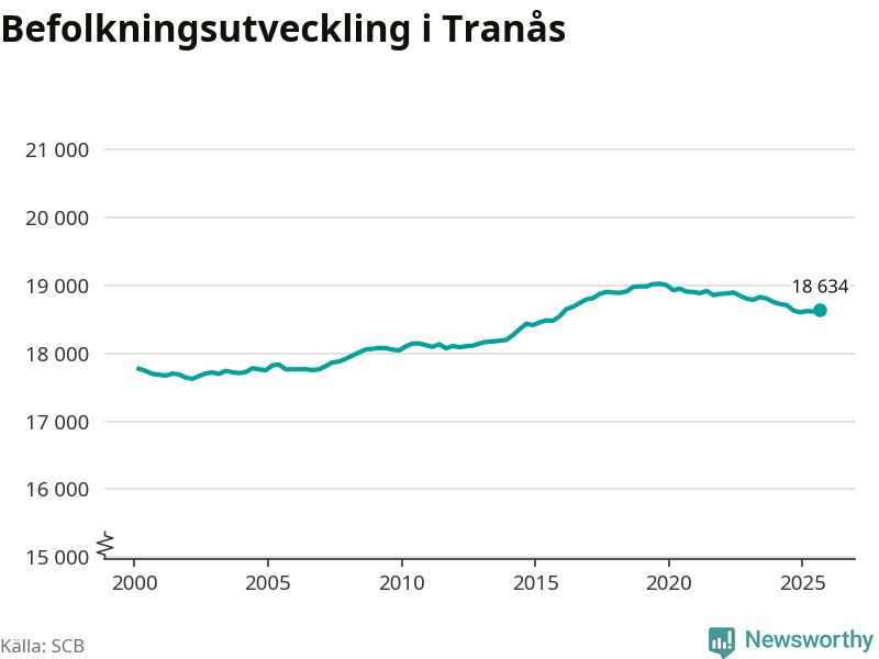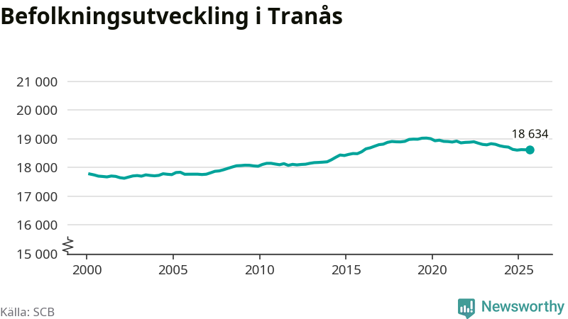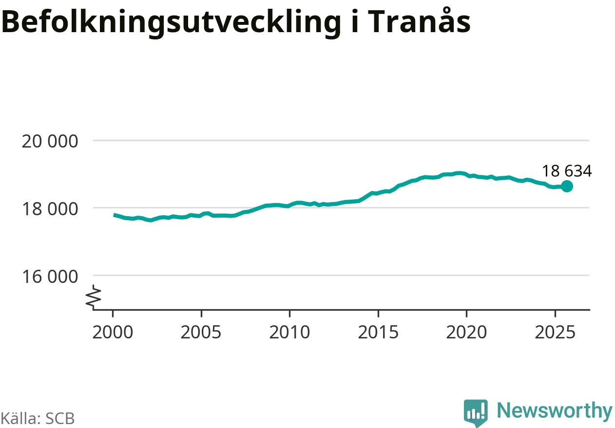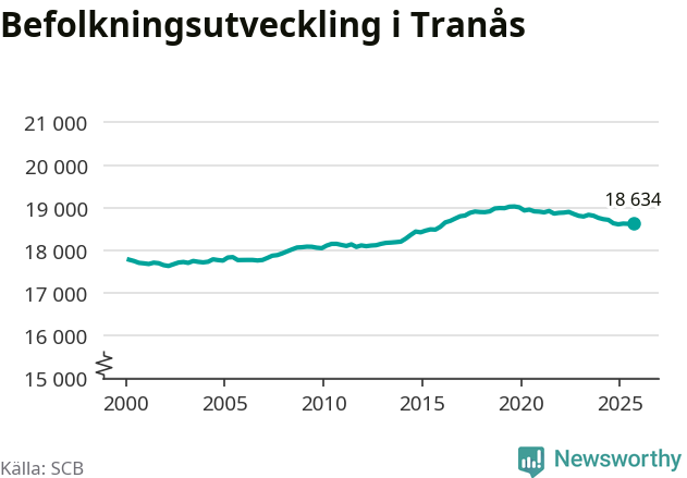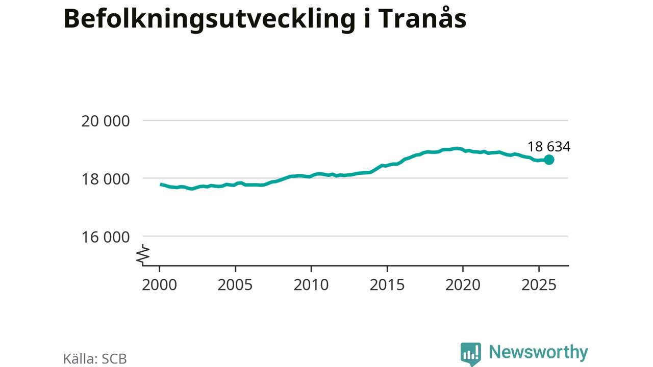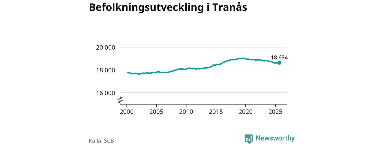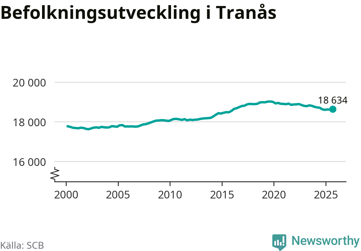 Jämfört med ett år sedan är befolkningen i princip lika stor i Tranås. Sedan millennieskiftet har folkmängden ökat med runt 860 personer, eller 5 procent.