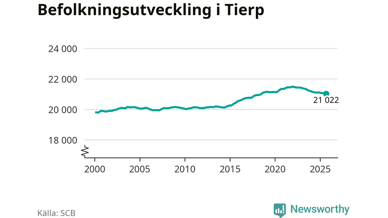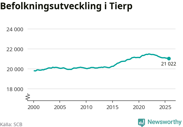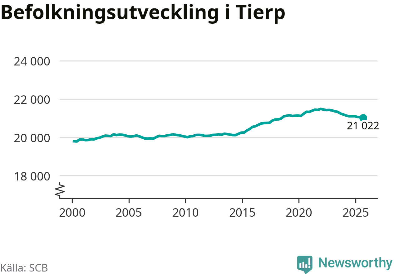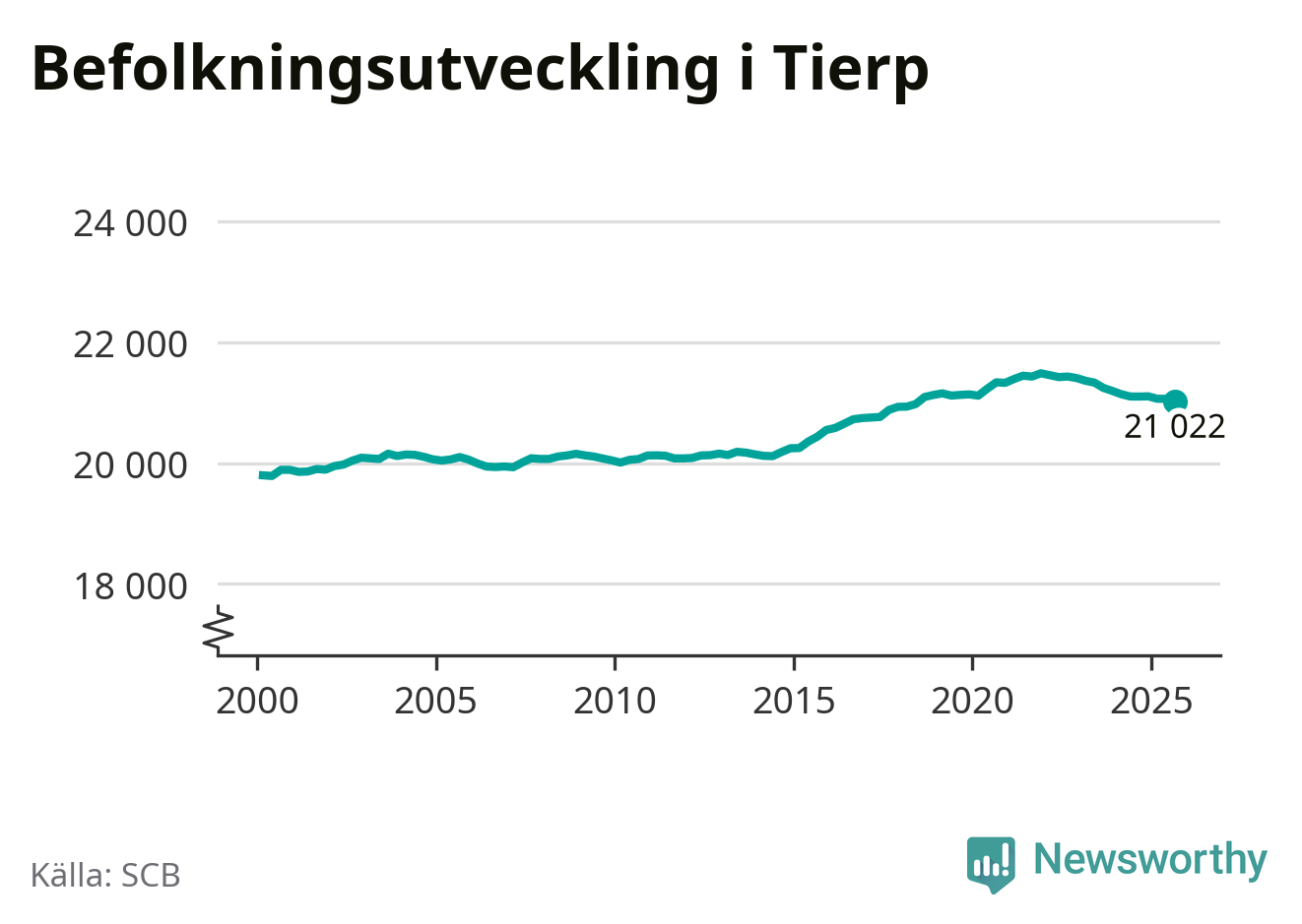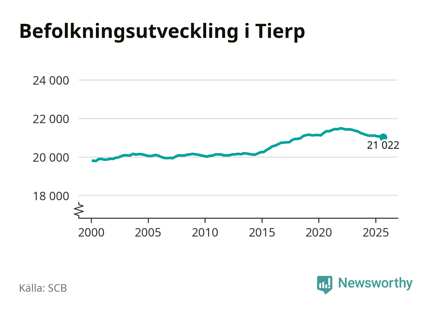 Den 30 september bodde enligt SCB:s senaste siffror 21 022 personer i kommunen, vilket är 40 färre än i slutet av andra kvartalet. Minskningen är den näst största i Uppsala län procentuellt sett.
