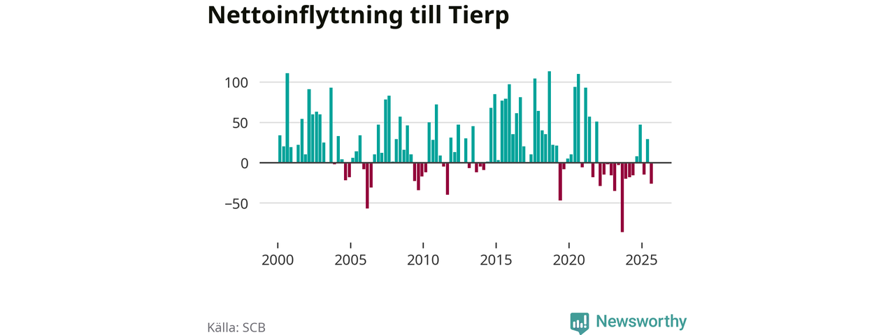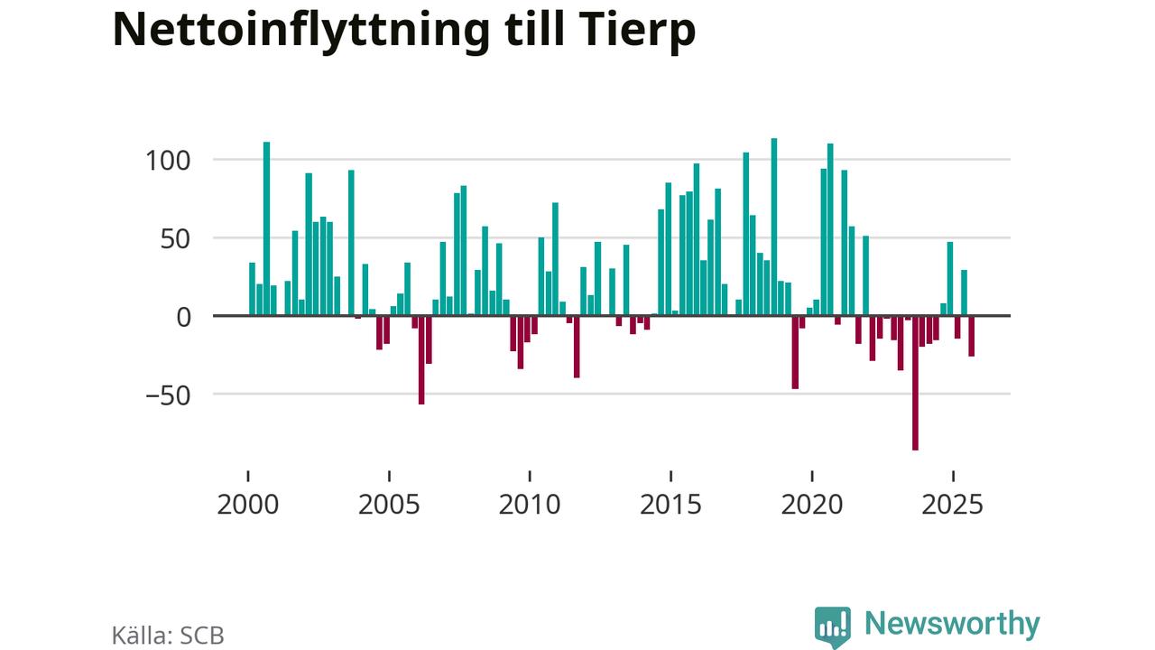 Antalet avlidna var större än antalet födda – och fler flyttade från än till Tierps kommun. Befolkningen minskade under det tredje kvartalet 2025. Det visar nya siffror från SCB.