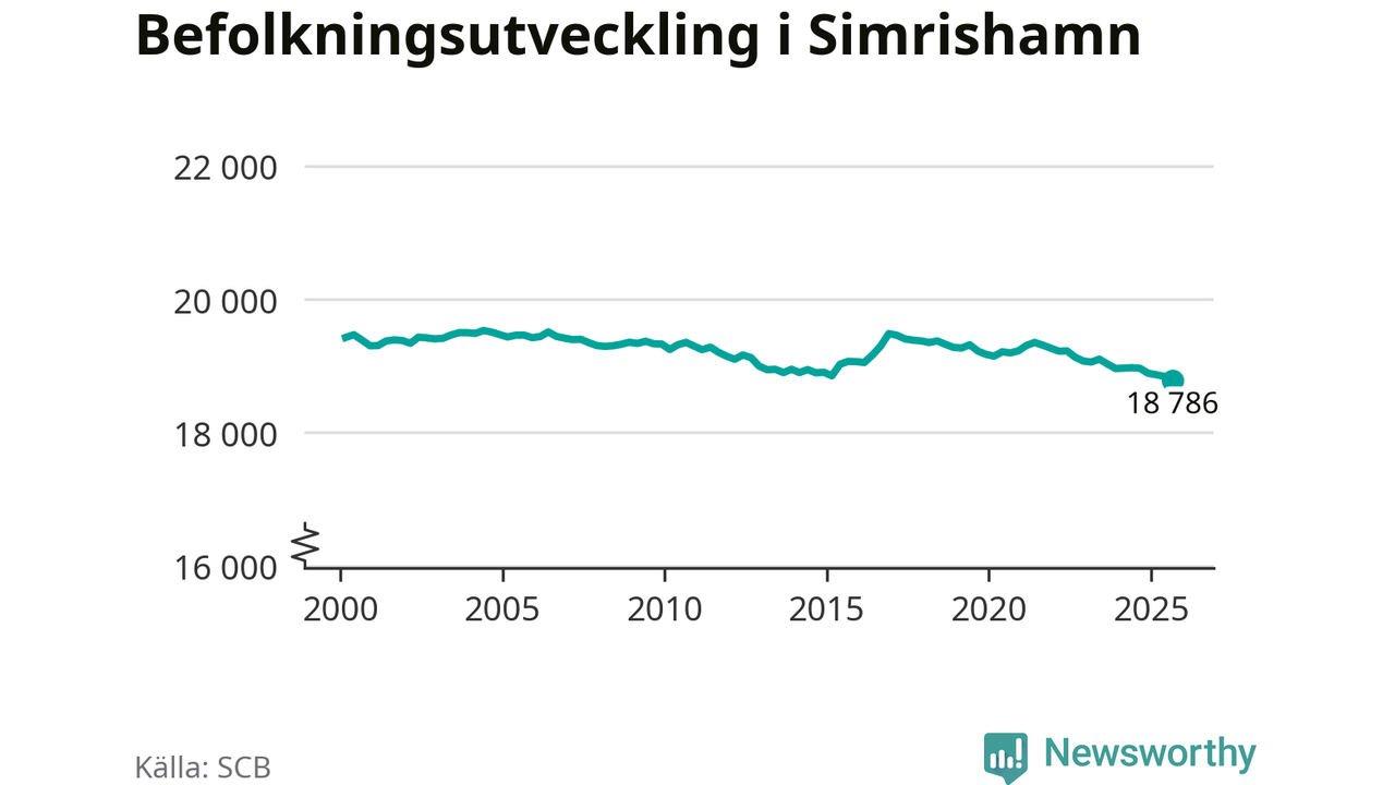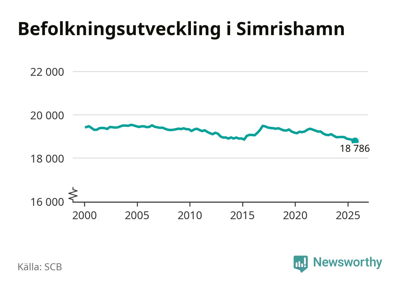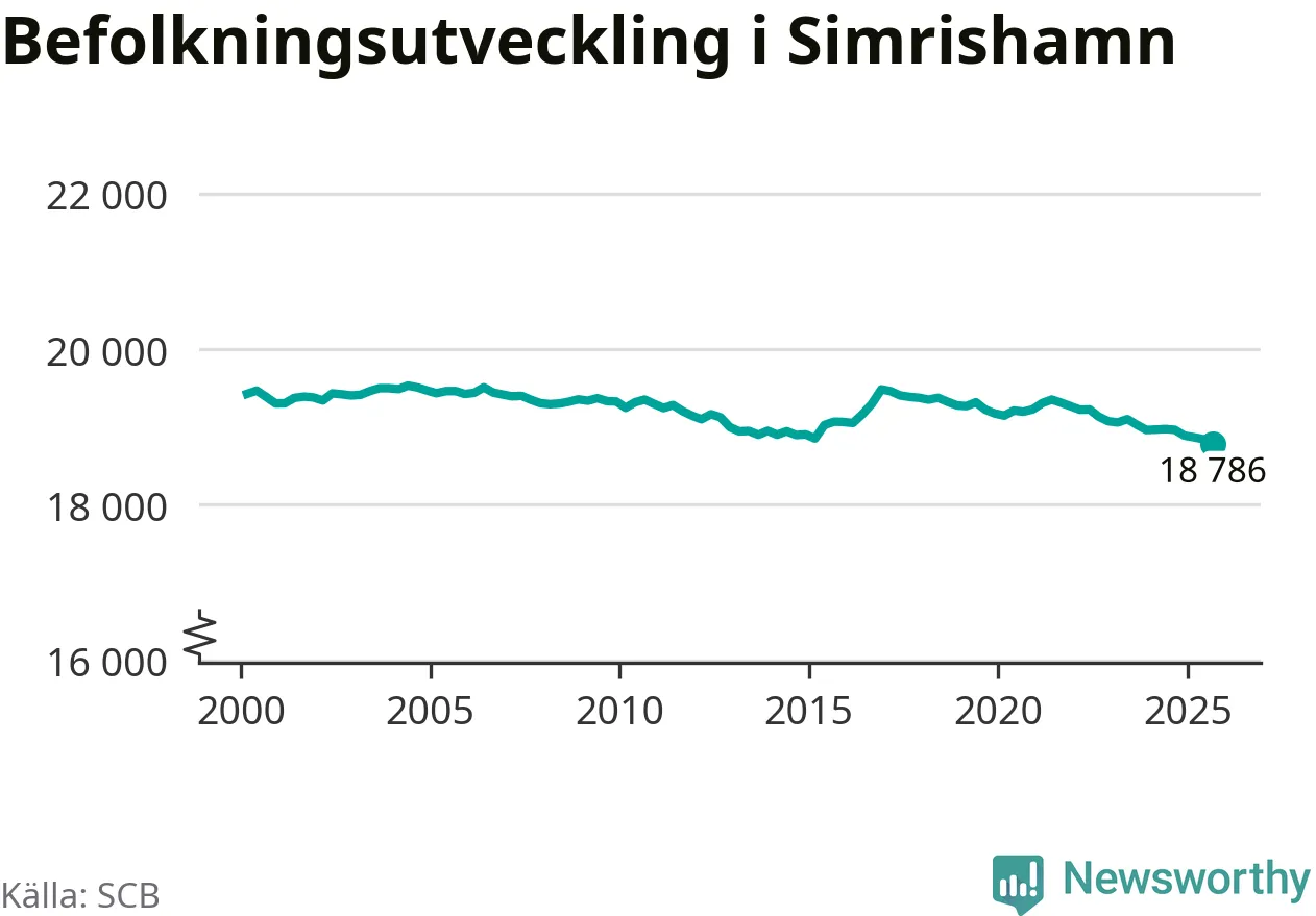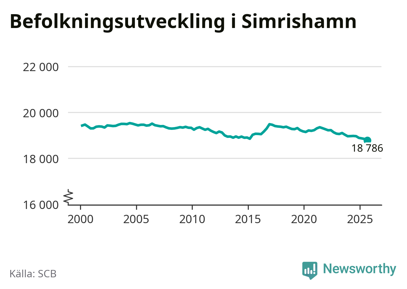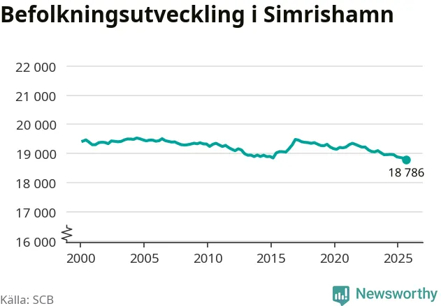 Jämfört med för ett år sedan har befolkningen i Simrishamn minskat med ungefär 180 personer – vilket motsvarar en nedgång på 0,9 procent. Sedan millennieskiftet har folkmängden minskat med runt 640 personer, eller 3 procent.