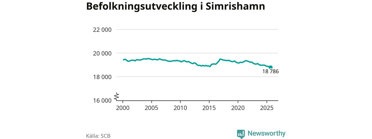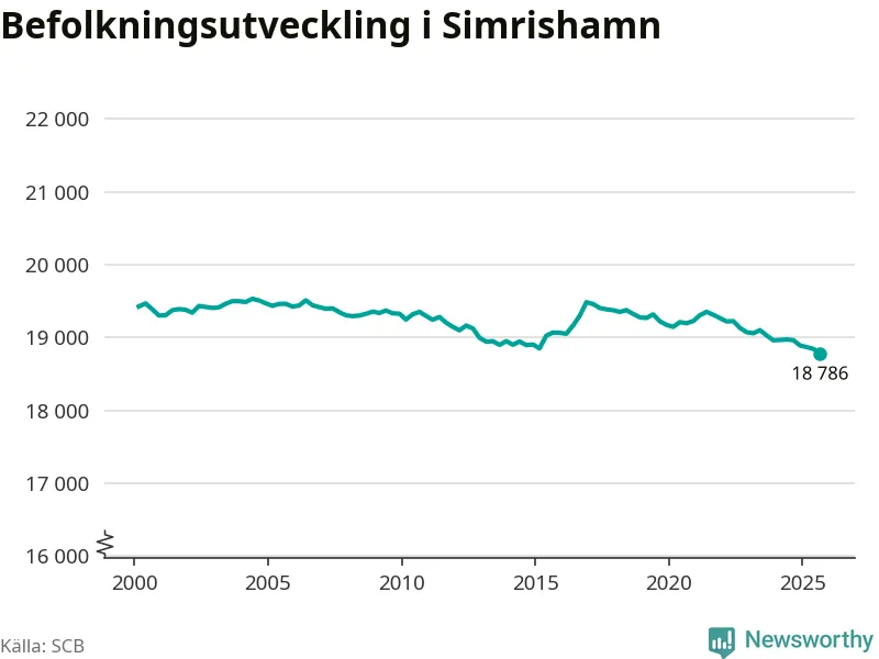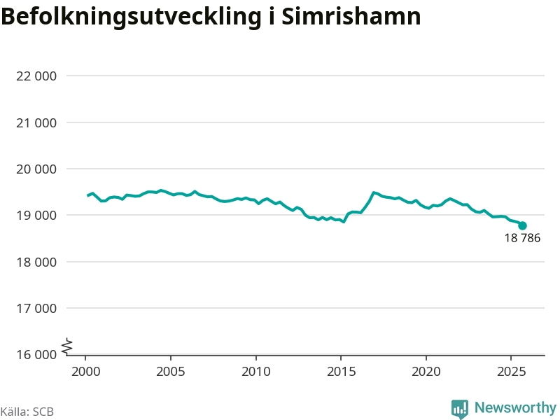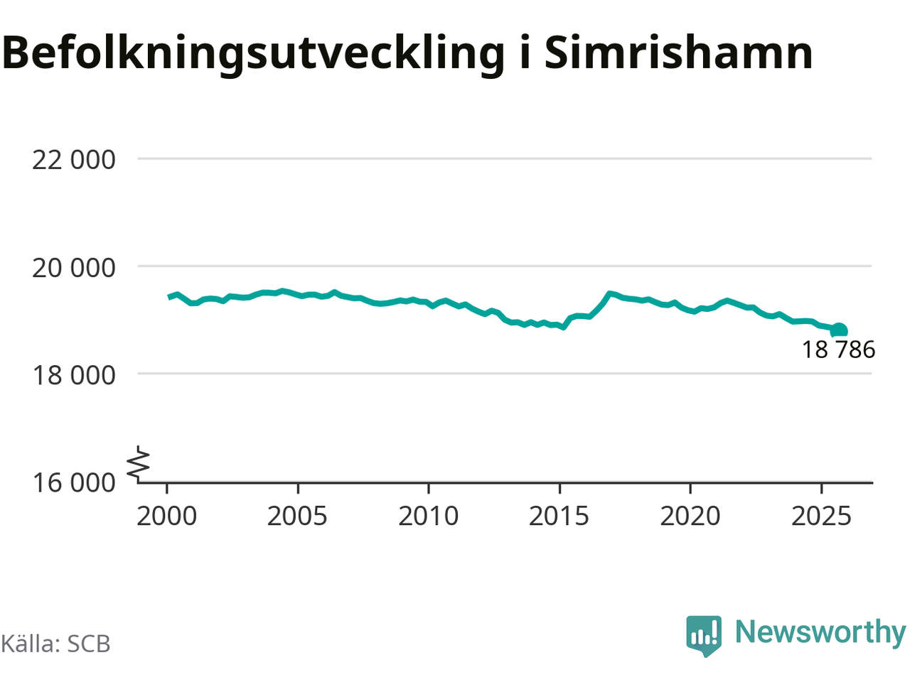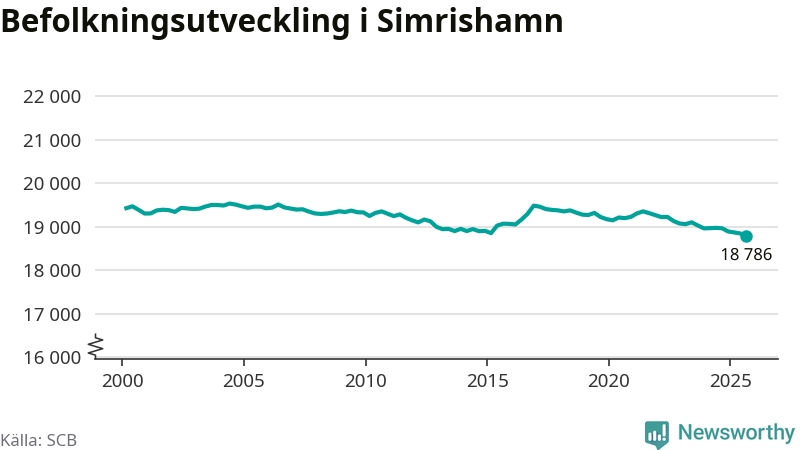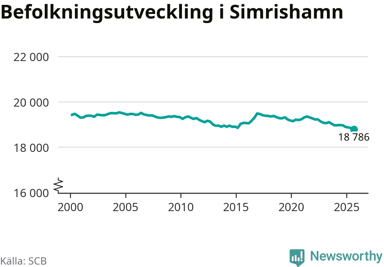 Jämfört med för ett år sedan har befolkningen i Simrishamn minskat med ungefär 180 personer – vilket motsvarar en nedgång på 0,9 procent. Sedan millennieskiftet har folkmängden minskat med runt 640 personer, eller 3 procent.
