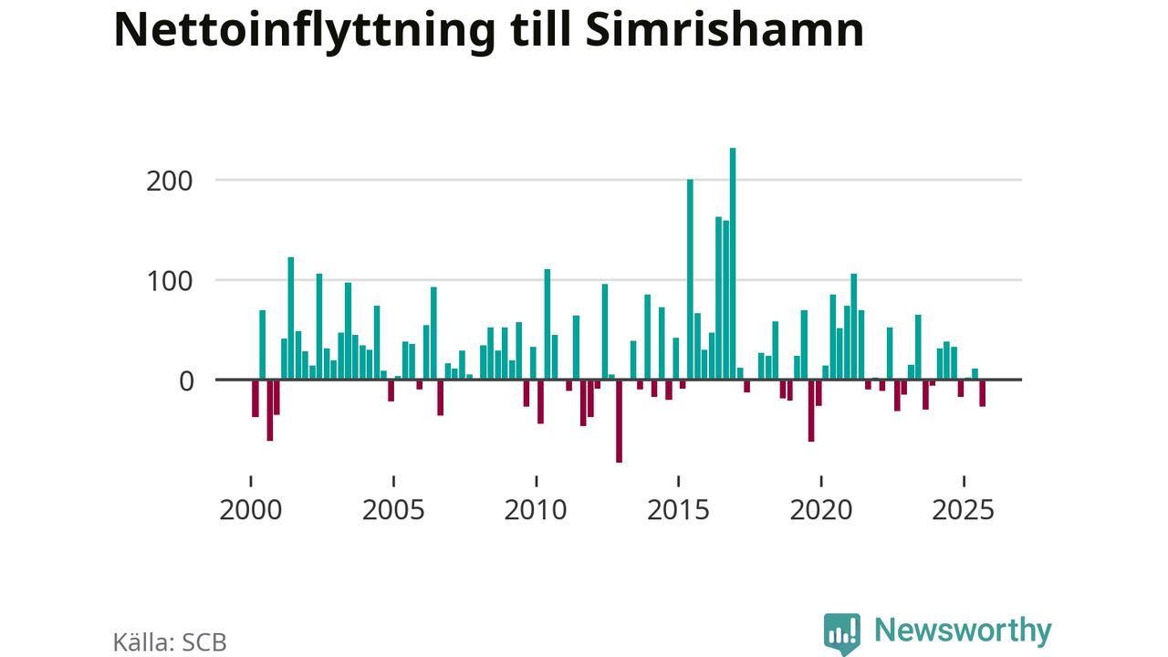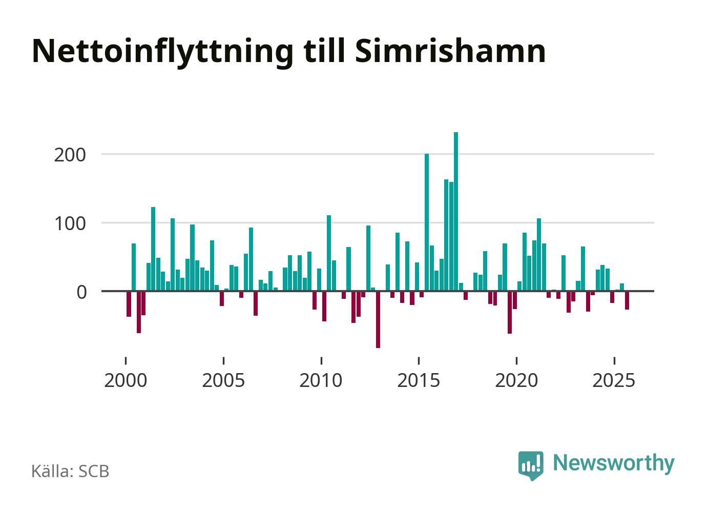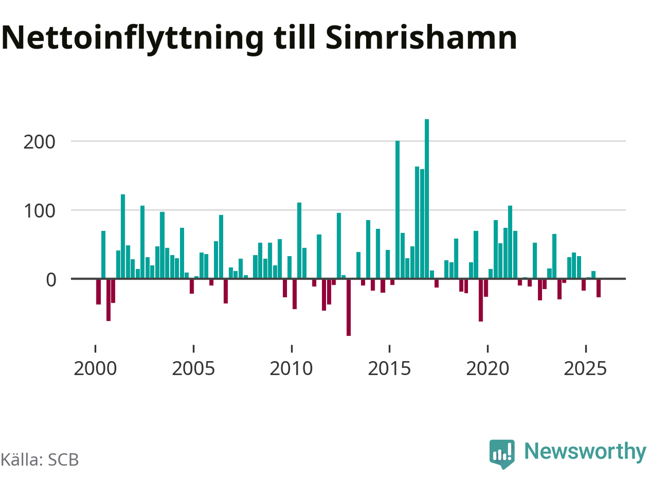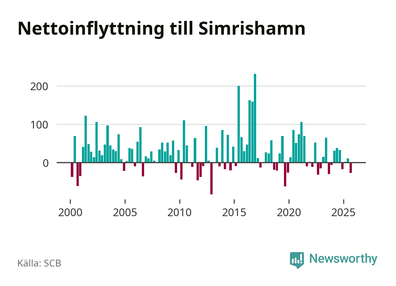 Under tredje kvartalet 2025 flyttade 311 personer till kommunen medan 338 personer flyttade därifrån. Det är historiskt sett en stor utflyttning under ett kvartal. Sedan seklets början har Simrishamn oftast haft ett positivt flyttnetto.