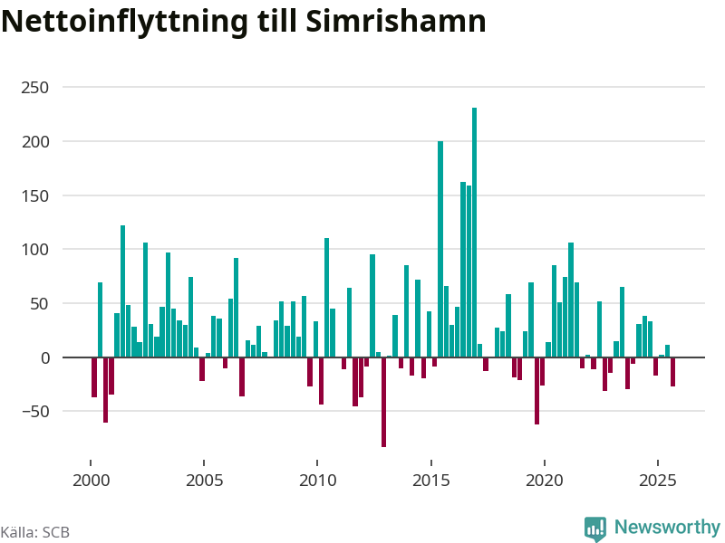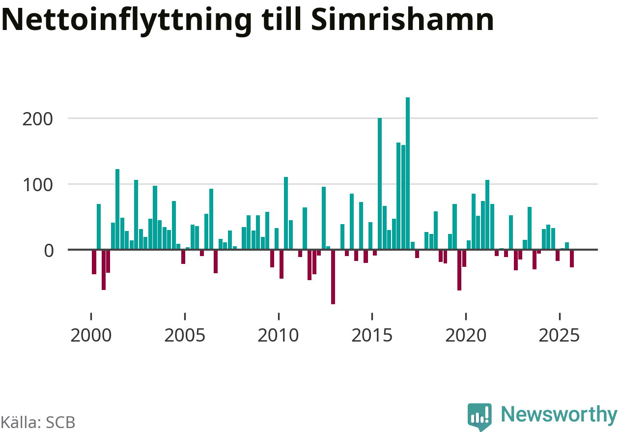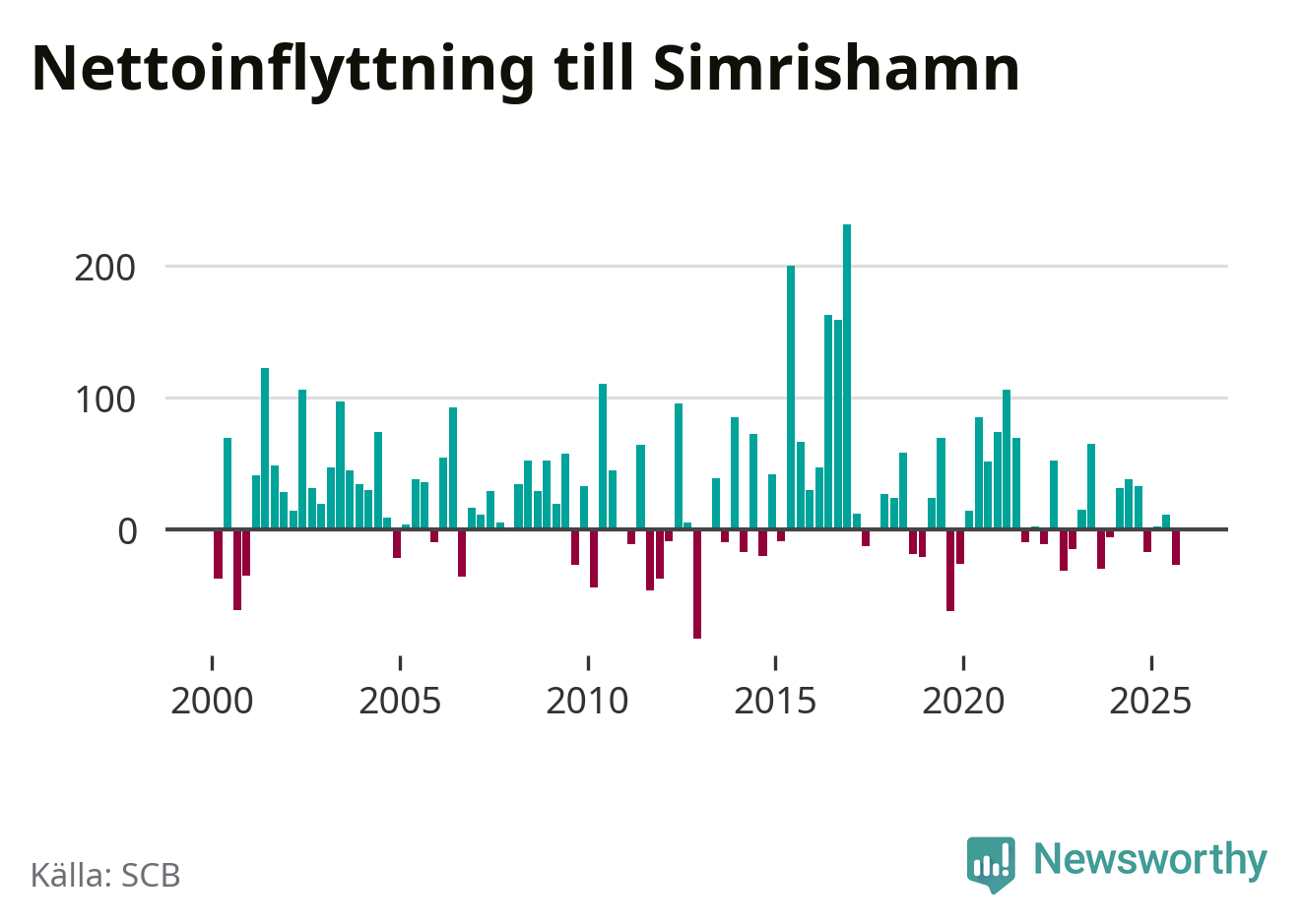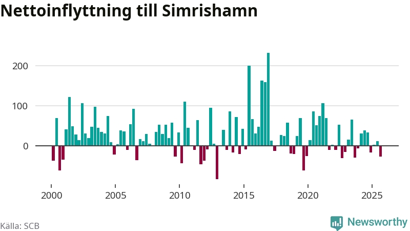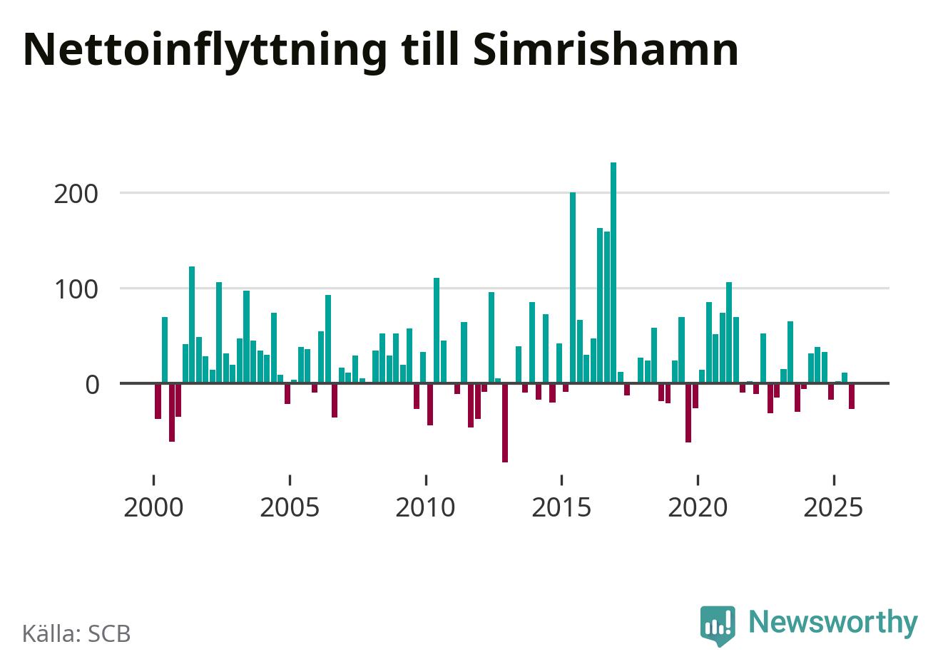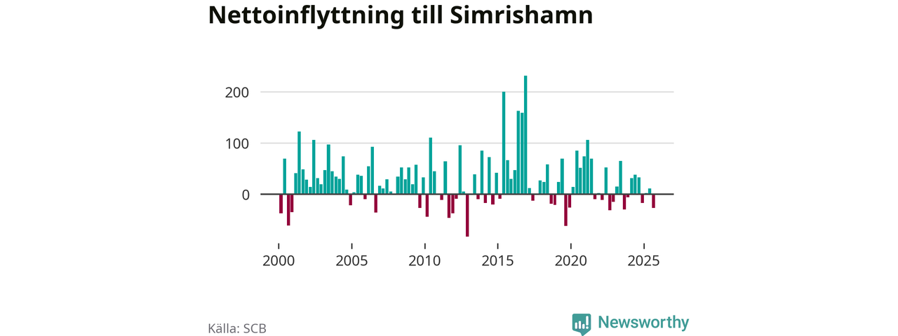Under tredje kvartalet 2025 flyttade 311 personer till kommunen medan 338 personer flyttade därifrån. Det är historiskt sett en stor utflyttning under ett kvartal. Sedan seklets början har Simrishamn oftast haft ett positivt flyttnetto.