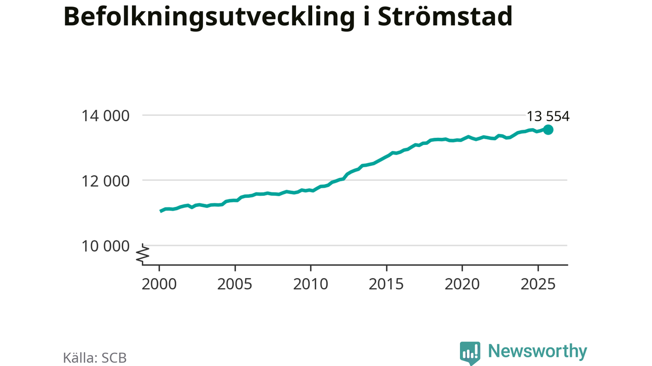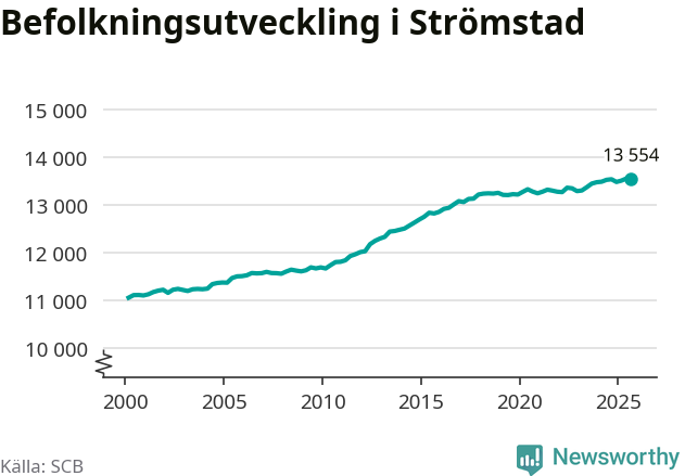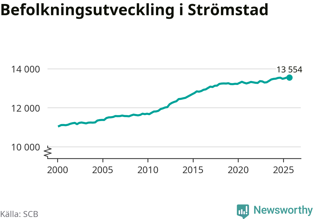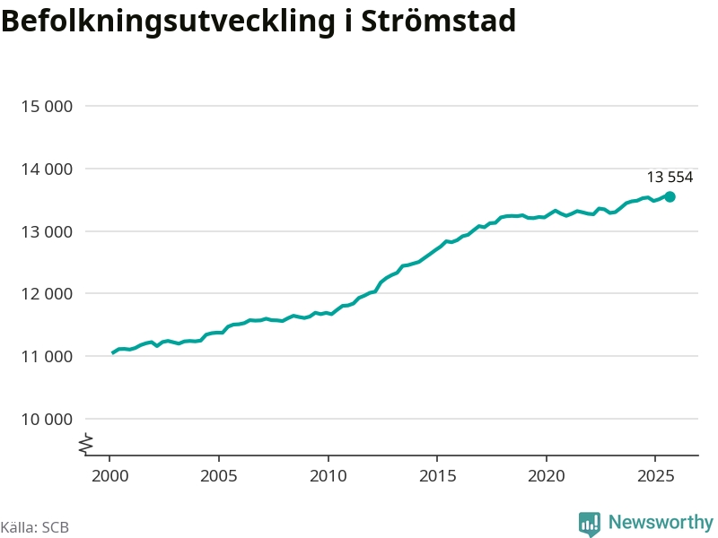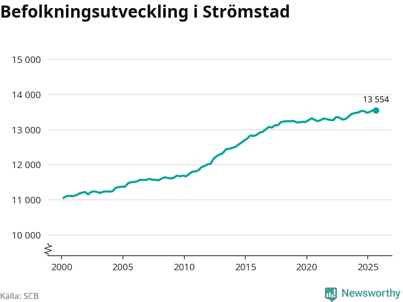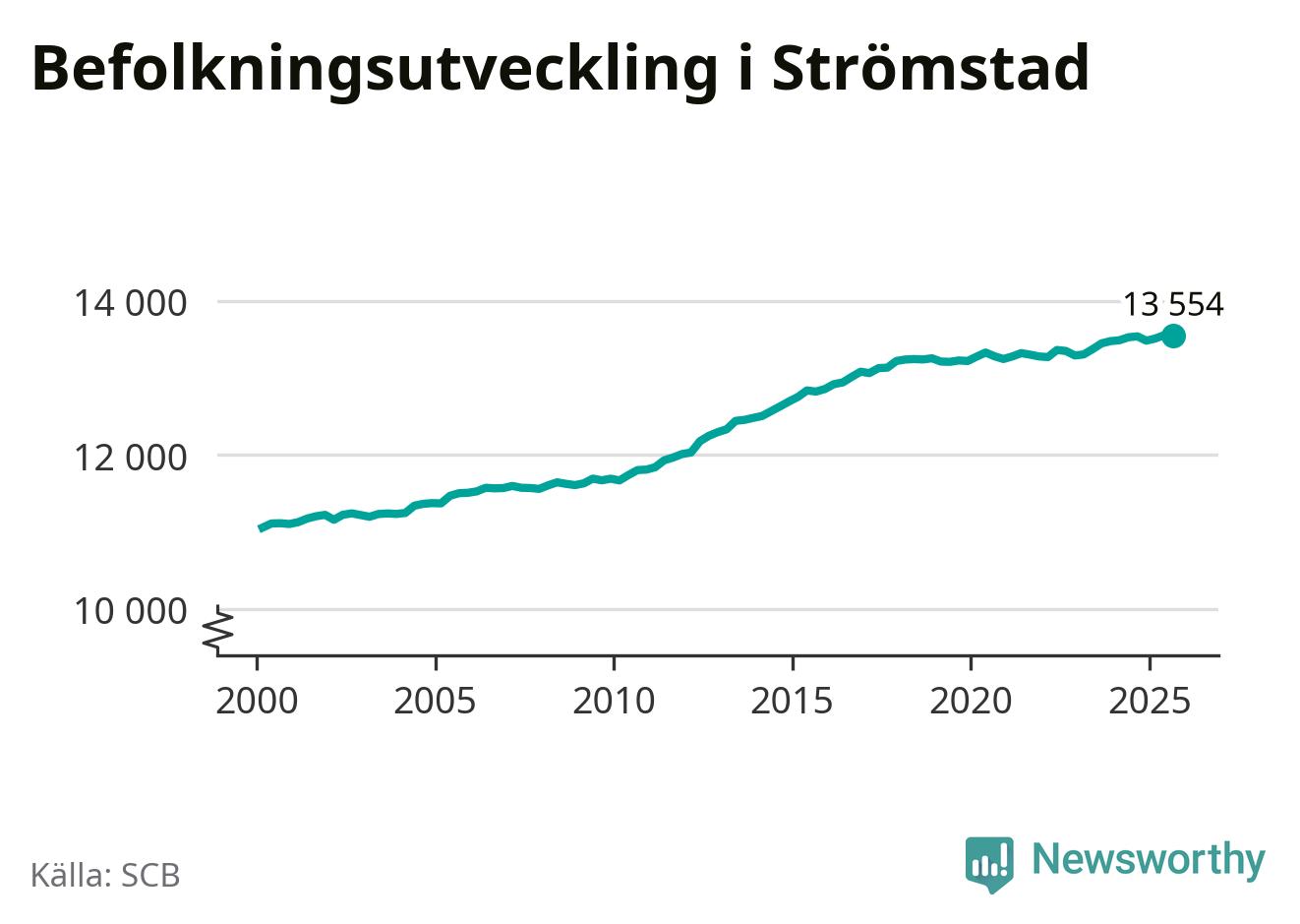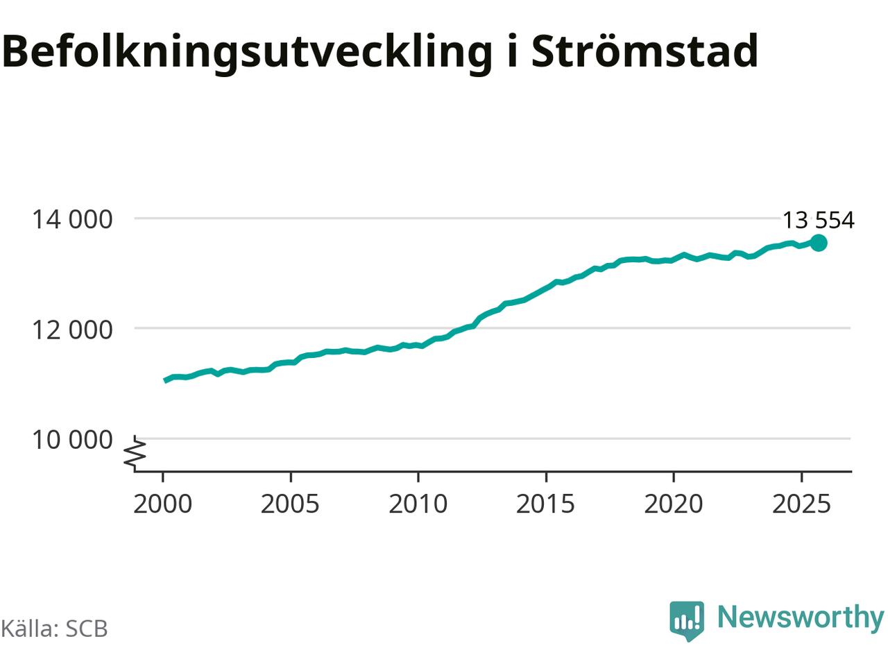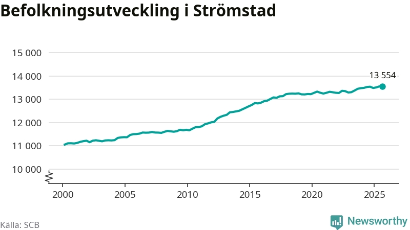 Jämfört med för ett år sedan har befolkningen i Strömstad ökat med knappt 20 personer. Sedan millennieskiftet har folkmängden ökat med runt 2 500 personer, eller 23 procent.