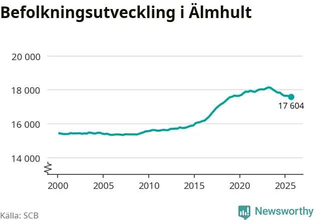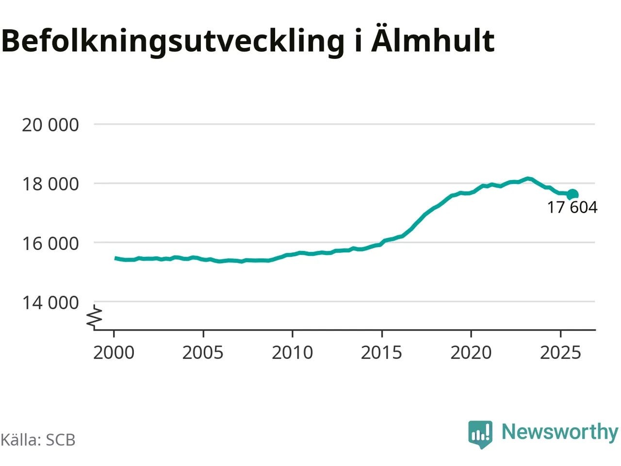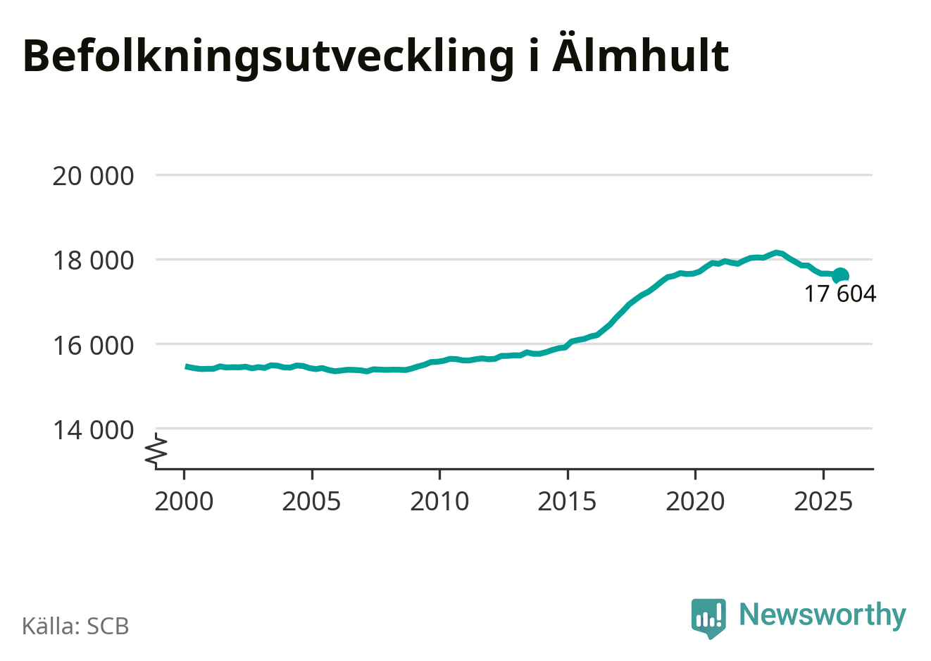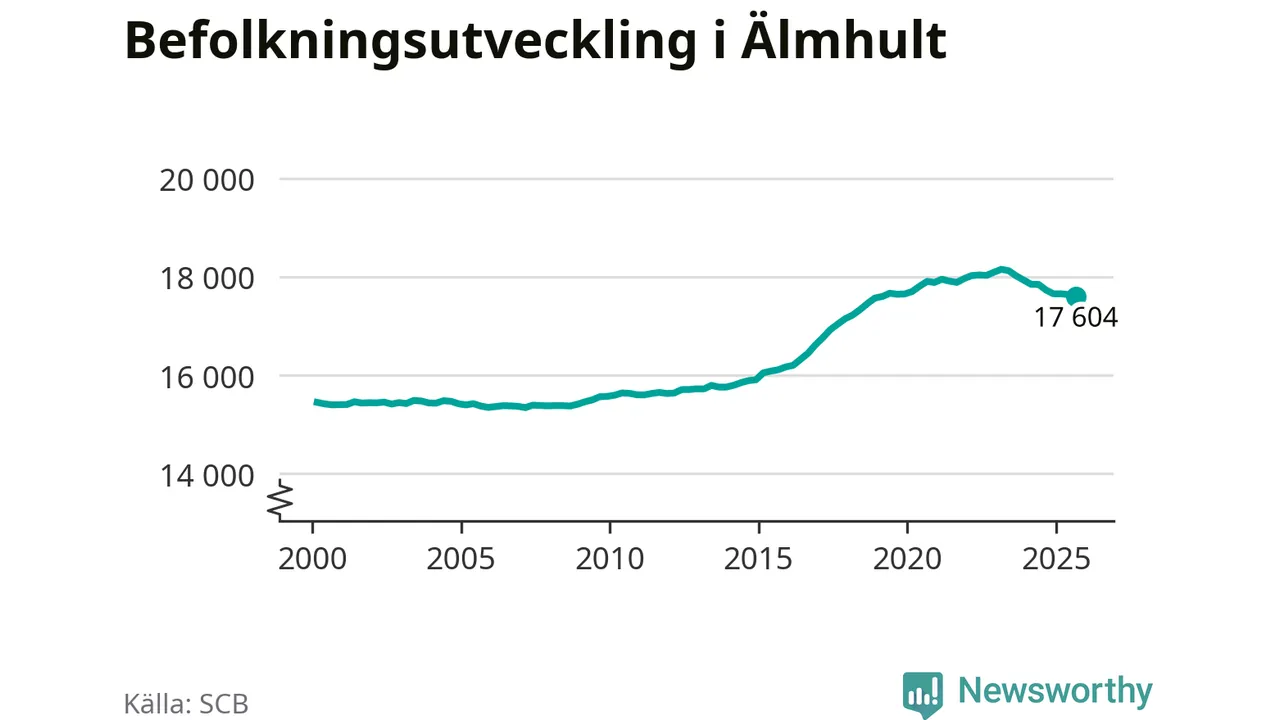 Befolkningen minskade i Älmhults kommun under det tredje kvartalet 2025. Den 30 september bodde enligt SCB:s senaste siffror 17 604 personer i kommunen, vilket är 35 färre än i slutet av andra kvartalet.