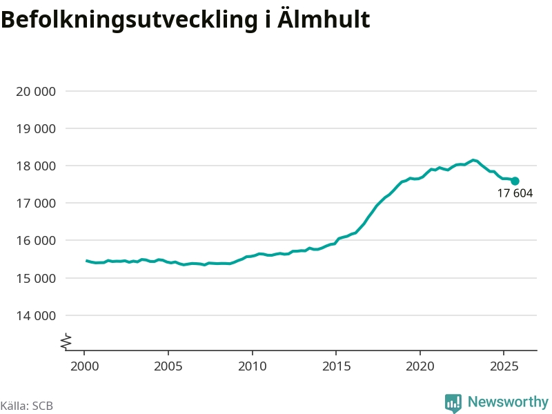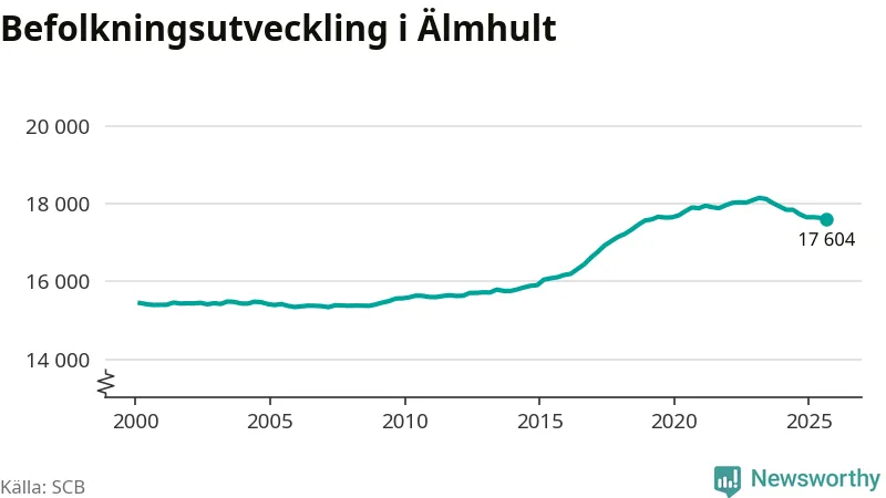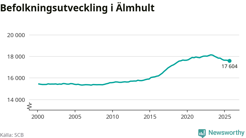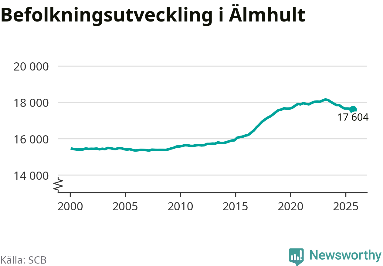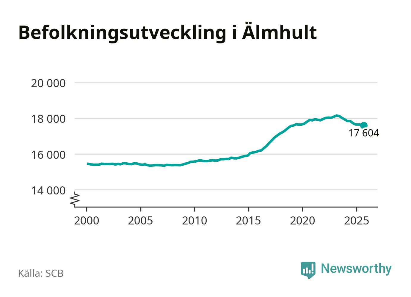Befolkningen minskade i Älmhults kommun under det tredje kvartalet 2025. Den 30 september bodde enligt SCB:s senaste siffror 17 604 personer i kommunen, vilket är 35 färre än i slutet av andra kvartalet.