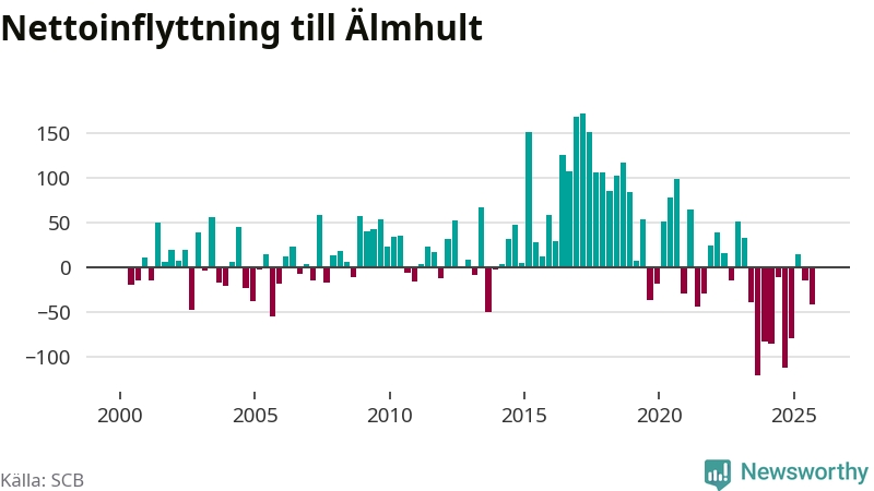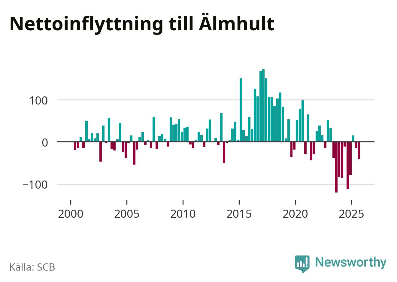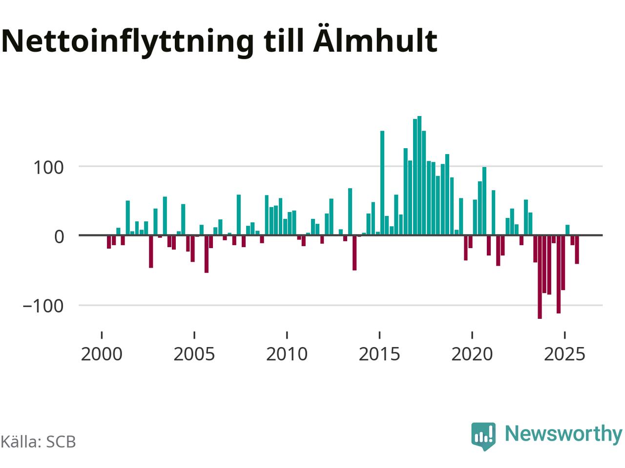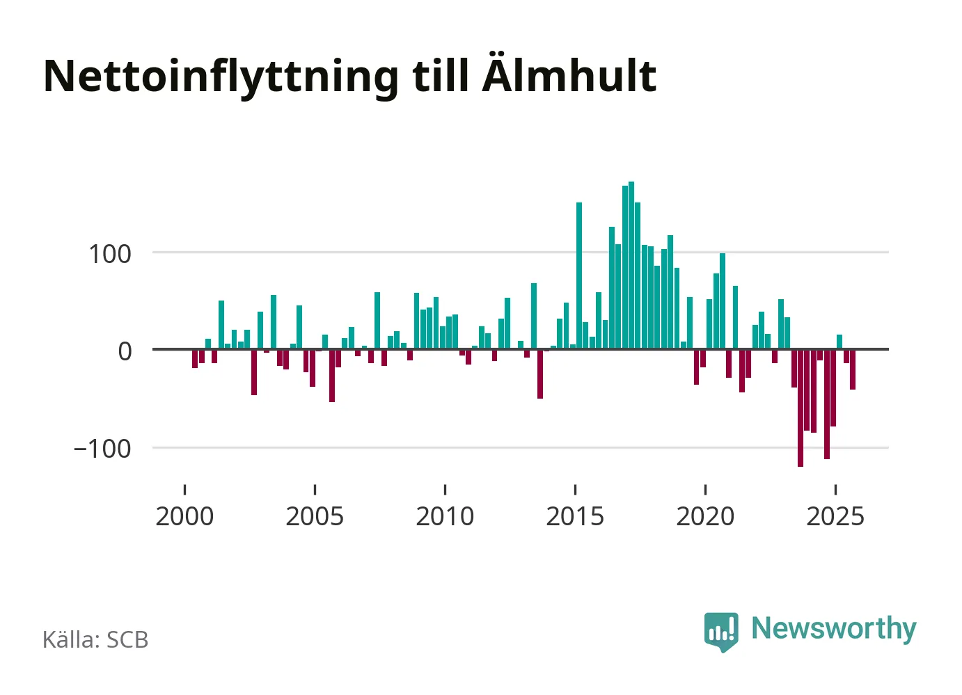 Under tredje kvartalet 2025 flyttade 244 personer till kommunen medan 285 personer flyttade därifrån. Det är historiskt sett en stor utflyttning under ett kvartal. Sedan seklets början har Älmhult oftast haft ett positivt flyttnetto.