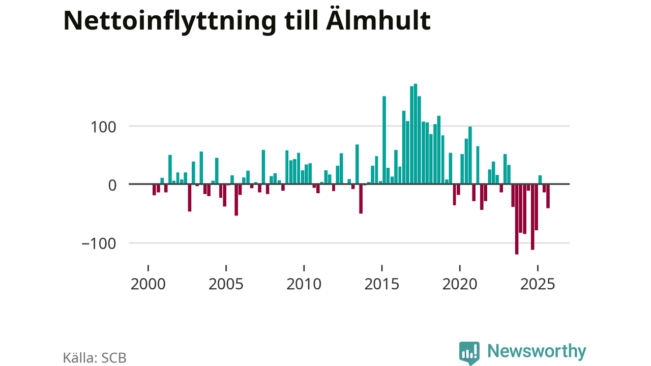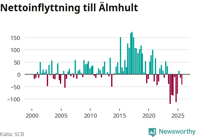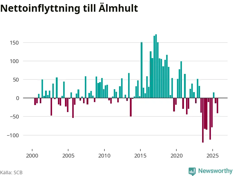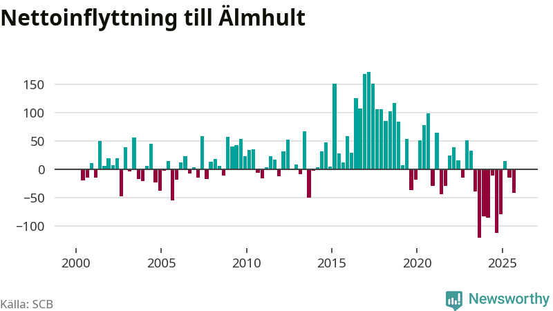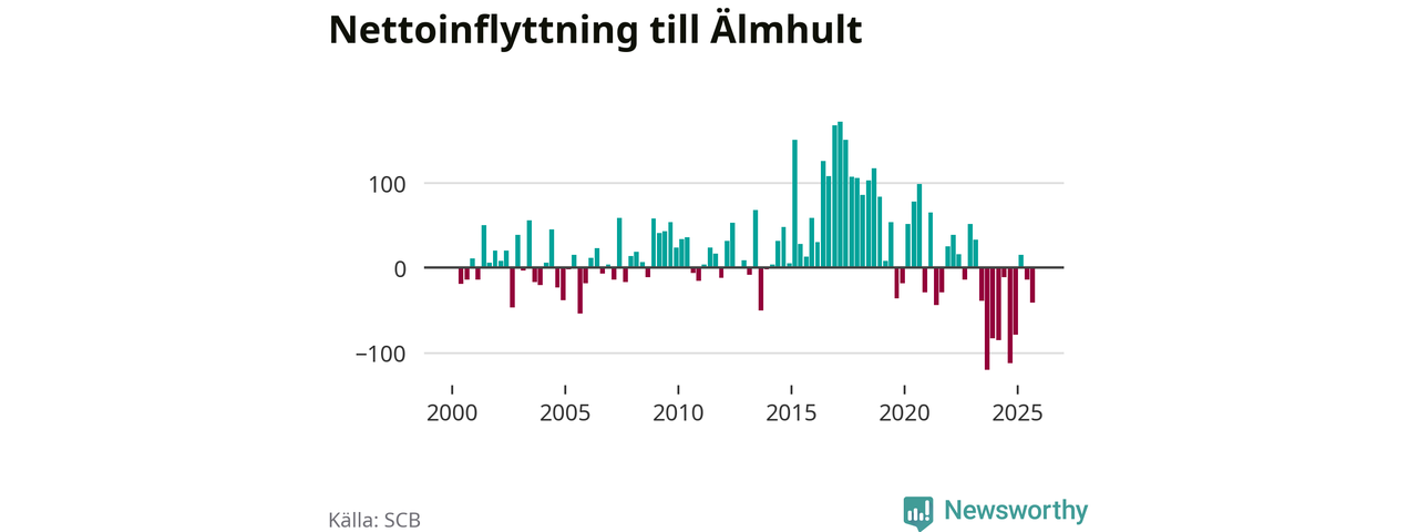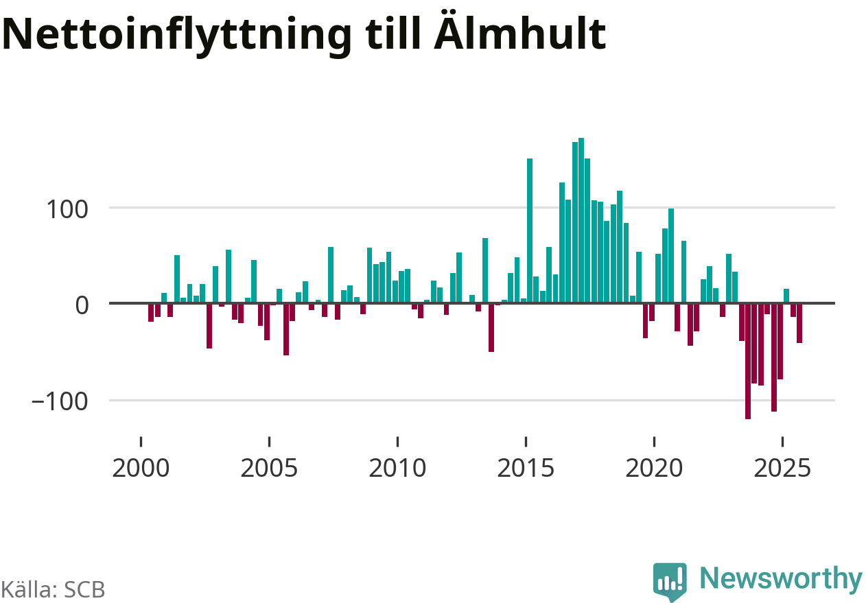 Under tredje kvartalet 2025 flyttade 244 personer till kommunen medan 285 personer flyttade därifrån. Det är historiskt sett en stor utflyttning under ett kvartal. Sedan seklets början har Älmhult oftast haft ett positivt flyttnetto.