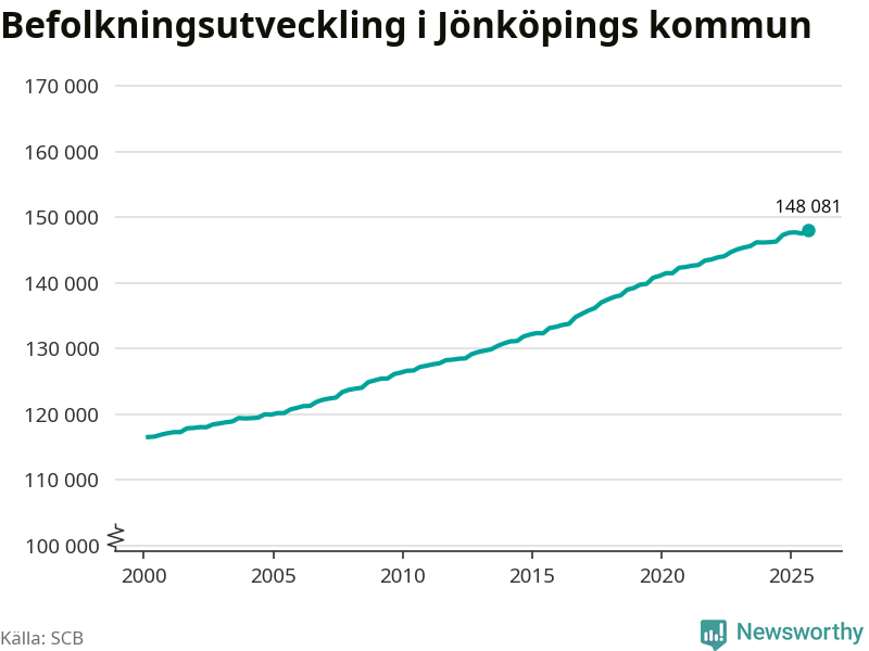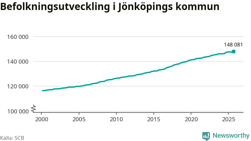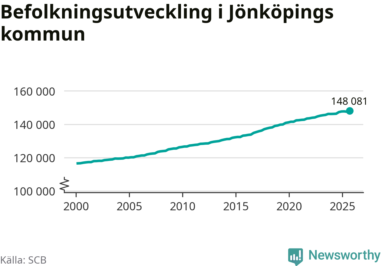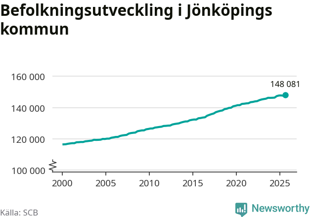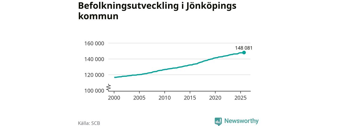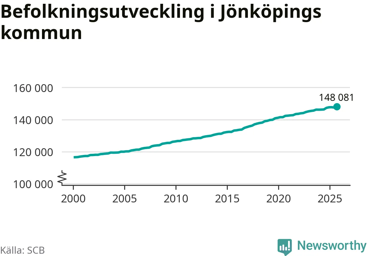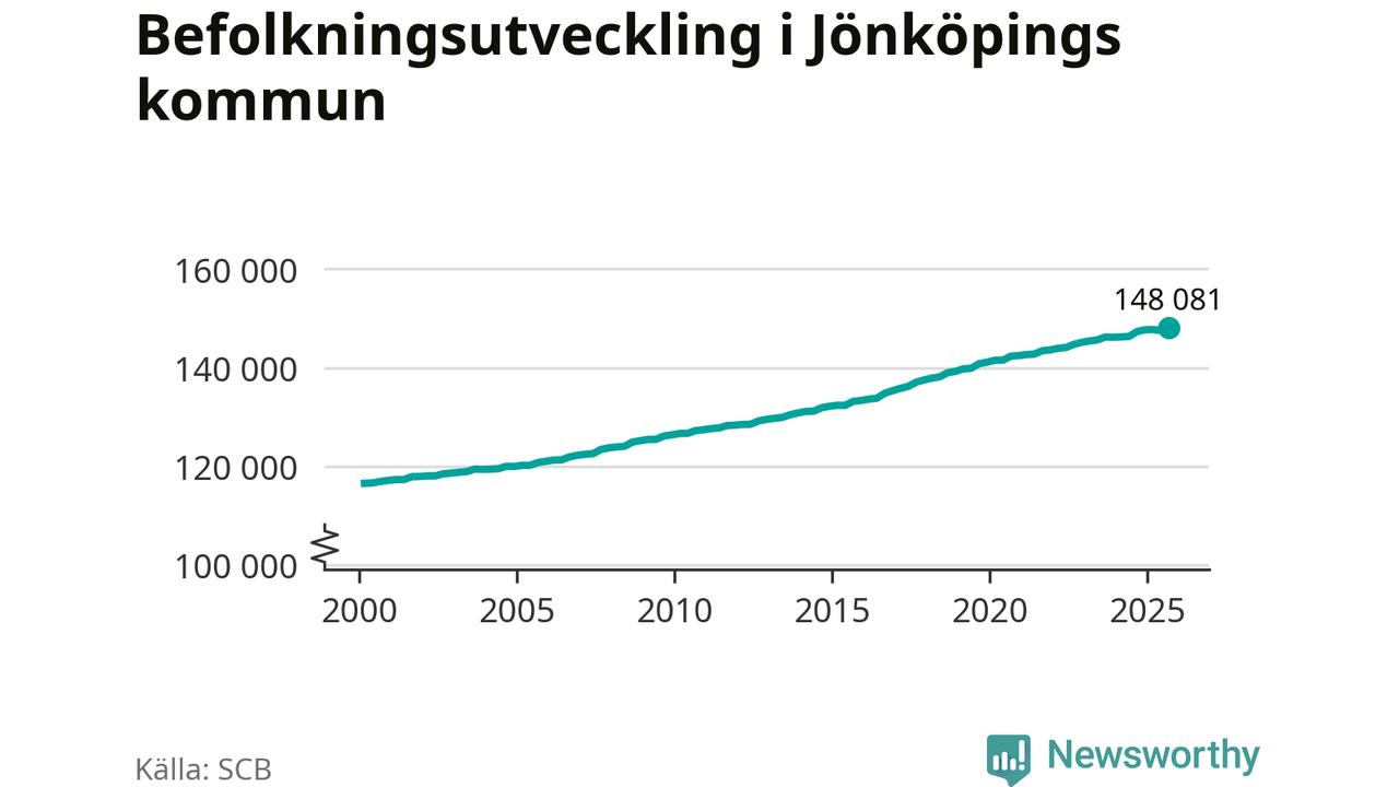 Befolkningen ökade i Jönköpings kommun under det tredje kvartalet 2025. Den 30 september bodde enligt SCB:s senaste siffror 148 081 personer i kommunen, vilket är 556 fler än i slutet av andra kvartalet. Folkökningen är den näst största i Jönköpings län procentuellt sett.