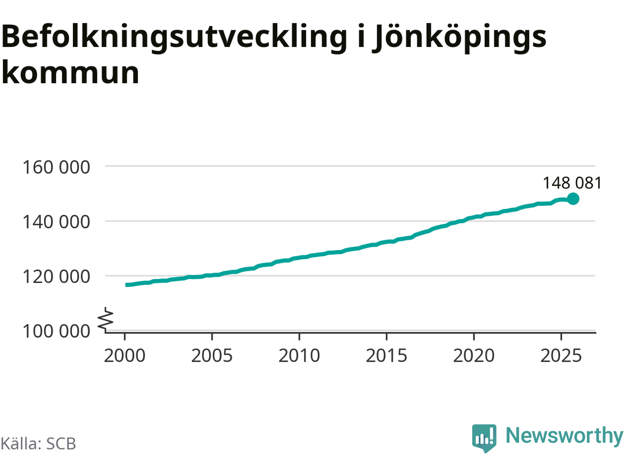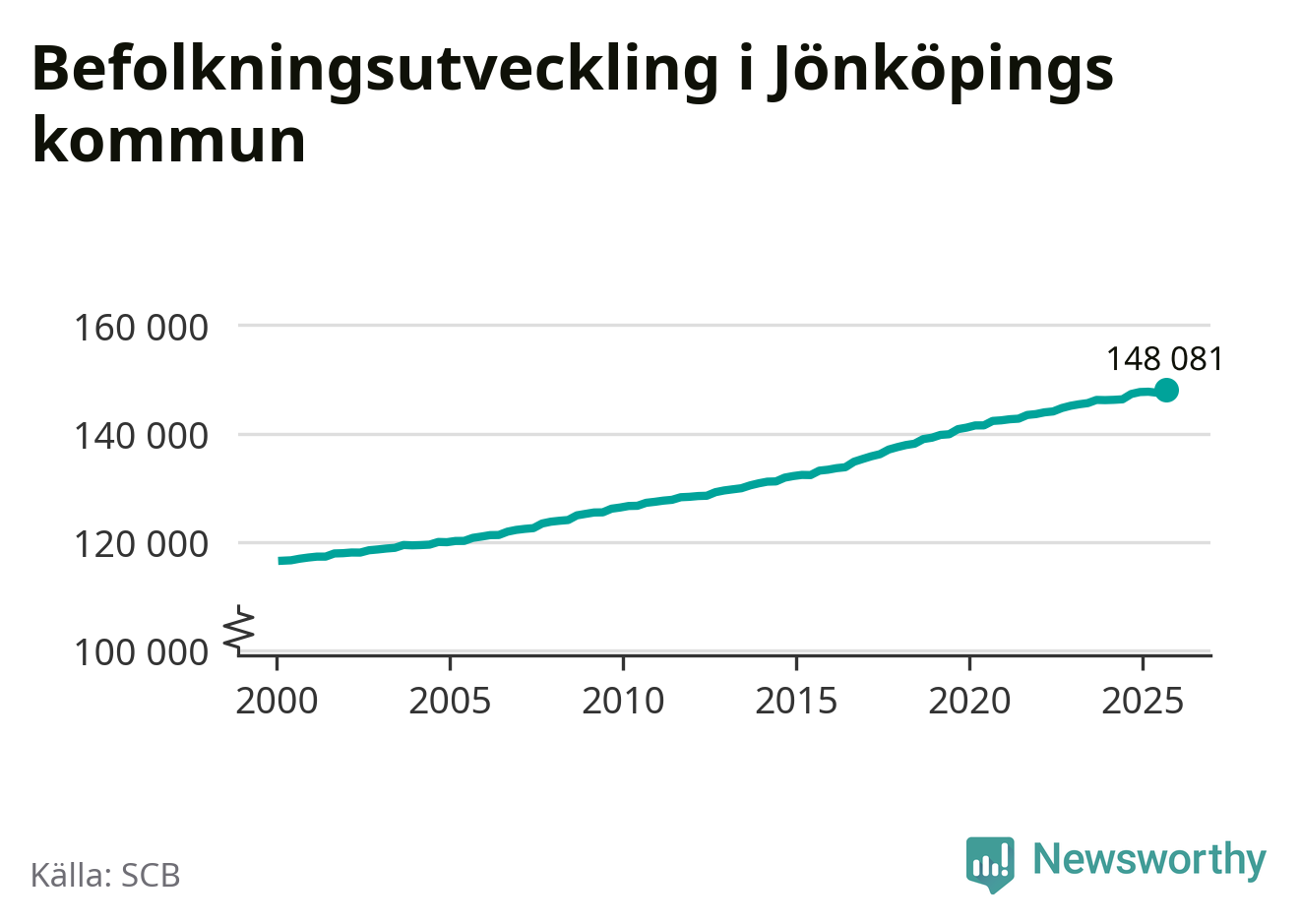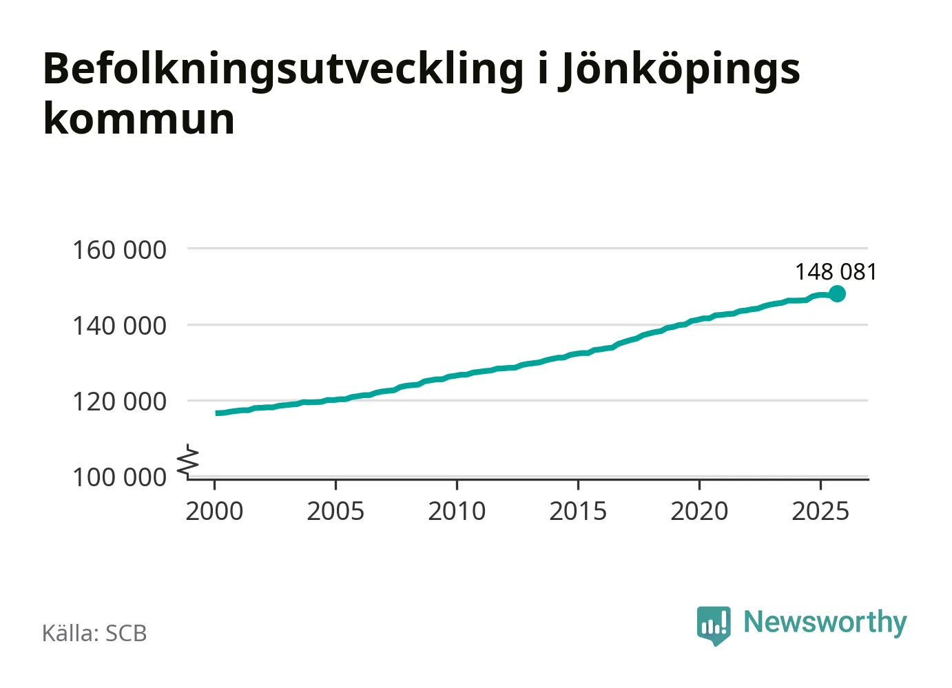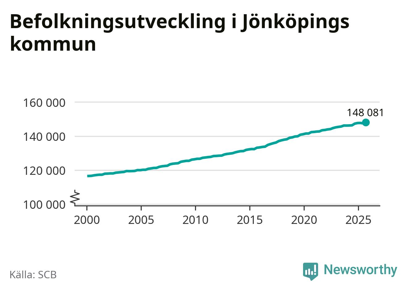 Befolkningen ökade i Jönköpings kommun under det tredje kvartalet 2025. Den 30 september bodde enligt SCB:s senaste siffror 148 081 personer i kommunen, vilket är 556 fler än i slutet av andra kvartalet. Folkökningen är den näst största i Jönköpings län procentuellt sett.