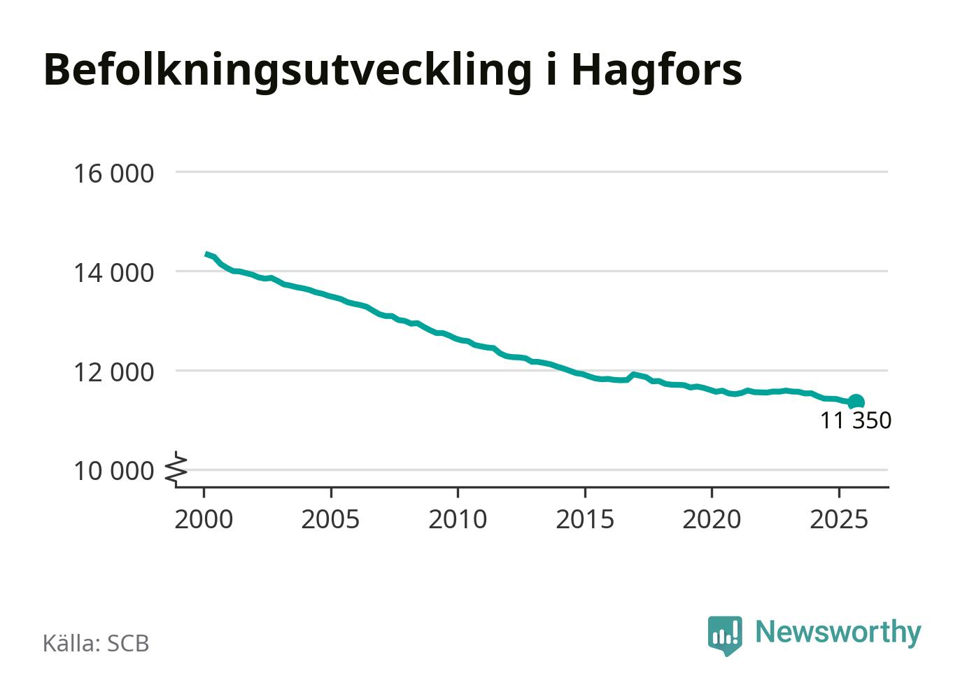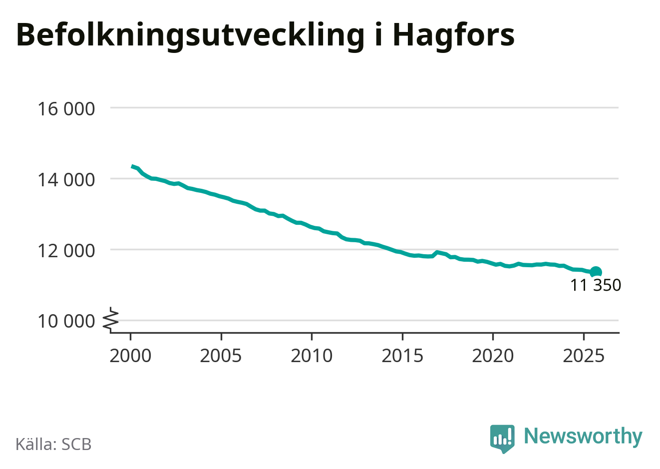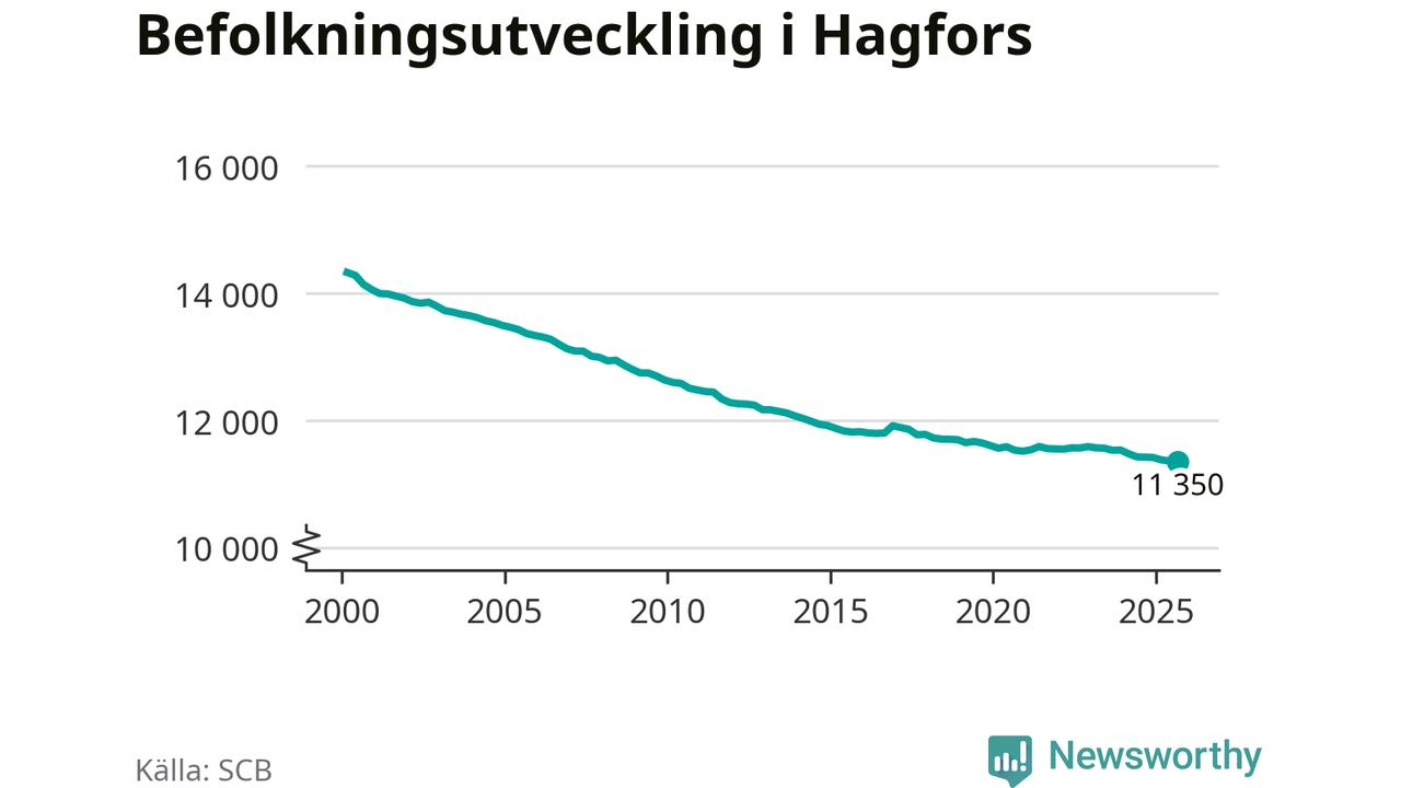 Befolkningen minskade i Hagfors kommun under det tredje kvartalet 2025. Den 30 september bodde enligt SCB:s senaste siffror 11 350 personer i kommunen, vilket är 14 färre än i slutet av andra kvartalet.