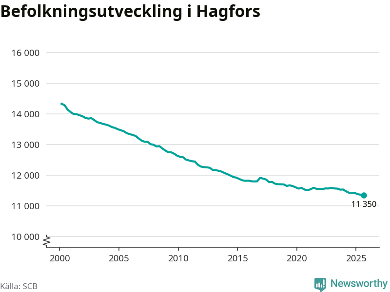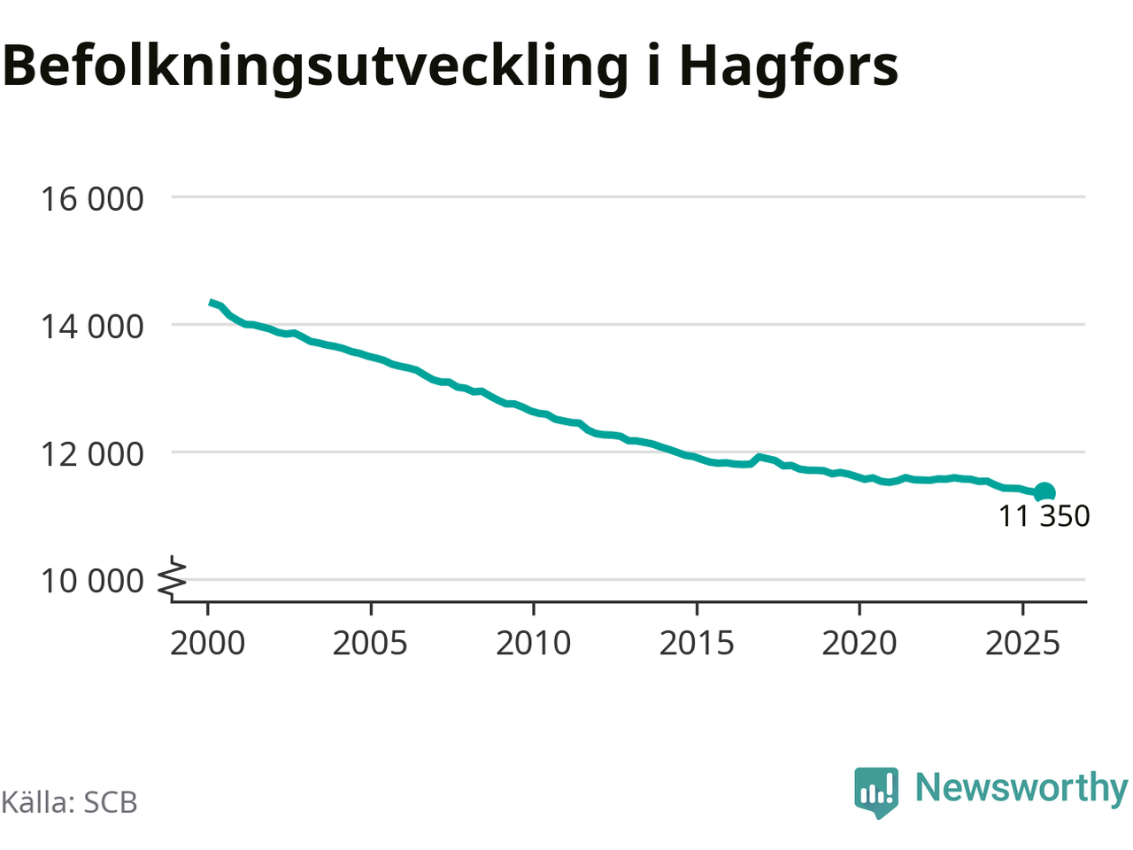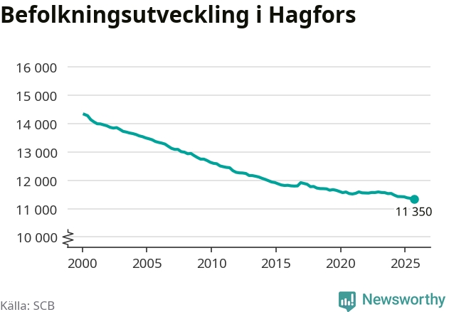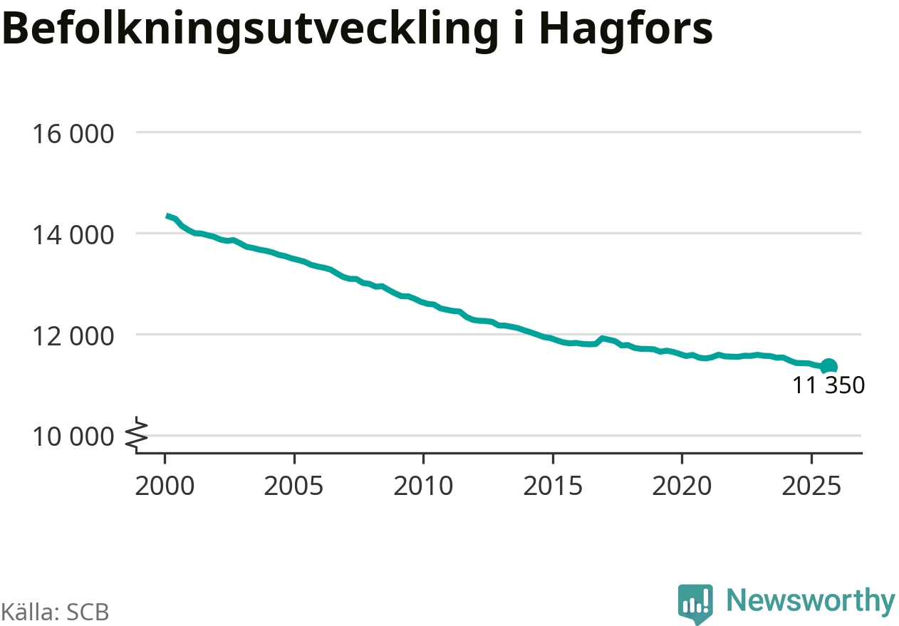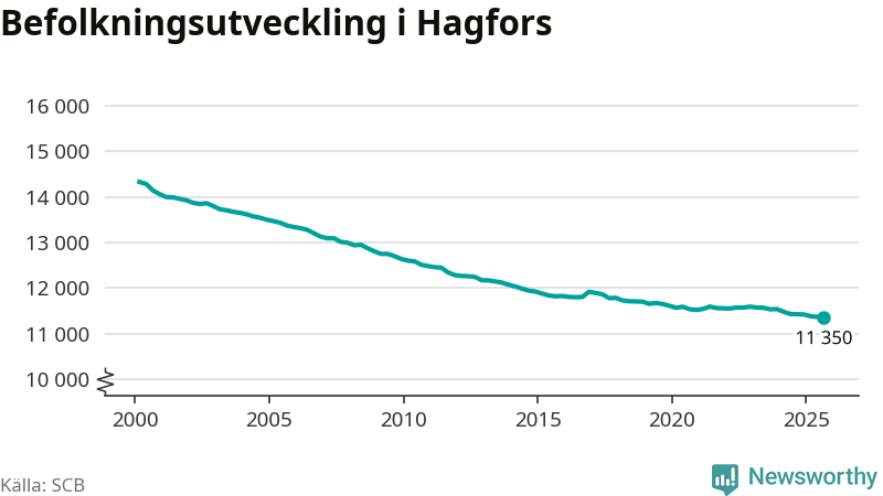 Befolkningen minskade i Hagfors kommun under det tredje kvartalet 2025. Den 30 september bodde enligt SCB:s senaste siffror 11 350 personer i kommunen, vilket är 14 färre än i slutet av andra kvartalet.