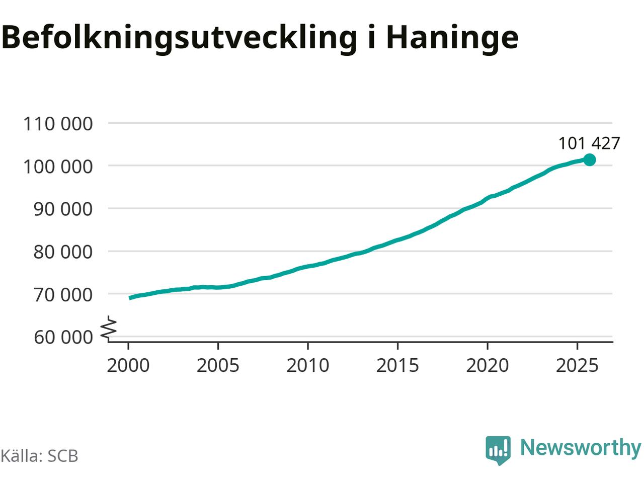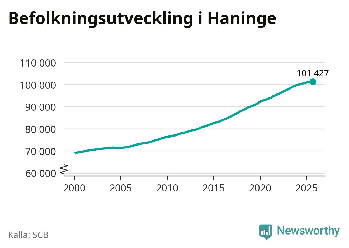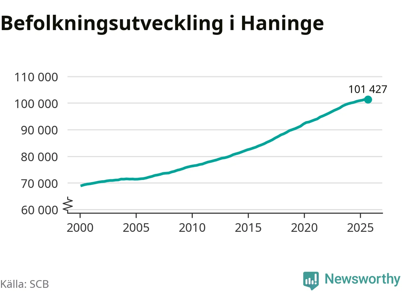 Befolkningen ökade i Haninge kommun under det tredje kvartalet 2025. Den 30 september bodde enligt SCB:s senaste siffror 101 427 personer i kommunen, vilket är 36 fler än i slutet av andra kvartalet.