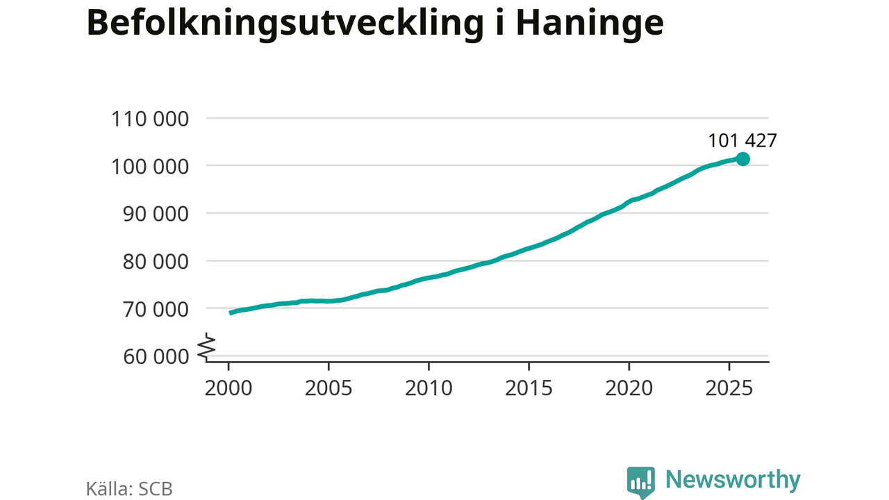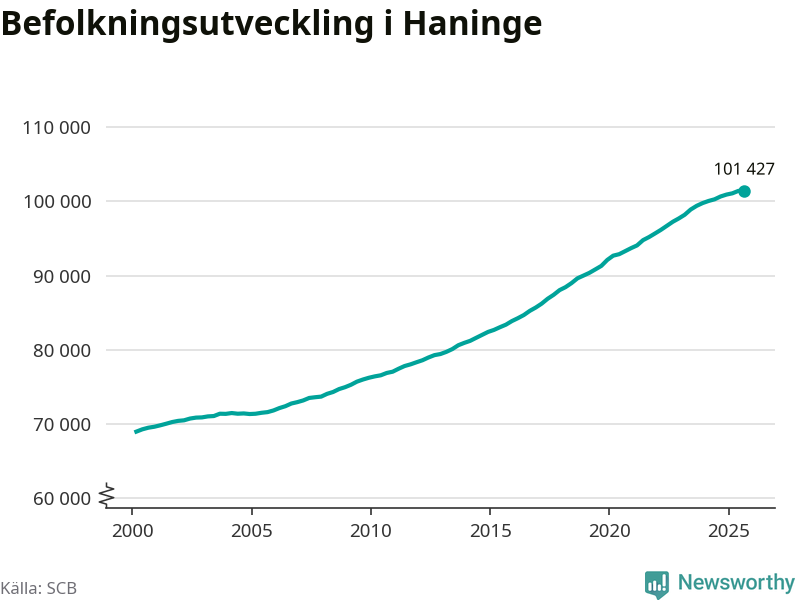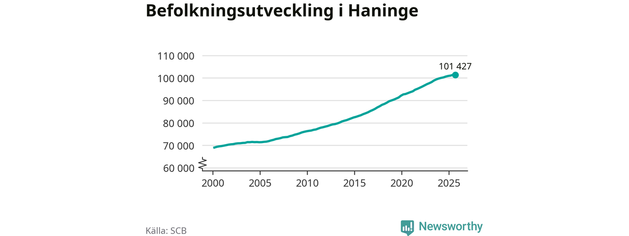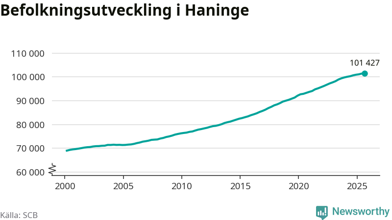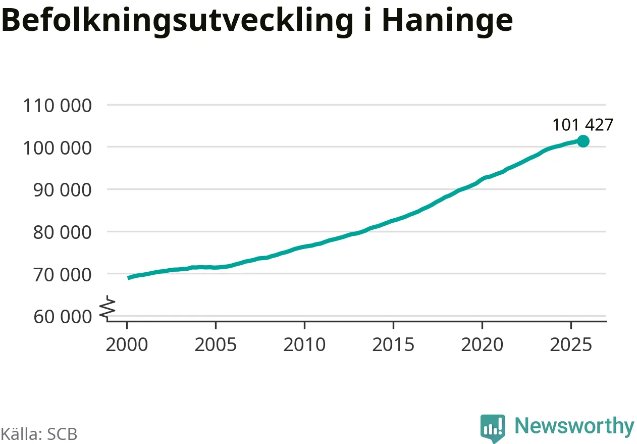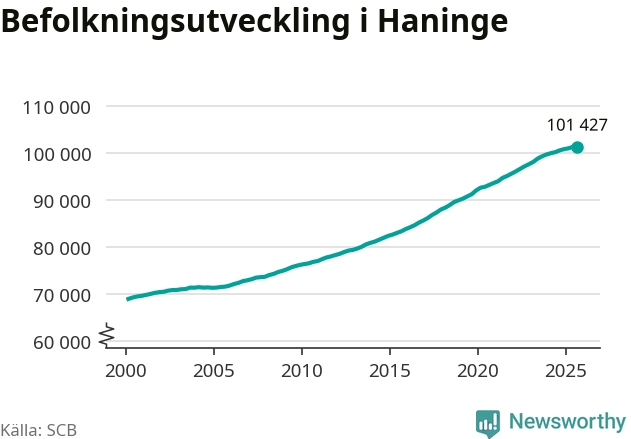 Befolkningen ökade i Haninge kommun under det tredje kvartalet 2025. Den 30 september bodde enligt SCB:s senaste siffror 101 427 personer i kommunen, vilket är 36 fler än i slutet av andra kvartalet.