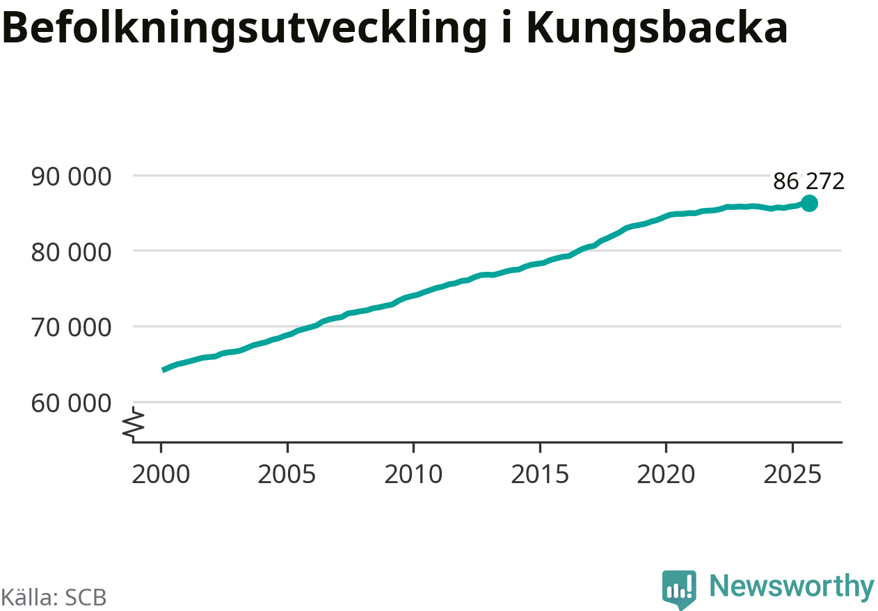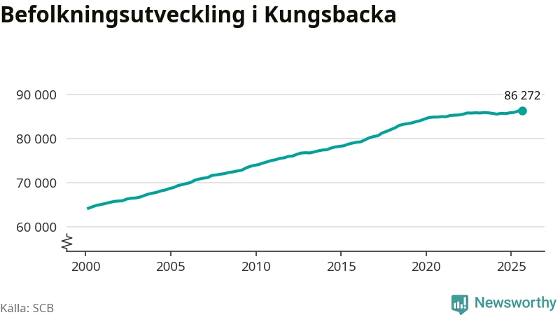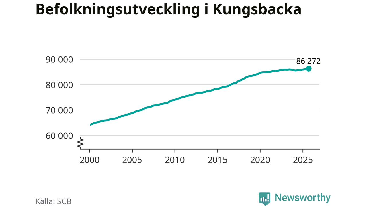 Befolkningen ökade i Kungsbacka kommun under det tredje kvartalet 2025. Den 30 september bodde enligt SCB:s senaste siffror 86 272 personer i kommunen, vilket är 78 fler än i slutet av andra kvartalet. Folkökningen är procentuellt sett en av de största i Halland.