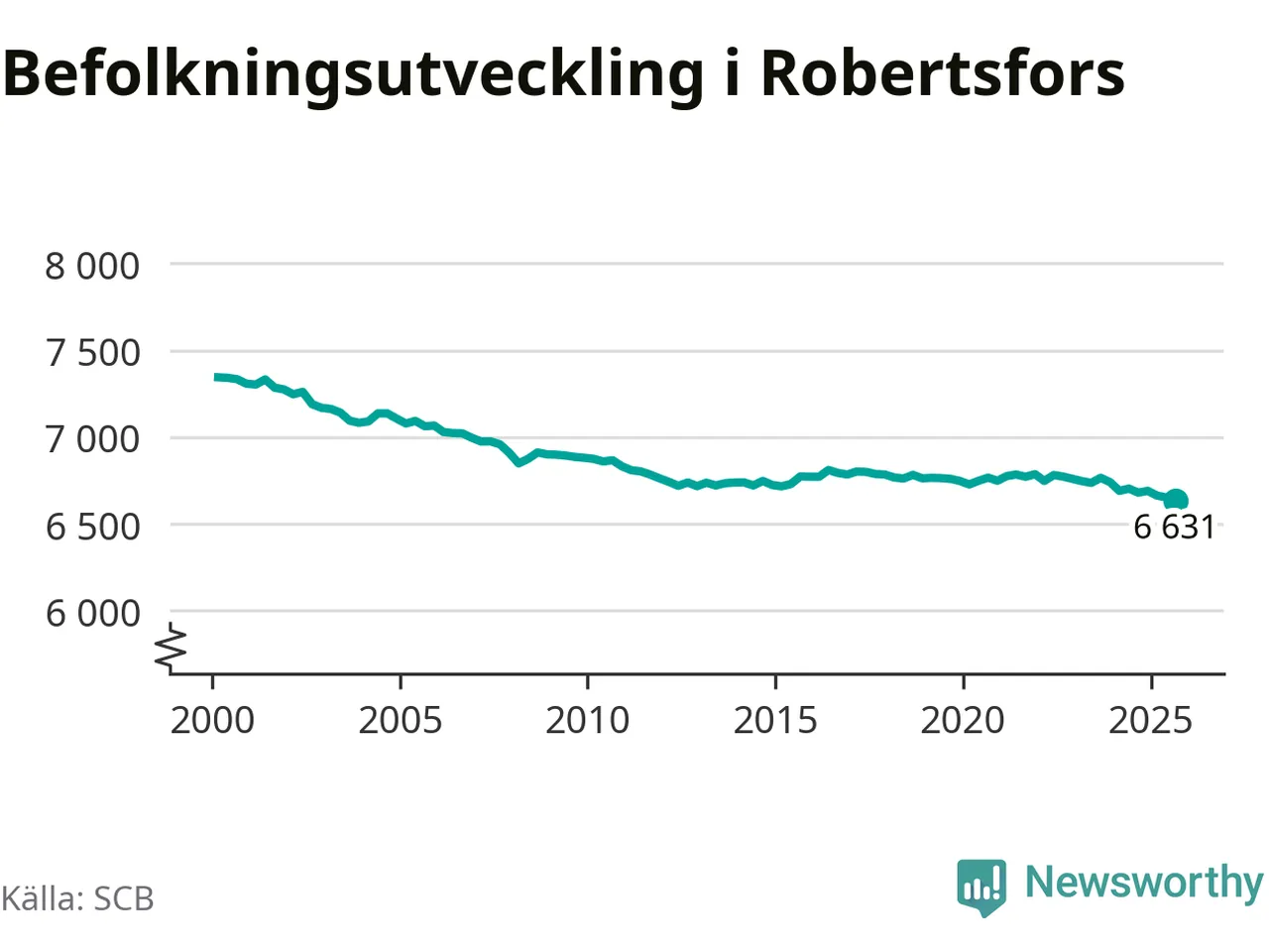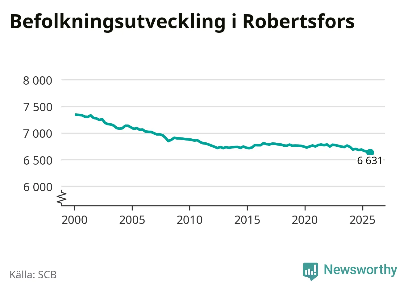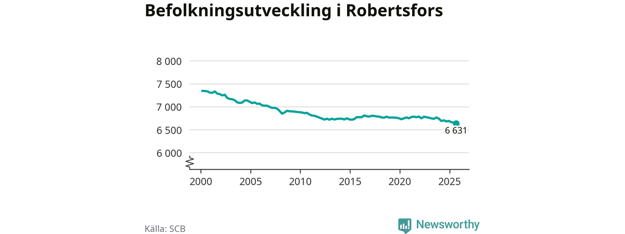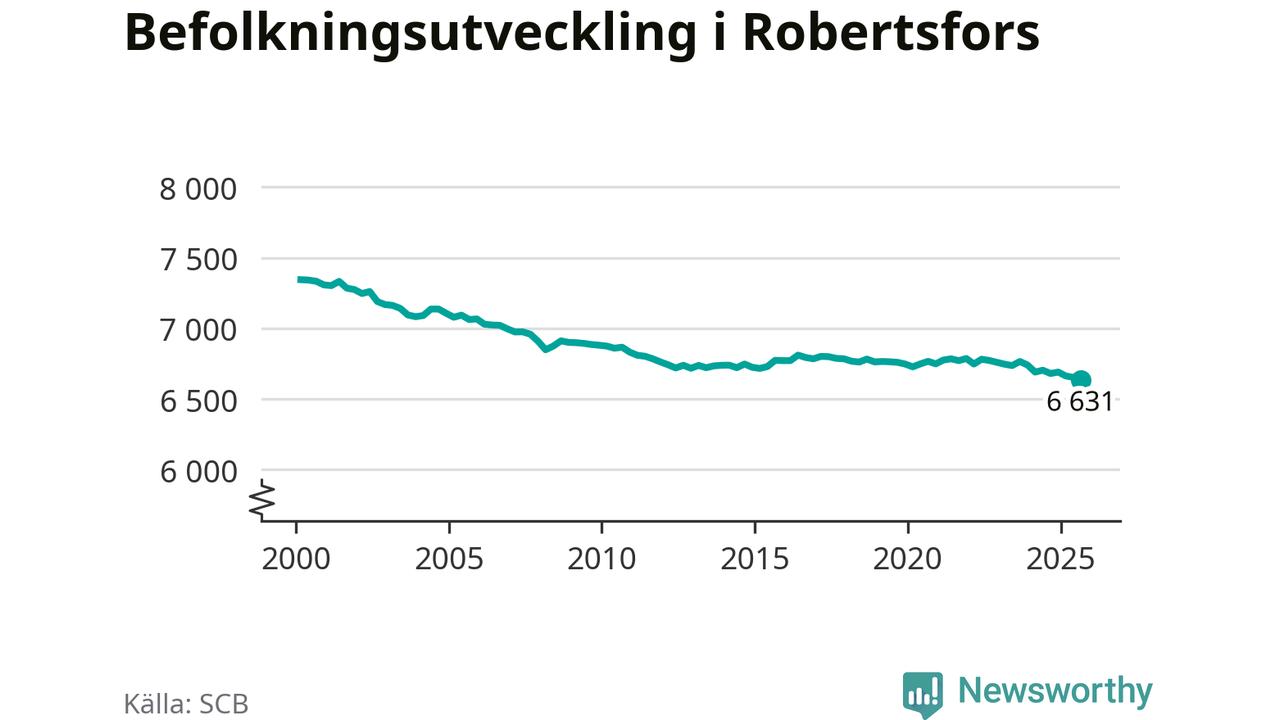 Befolkningen minskade i Robertsfors kommun under det tredje kvartalet 2025. Den 30 september bodde enligt SCB:s senaste siffror 6 631 personer i kommunen, vilket är 21 färre än i slutet av andra kvartalet.