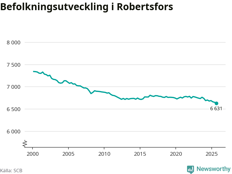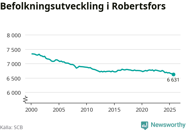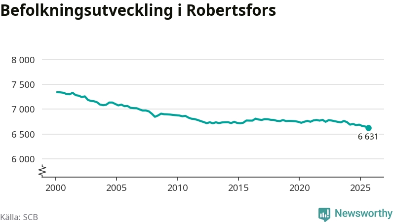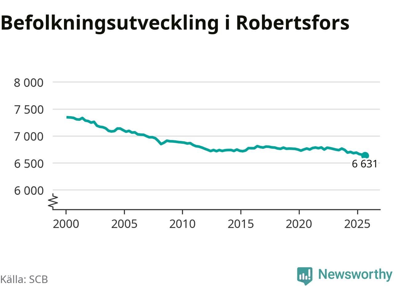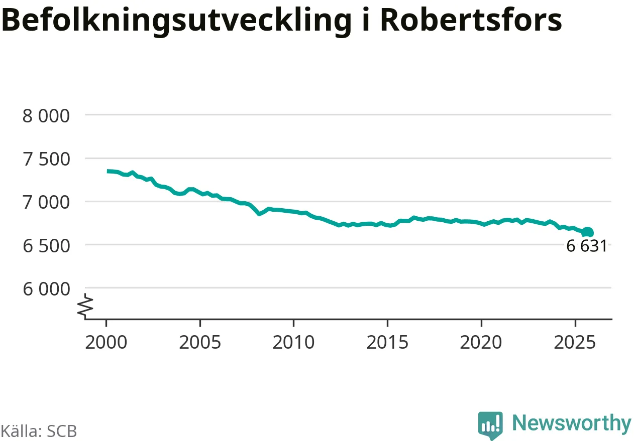 Befolkningen minskade i Robertsfors kommun under det tredje kvartalet 2025. Den 30 september bodde enligt SCB:s senaste siffror 6 631 personer i kommunen, vilket är 21 färre än i slutet av andra kvartalet.