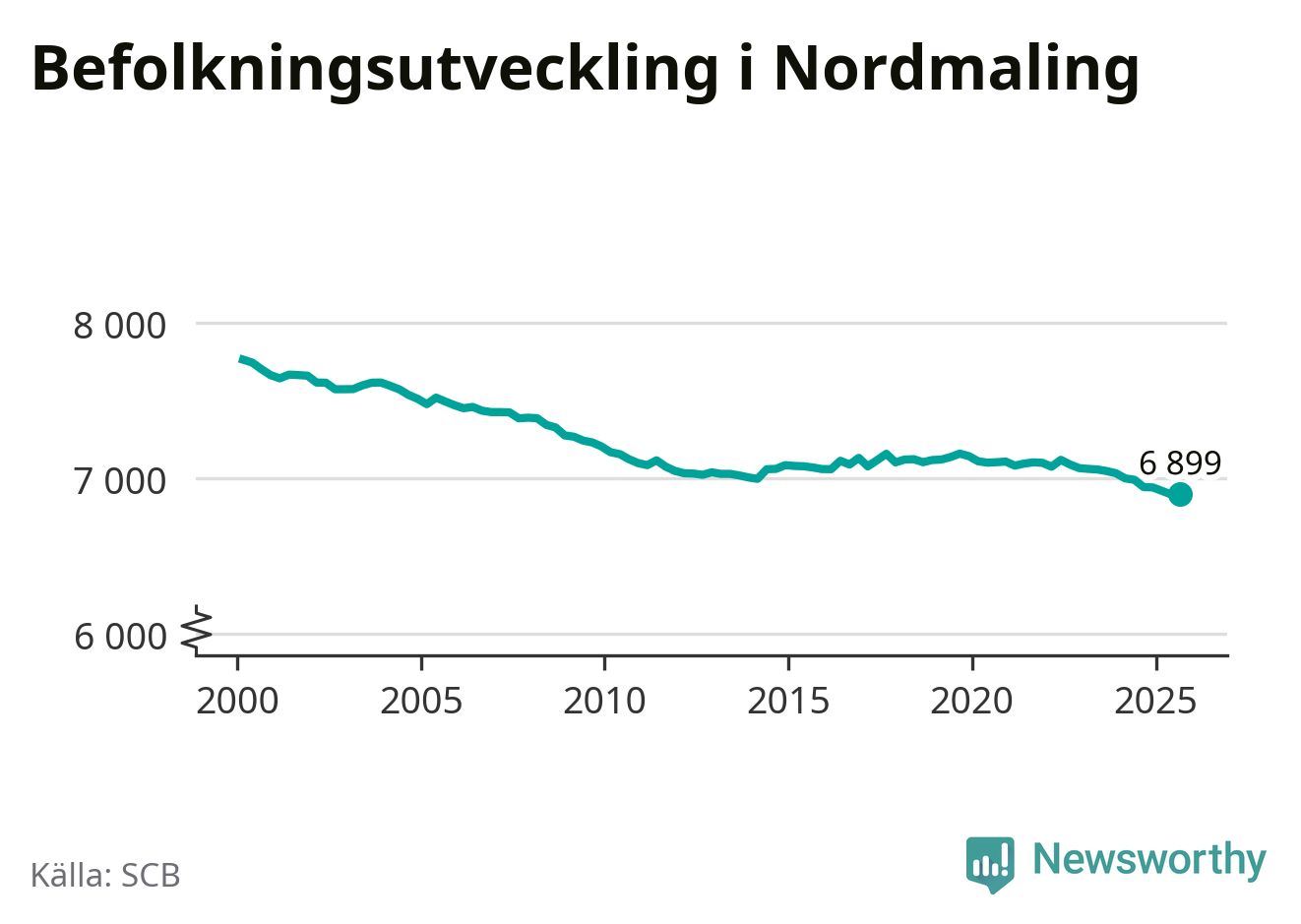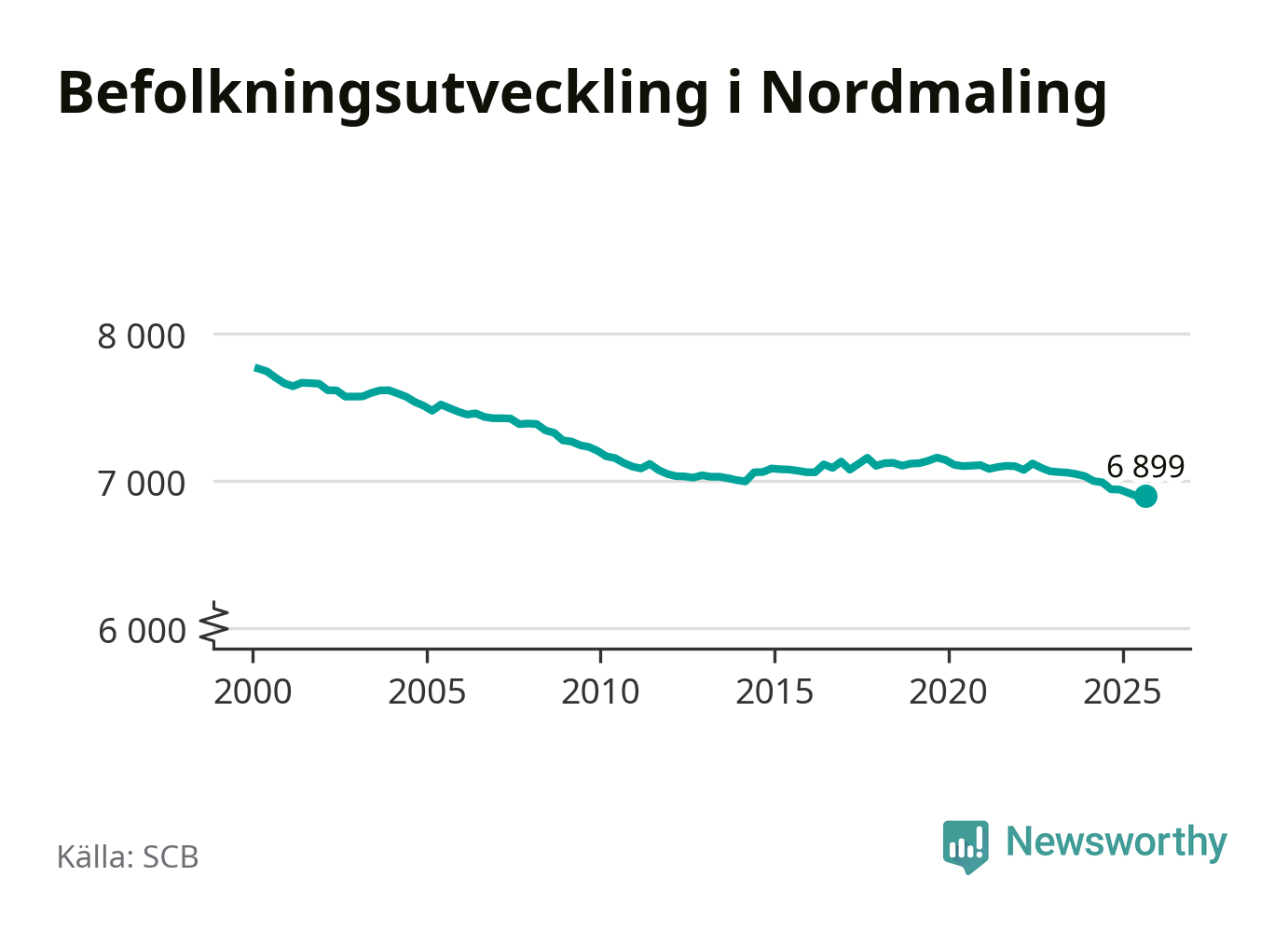 Den 30 september bodde 6 899 personer i Nordmalings kommun, enligt SCB:s senaste siffror. Det är något fler än i slutet av andra kvartalet, men skillnaden är så liten att den lika gärna kan bero på den lilla justering som SCB gör av siffrorna för att skydda enskilda individers identitet.