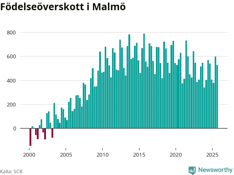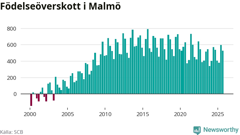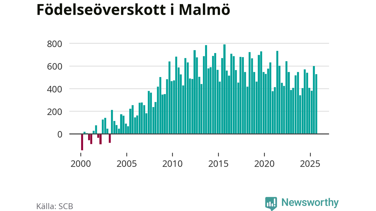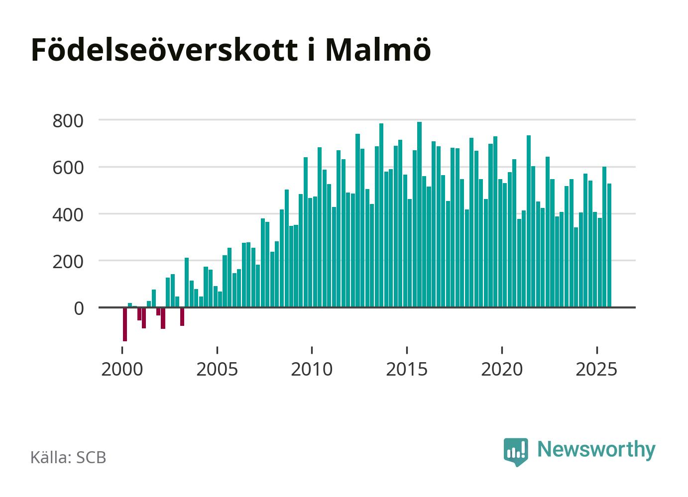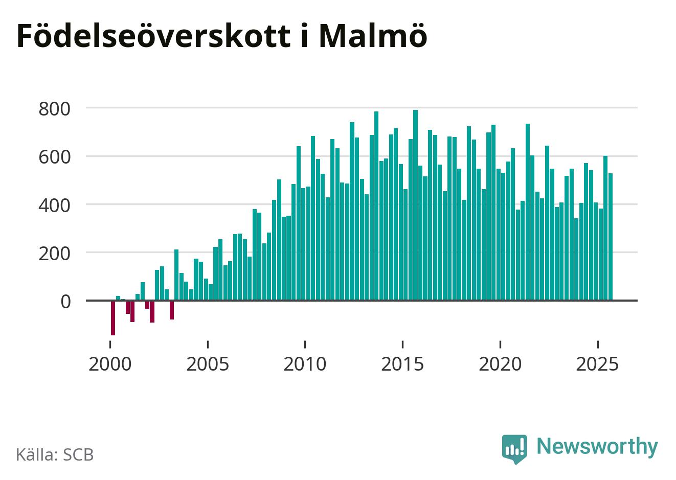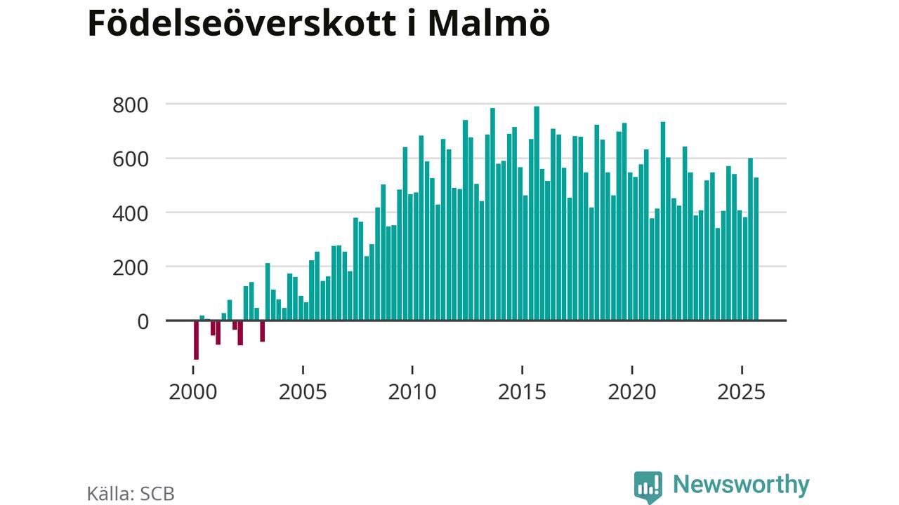Enligt SCB:s siffror föddes 1 117 barn i Malmö under det senaste kvartalet. Samtidigt avled relativt få – 590 personer. Malmö hade alltså ett positivt födelsenetto, vilket kommunen historiskt sett i princip alltid har haft.