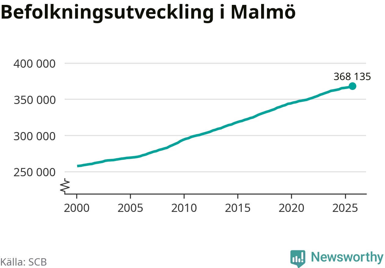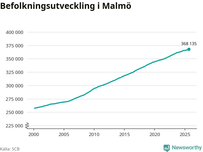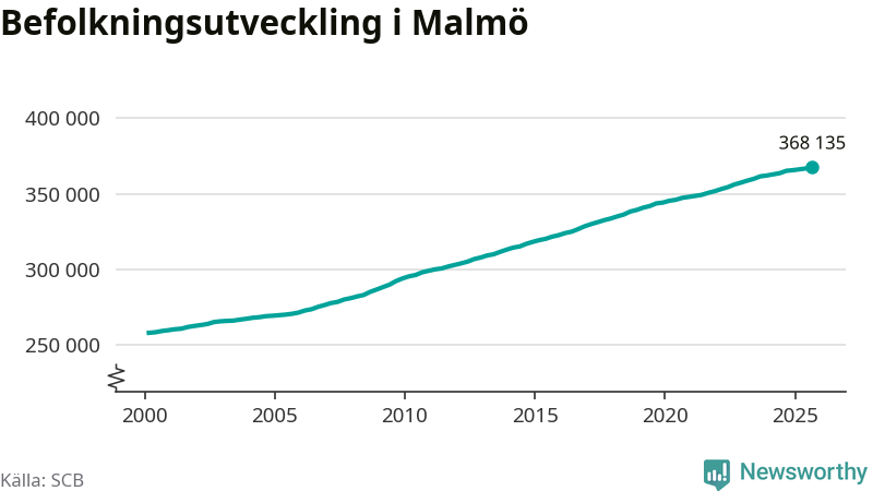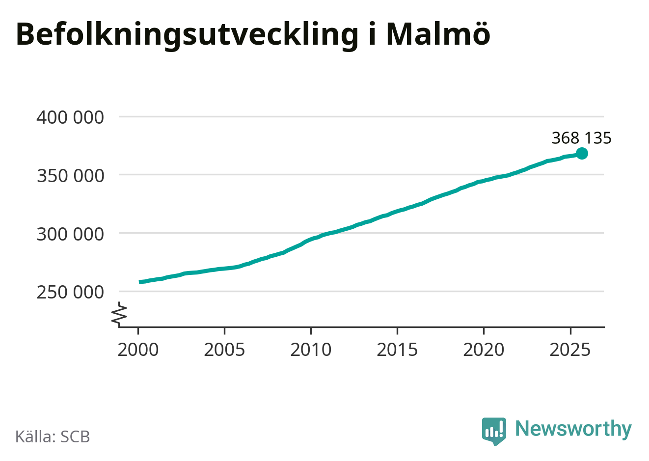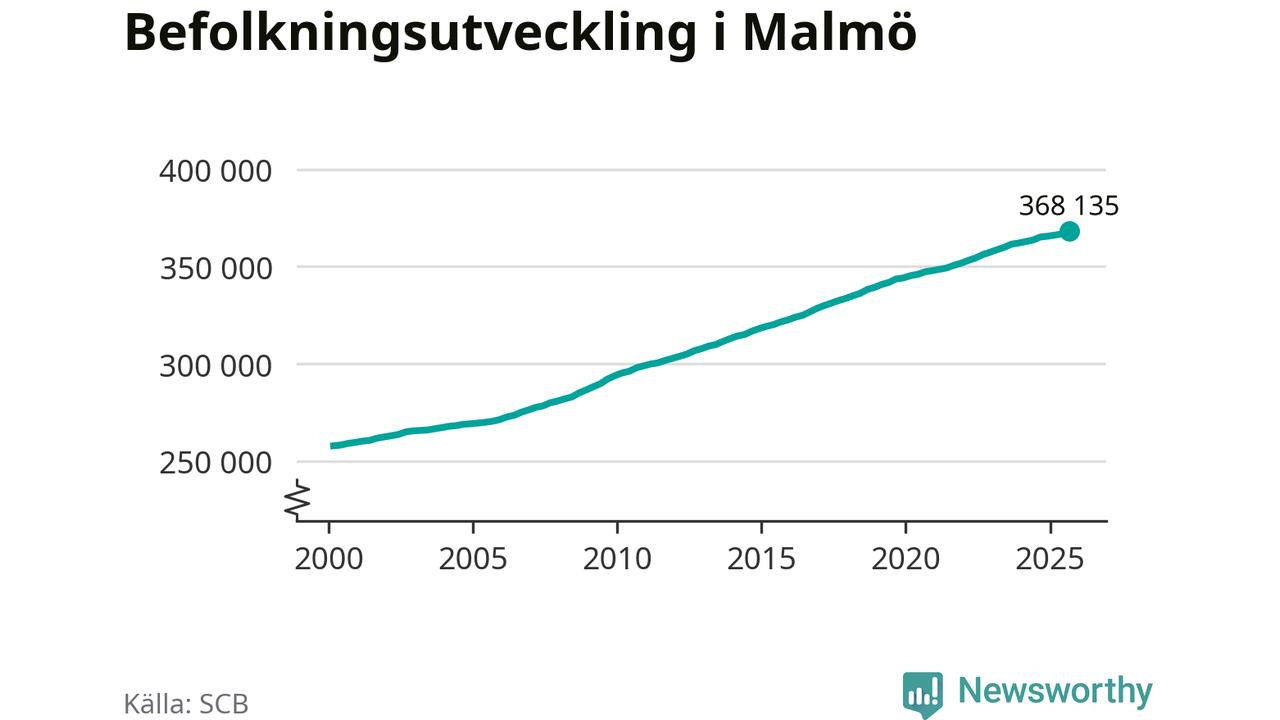 Befolkningen ökade i Malmö kommun under det tredje kvartalet 2025. Den 30 september bodde enligt SCB:s senaste siffror 368 135 personer i kommunen, vilket är 1 332 fler än i slutet av andra kvartalet. Folkökningen är den tredje största i Skåne procentuellt sett.
