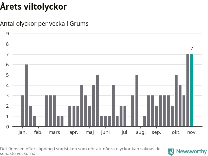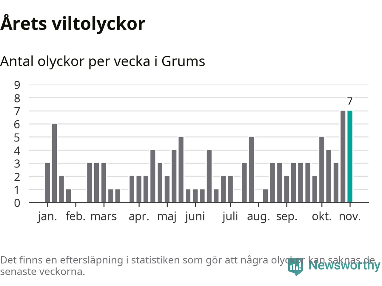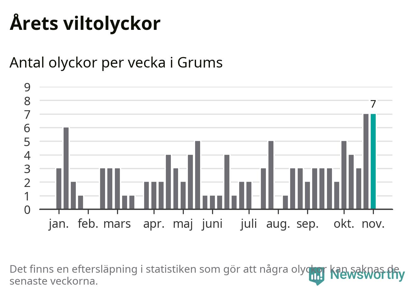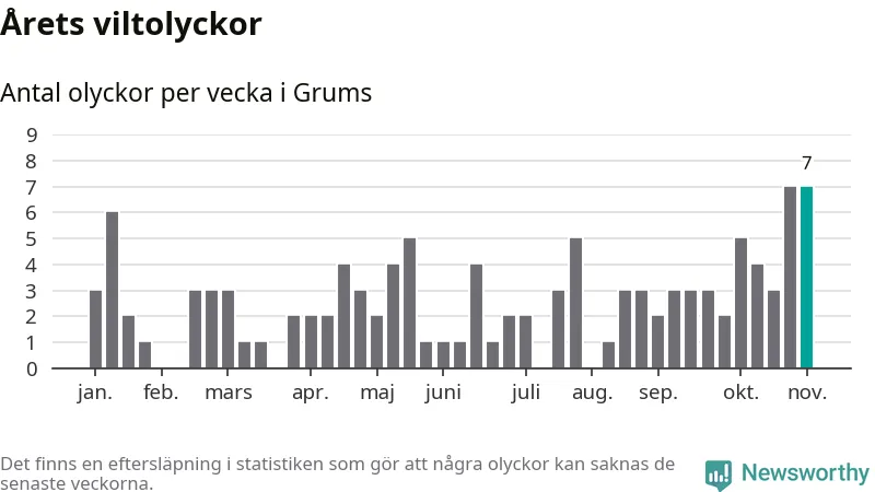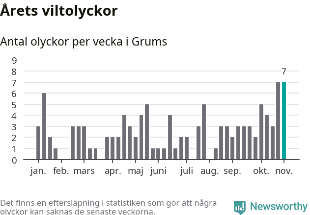 Sju olyckor på en enda vecka är däremot ovanligt många. Bara fem gånger tidigare sedan 2015 har det skett