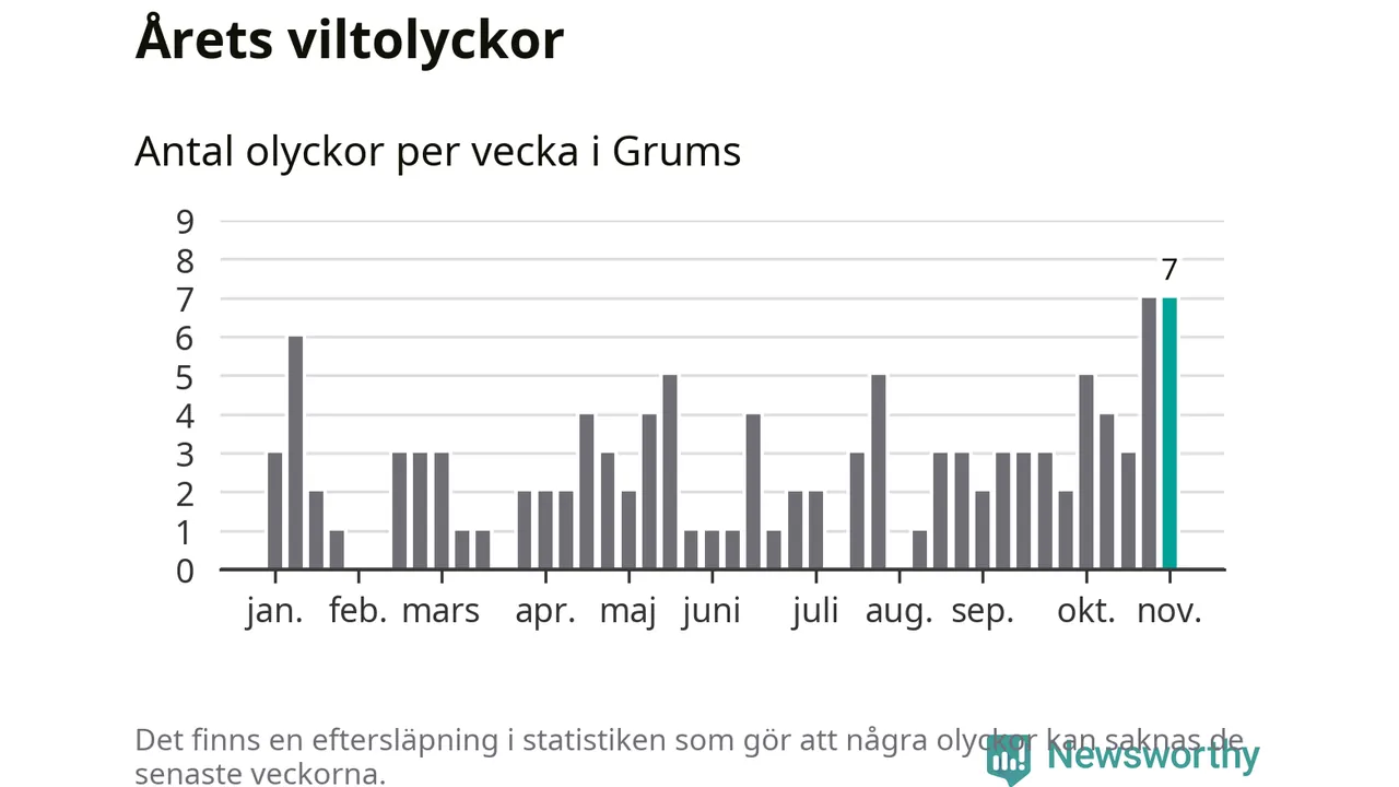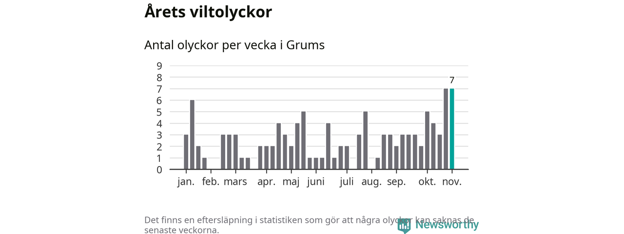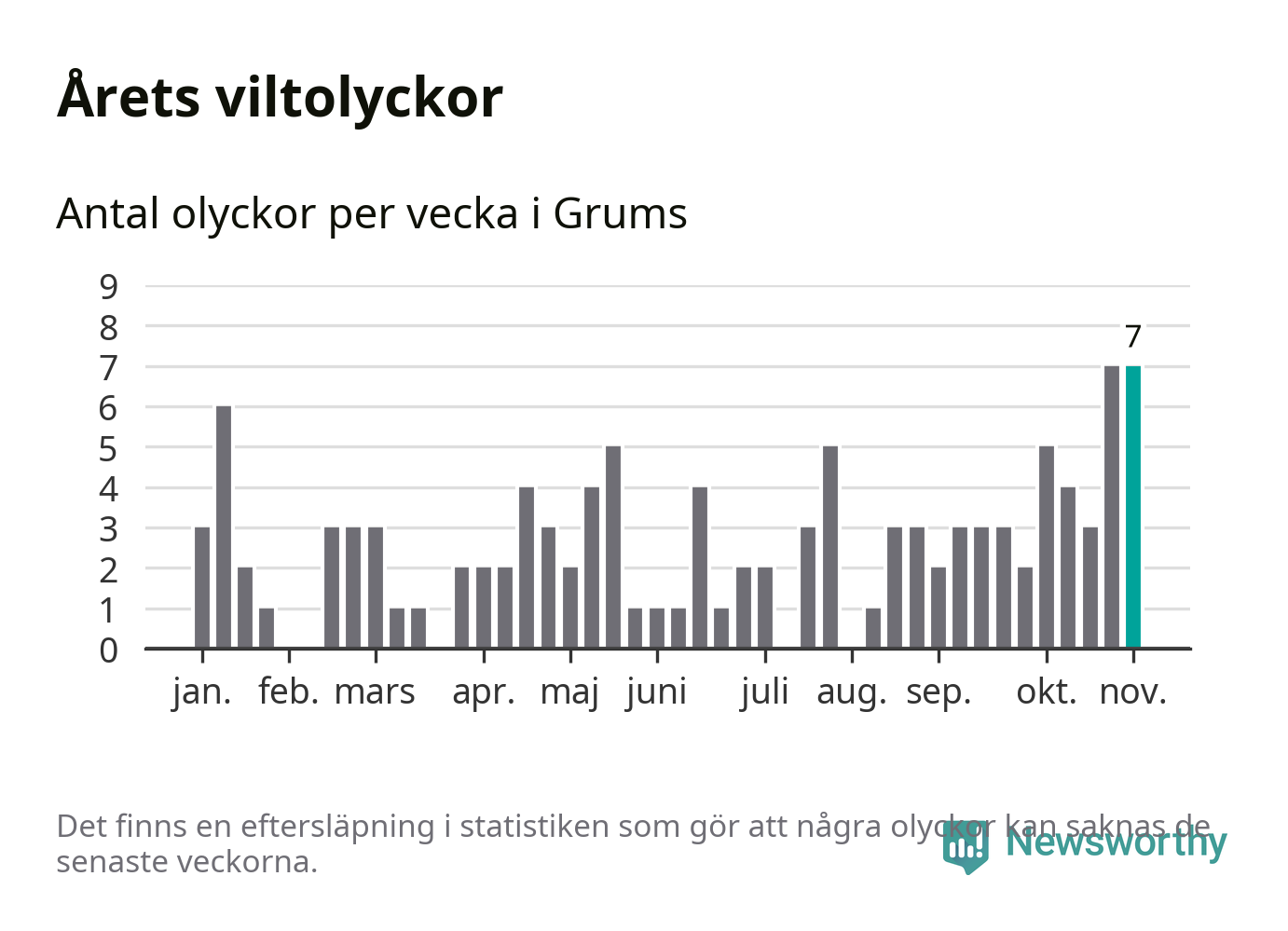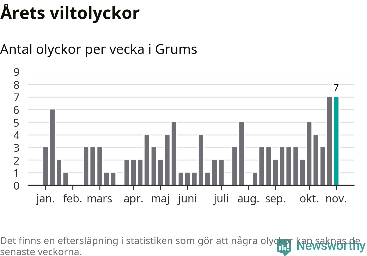 Sju olyckor på en enda vecka är däremot ovanligt många. Bara fem gånger tidigare sedan 2015 har det skett