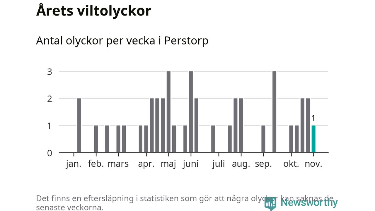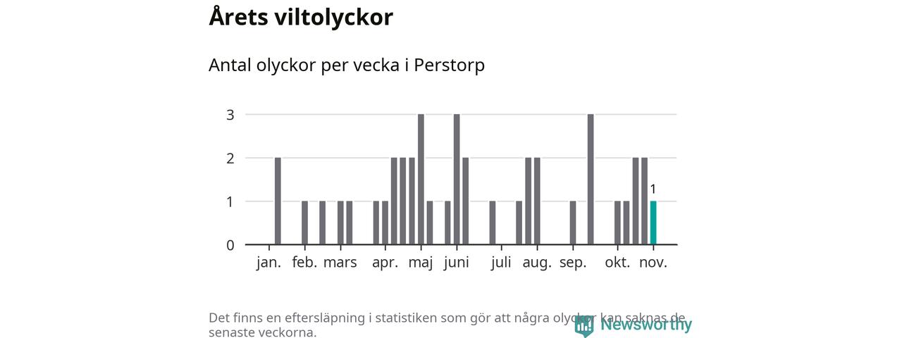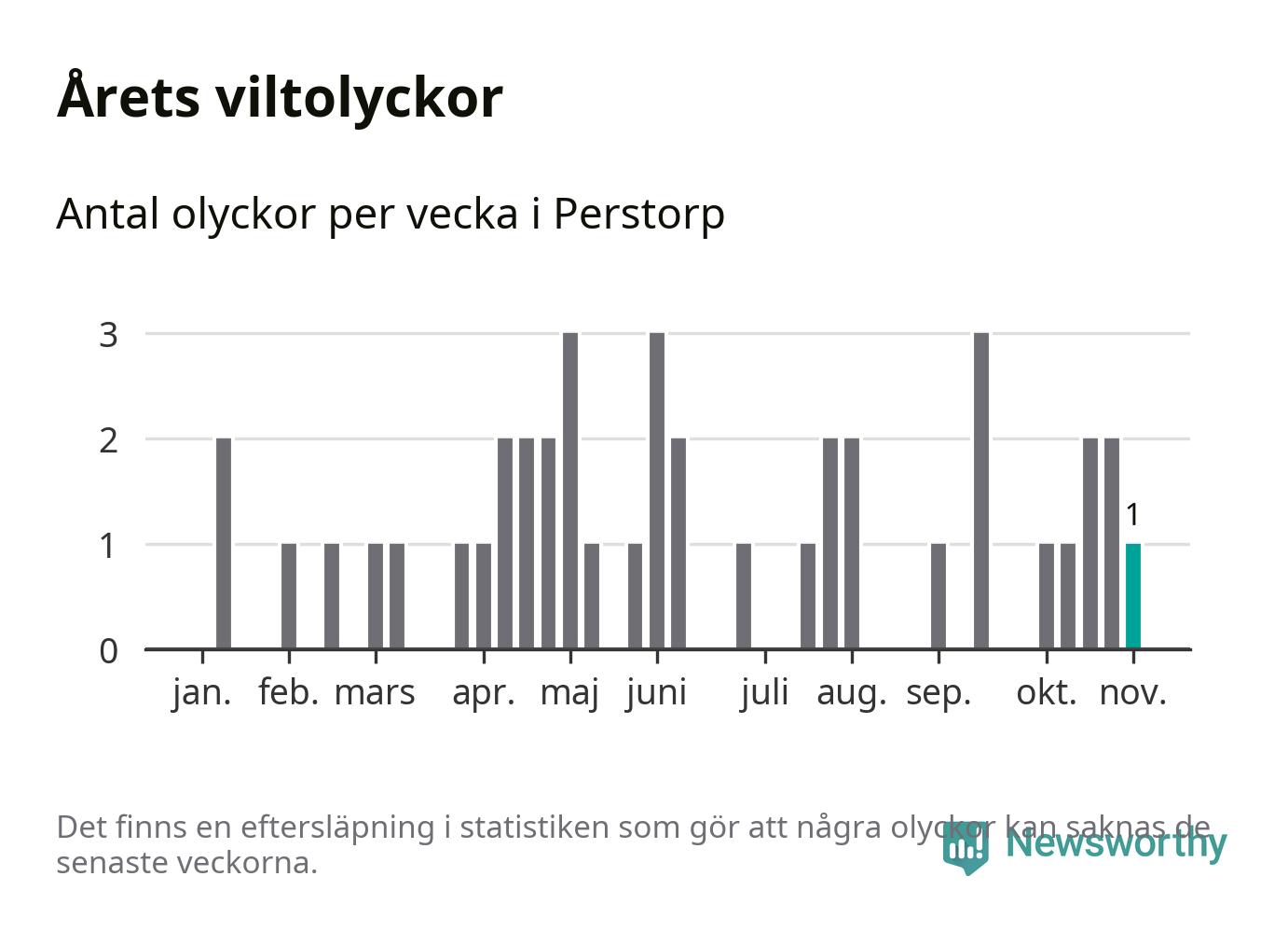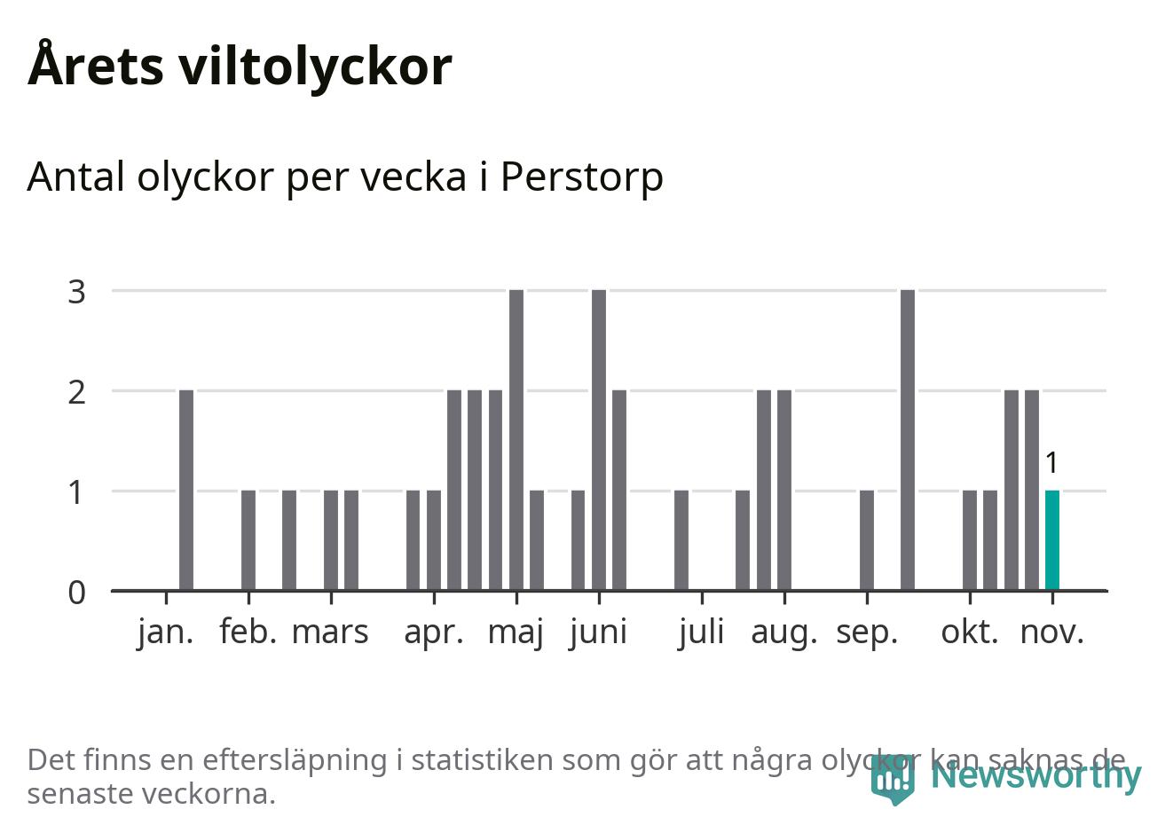 Från förra veckan (vecka 45) har hittills en viltolycka rapporterats in i Perstorps kommun.