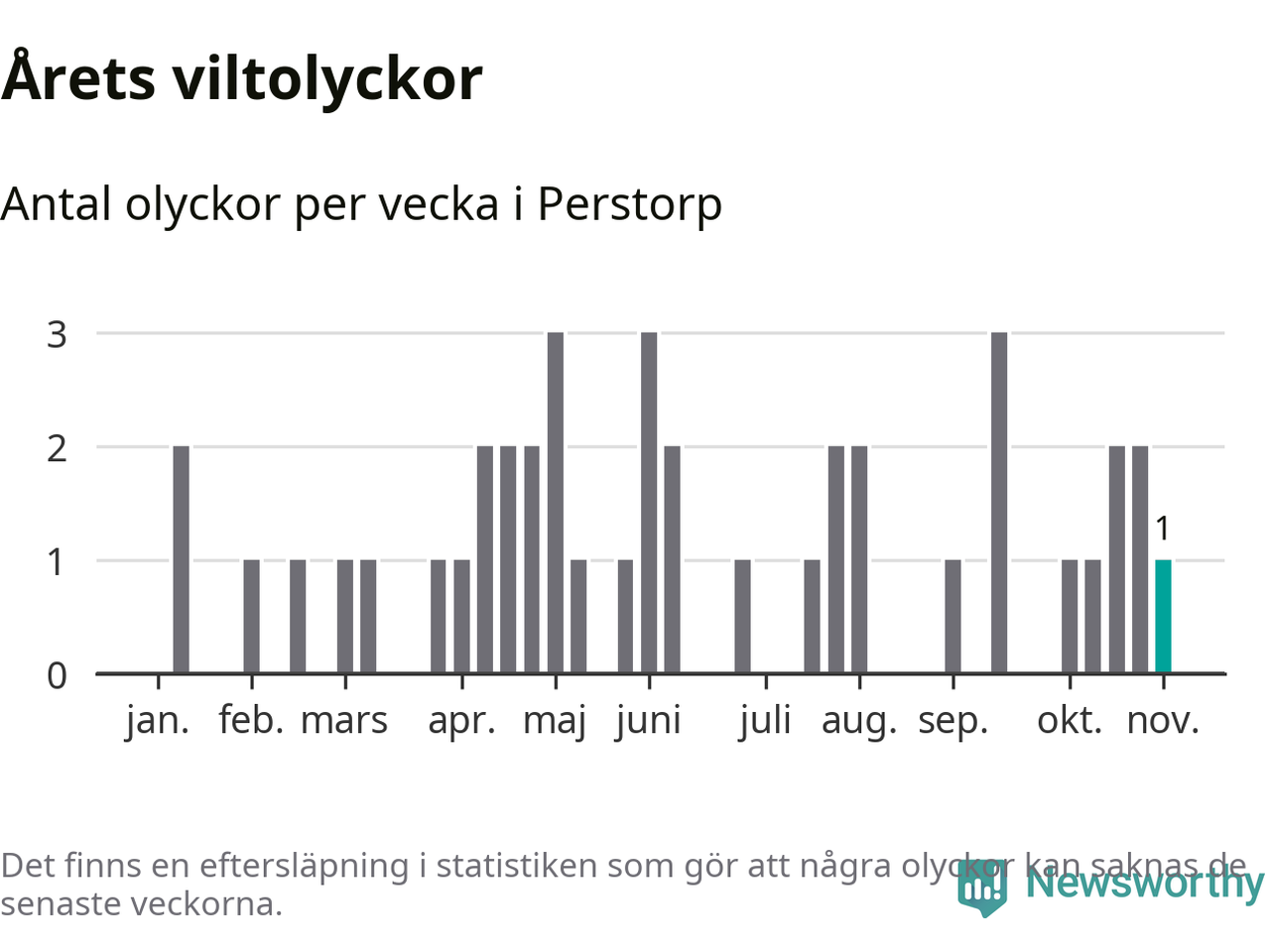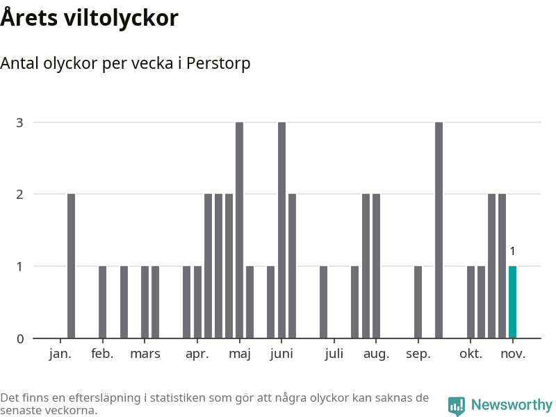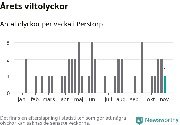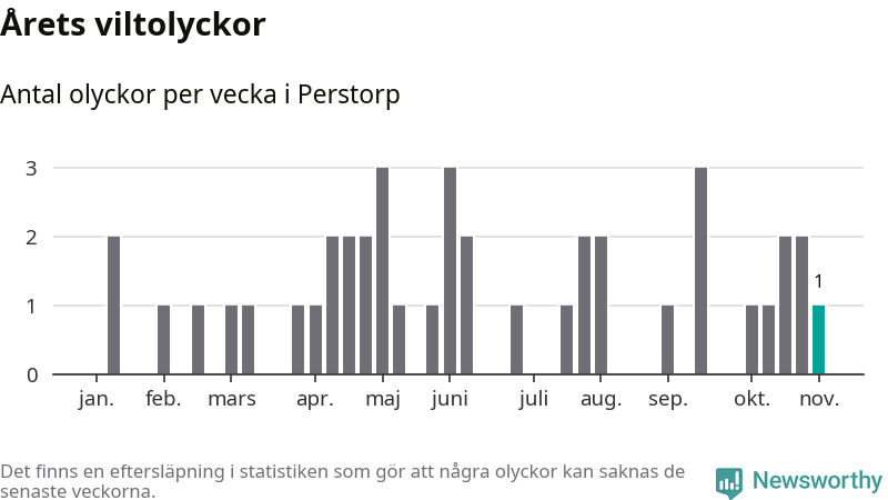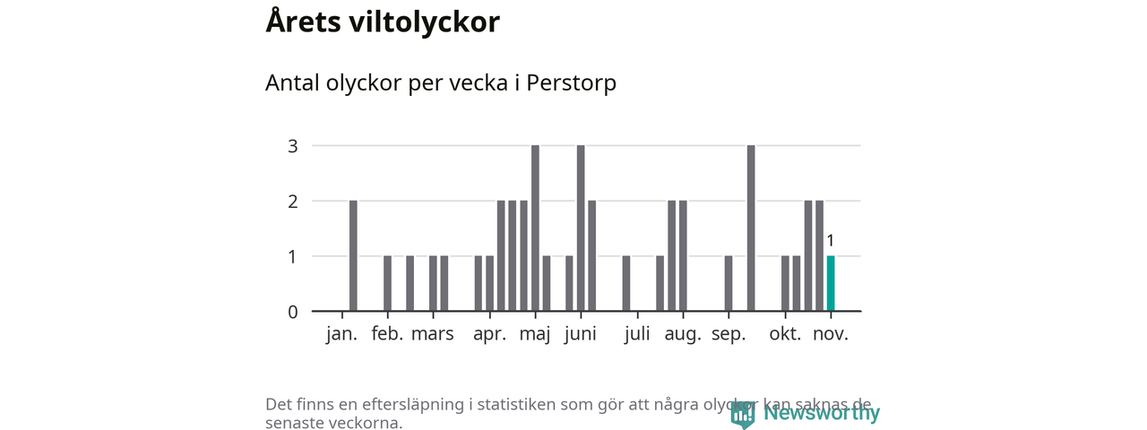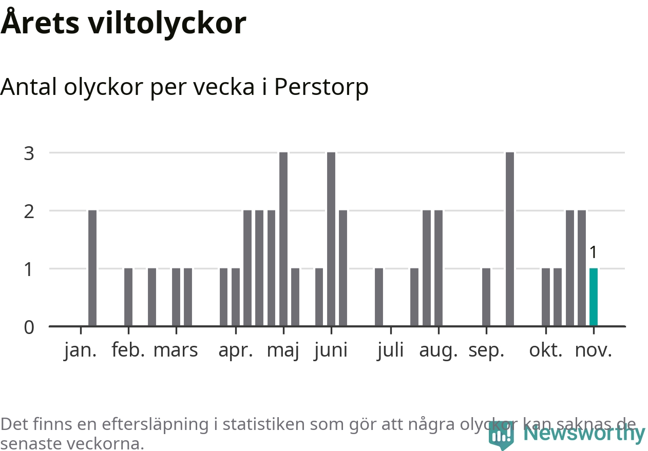 Från förra veckan (vecka 45) har hittills en viltolycka rapporterats in i Perstorps kommun.