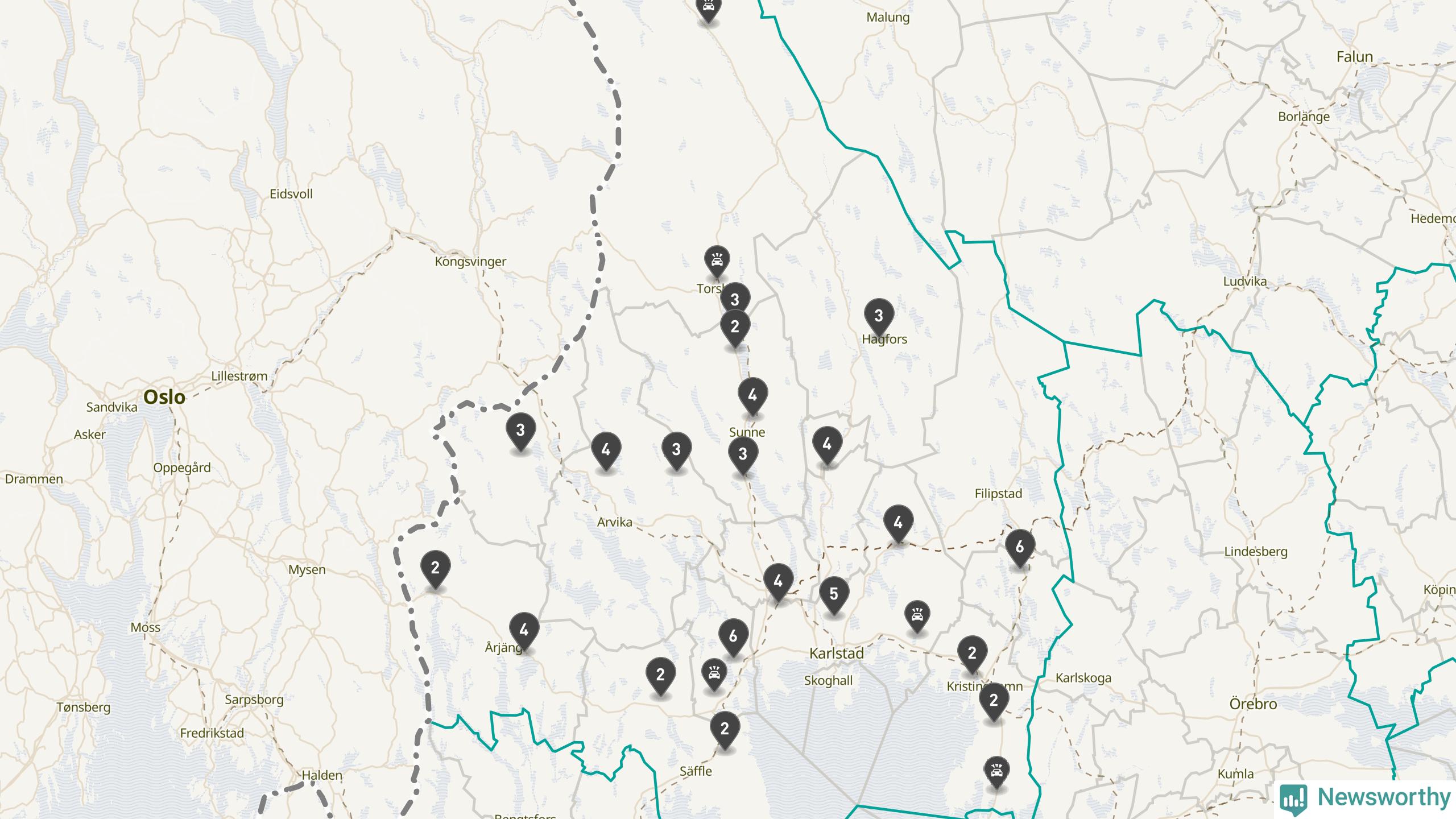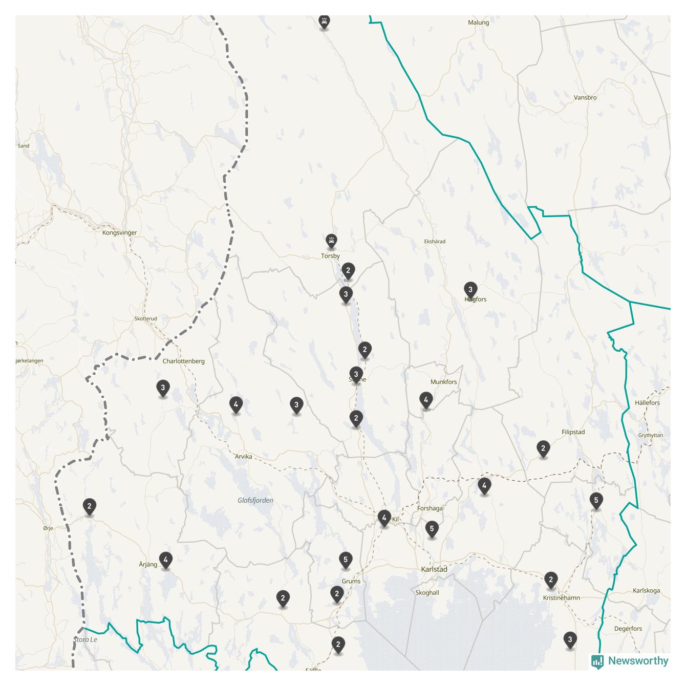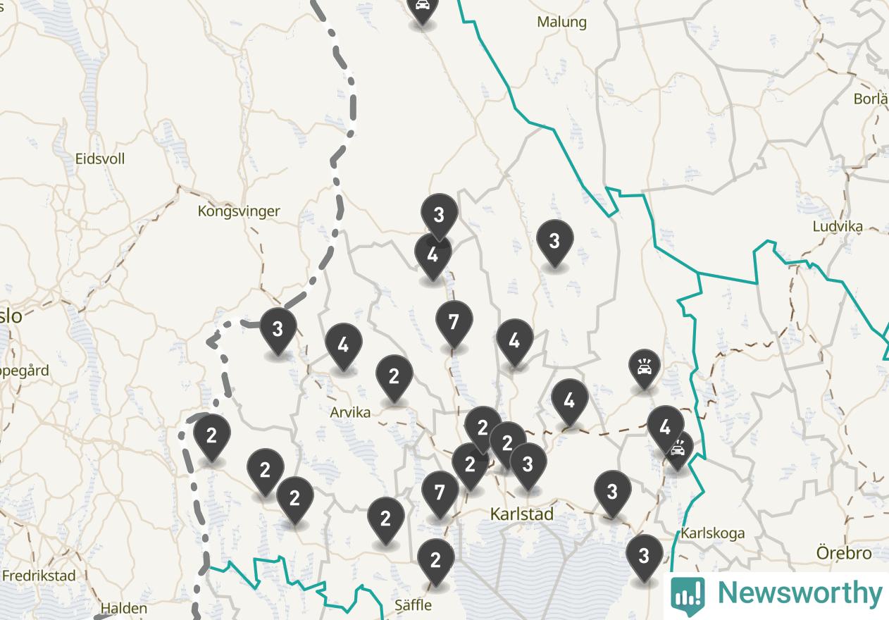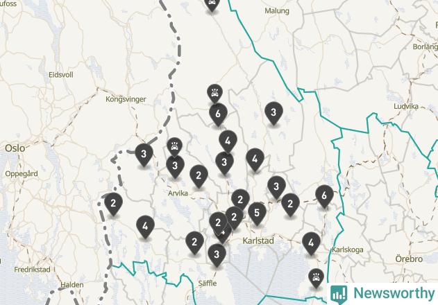 Karta över viltolyckor i Värmlands län