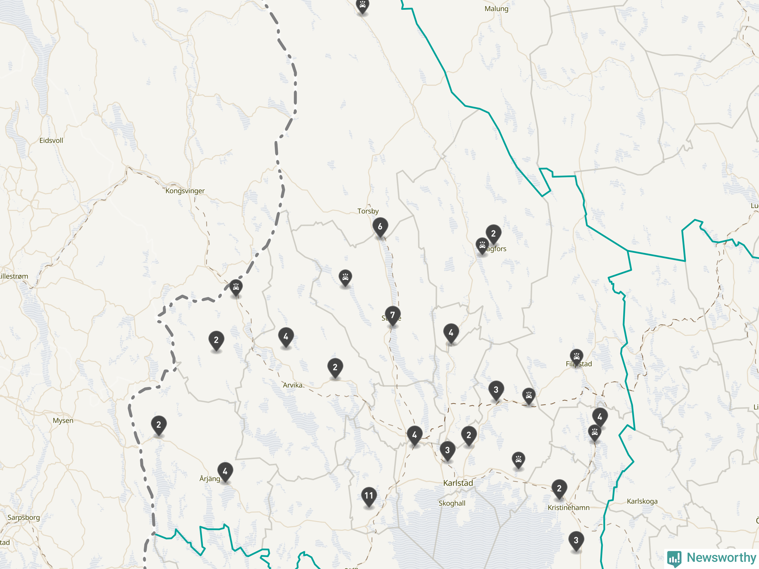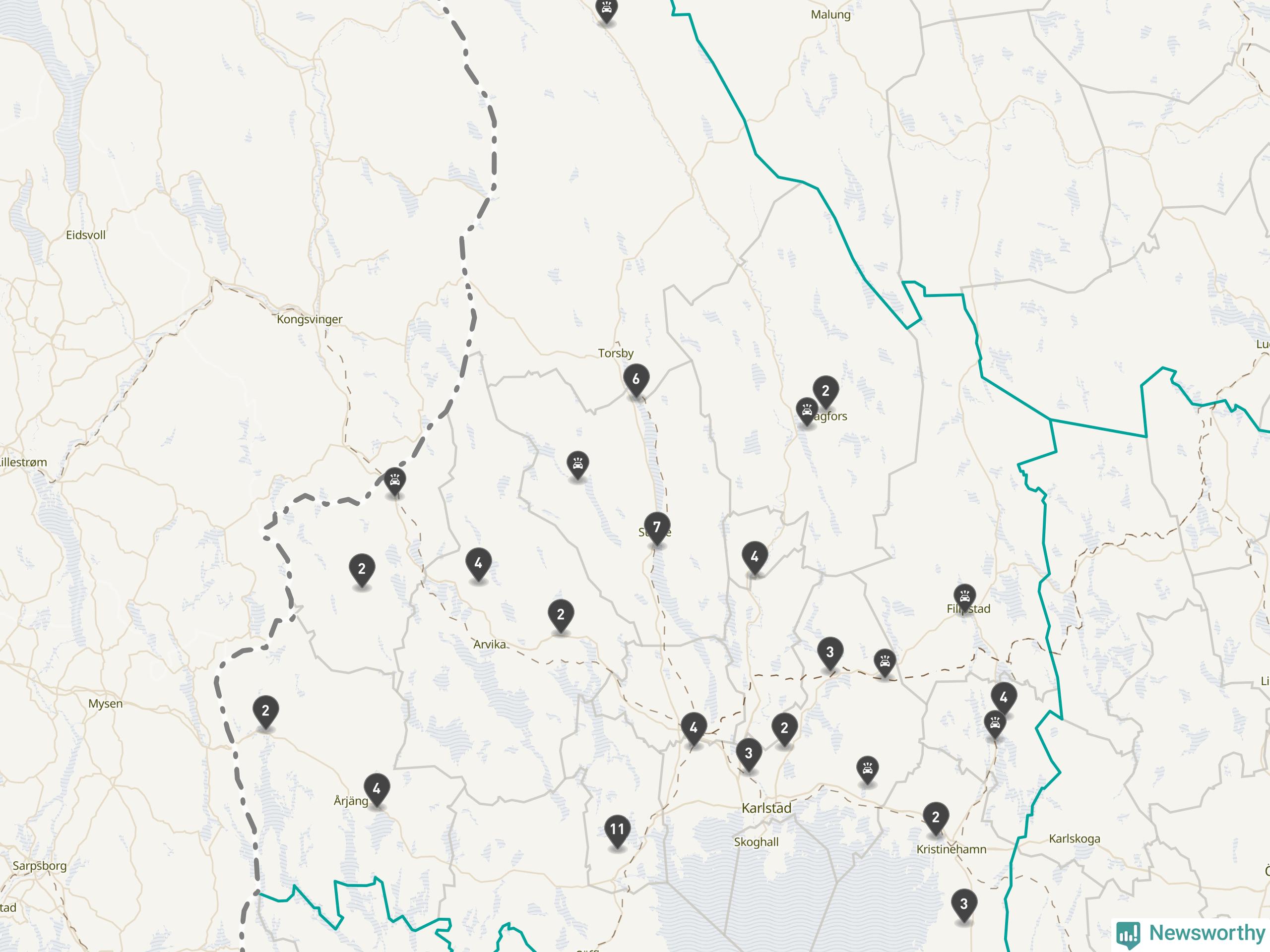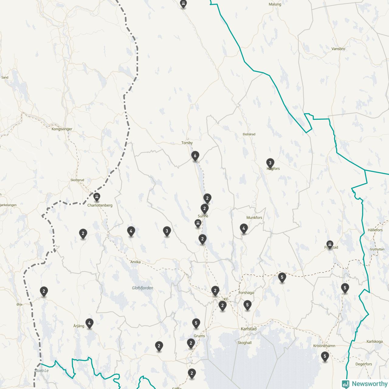 Karta över viltolyckor i Värmlands län