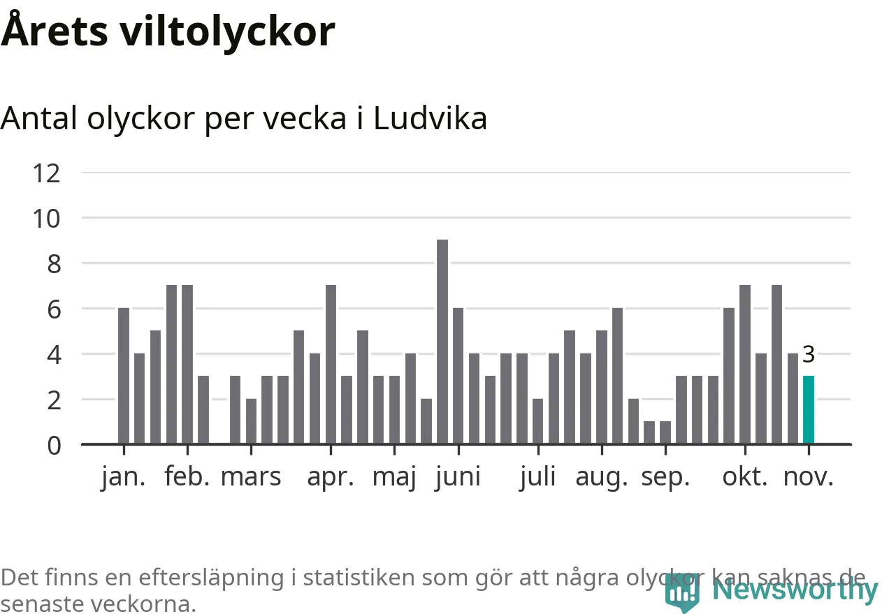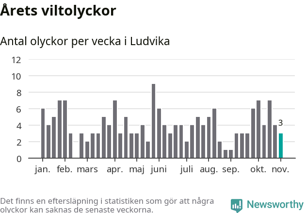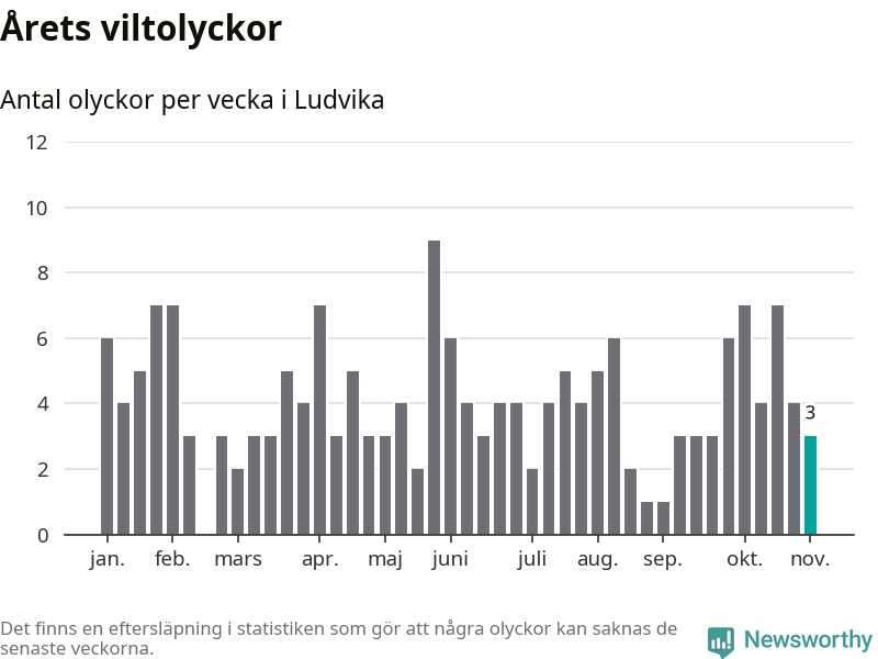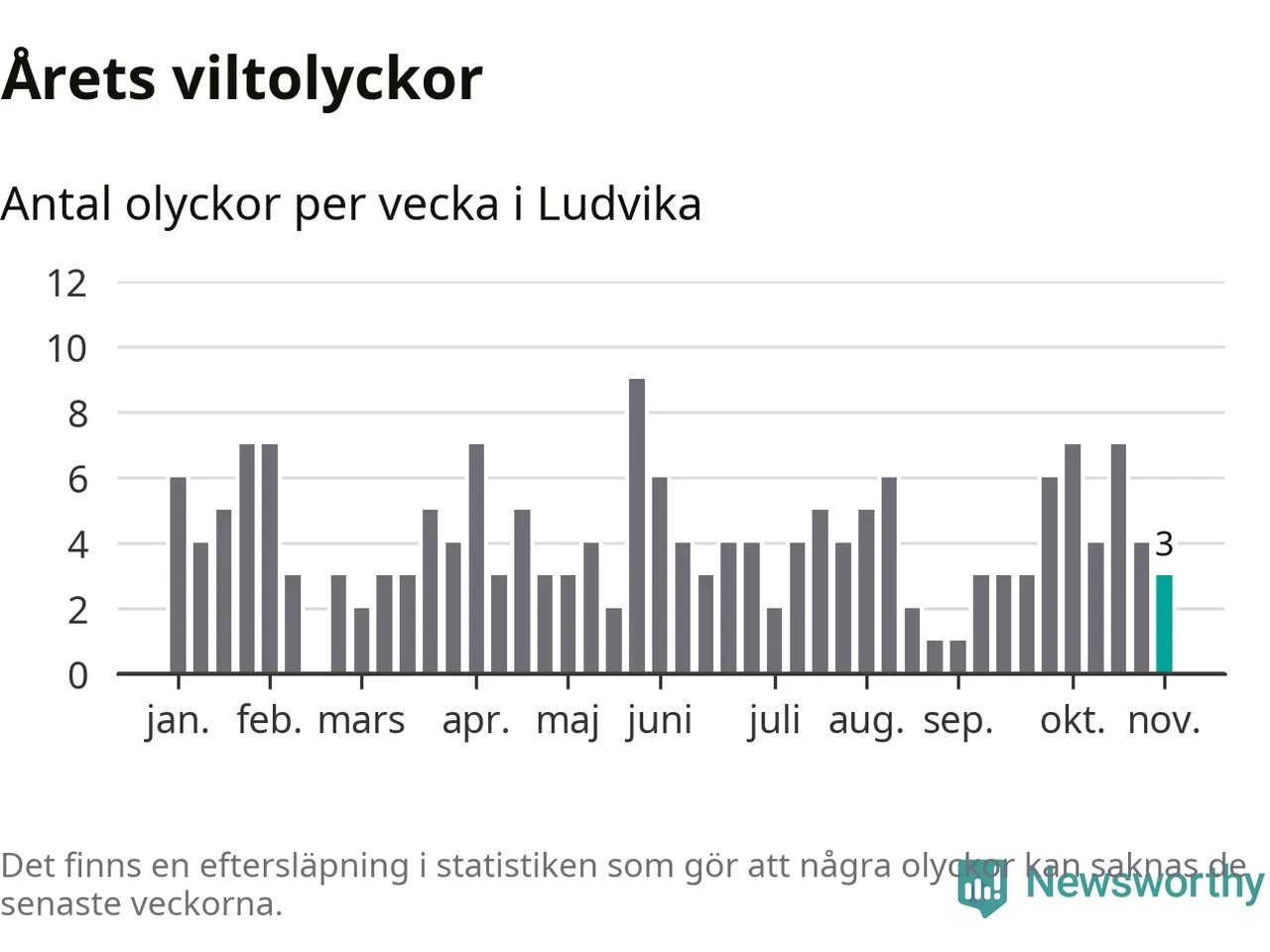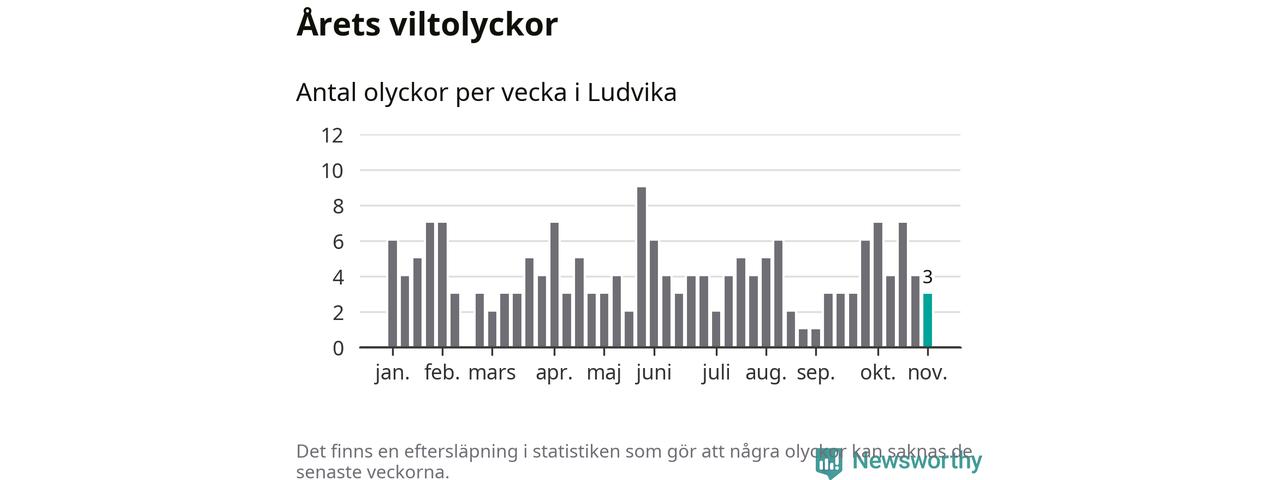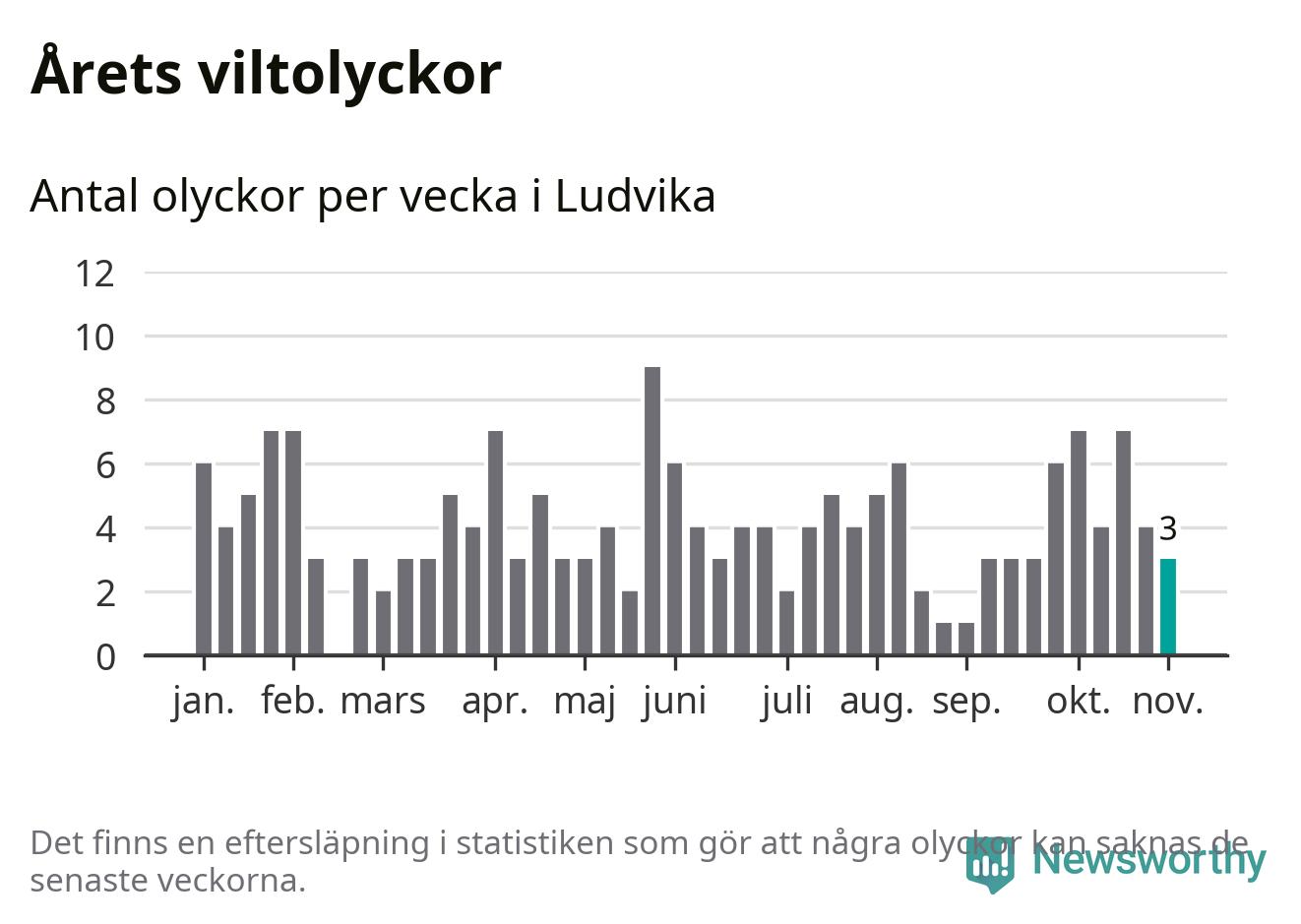 Hittills har tre viltolyckor rapporterats in i Ludvika kommun från vecka 45. Se listan här.