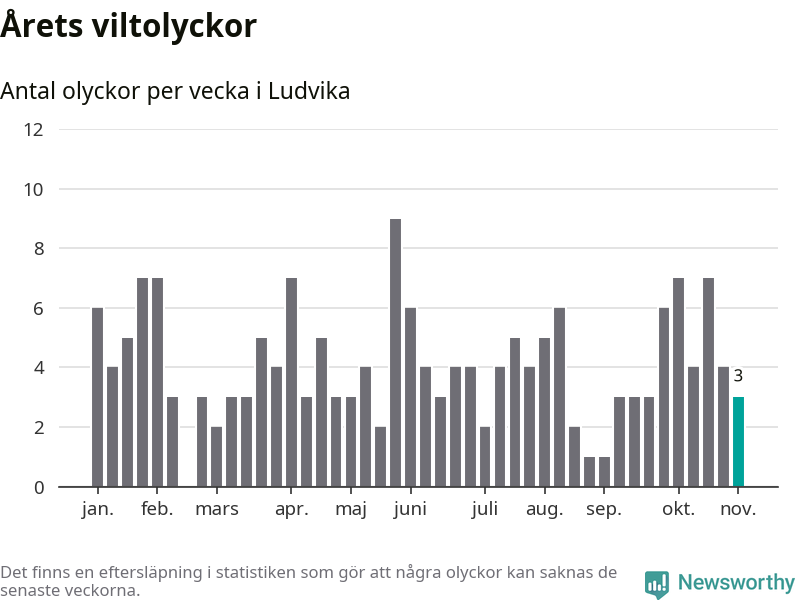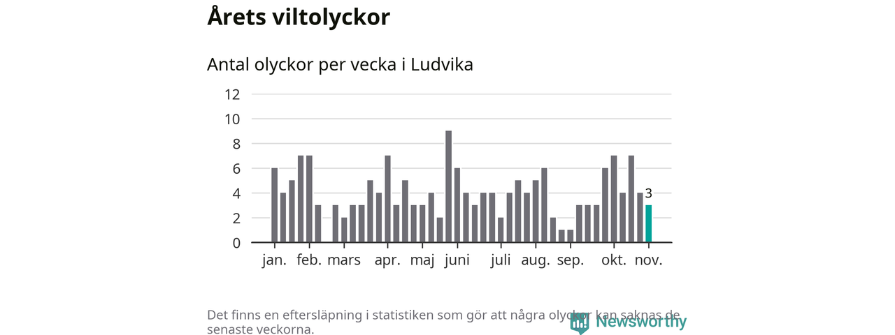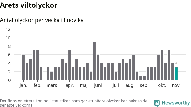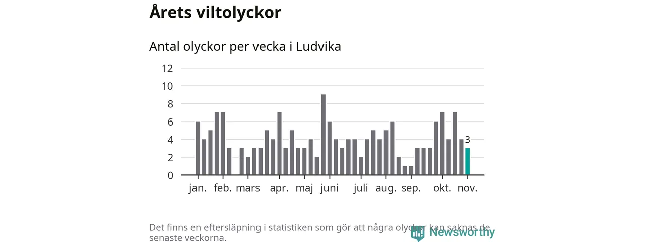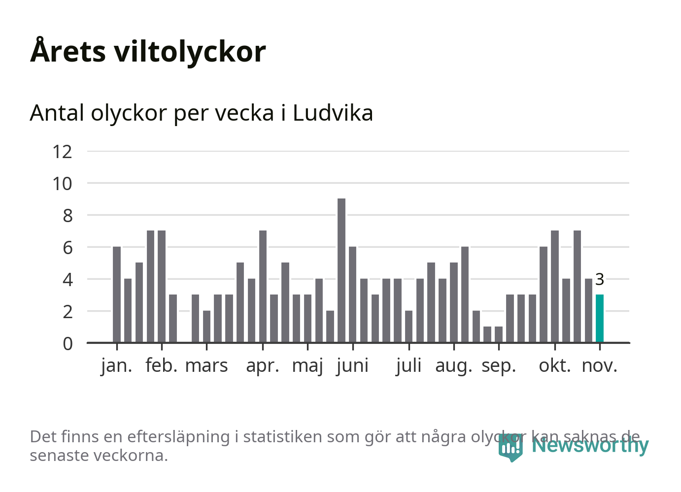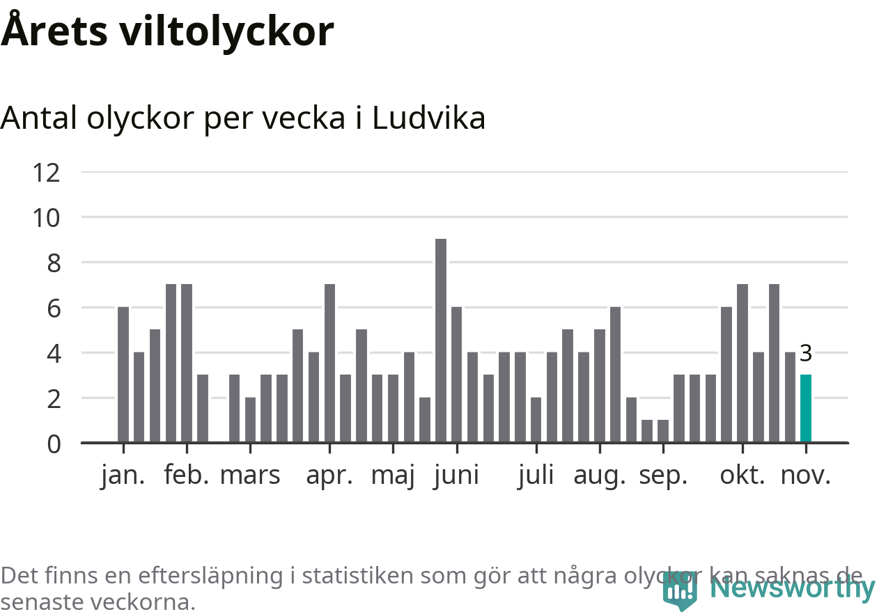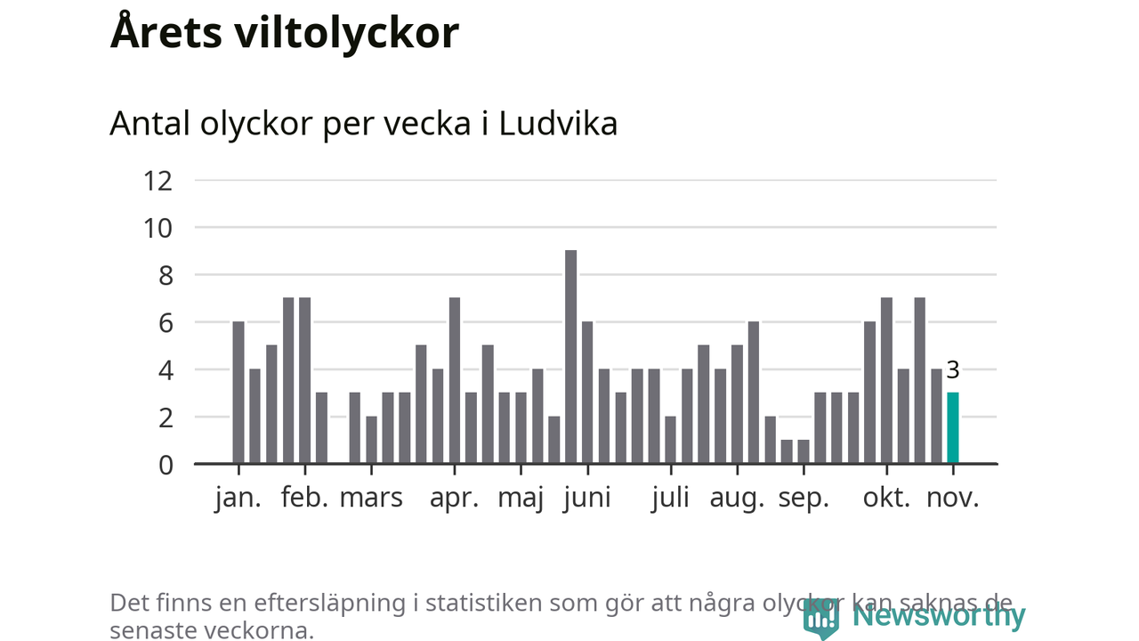 Hittills har tre viltolyckor rapporterats in i Ludvika kommun från vecka 45. Se listan här.