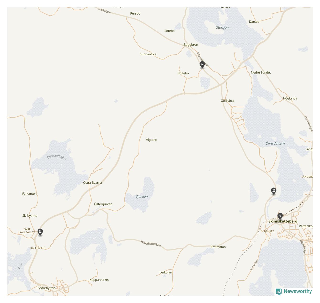 Karta: Förra veckans viltolyckor i Skinnskatteberg