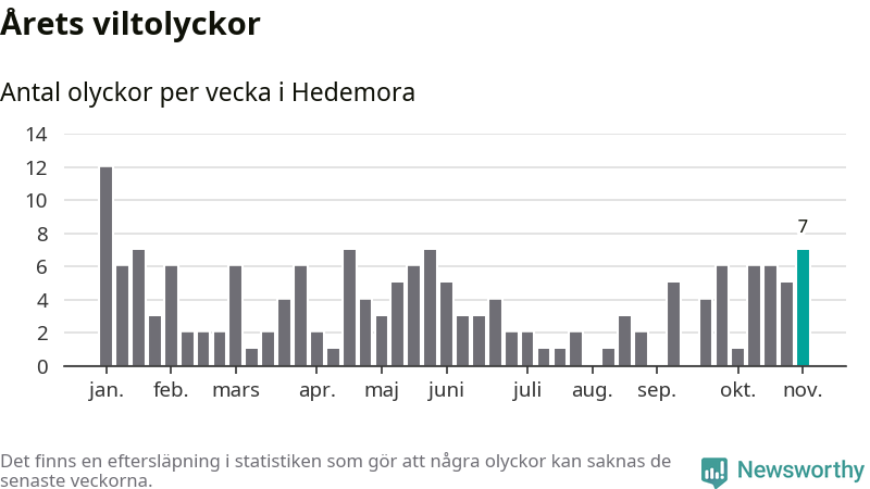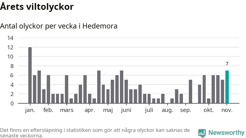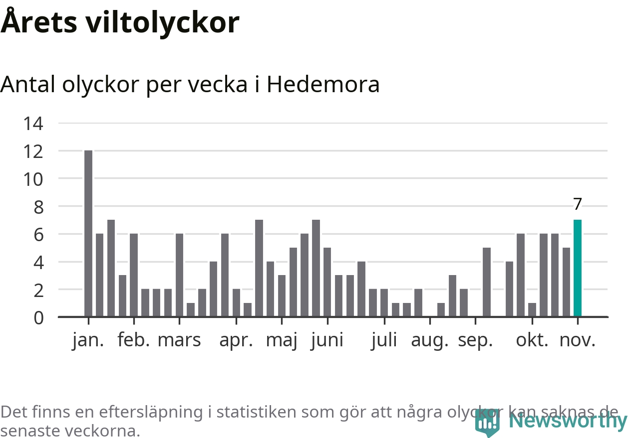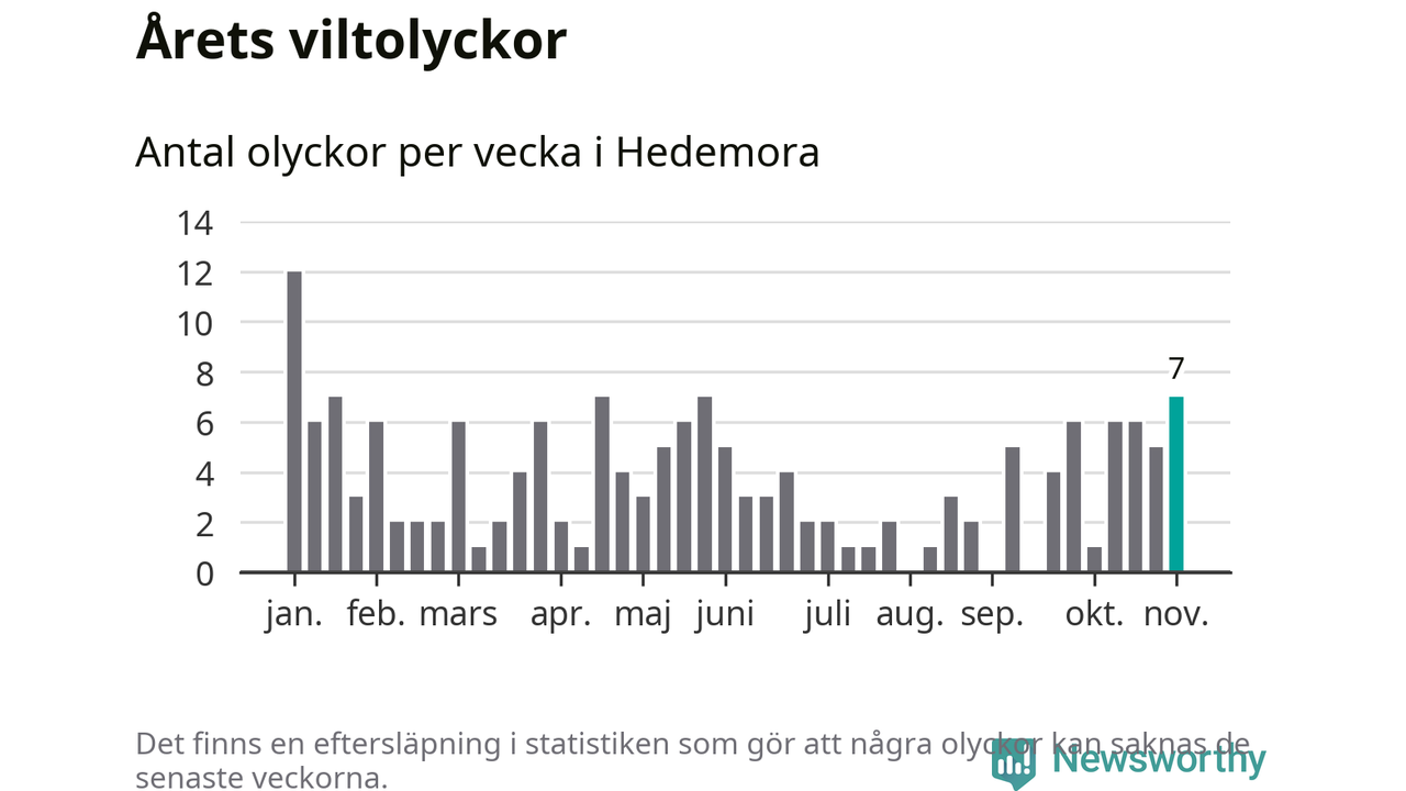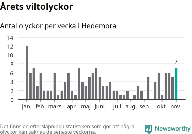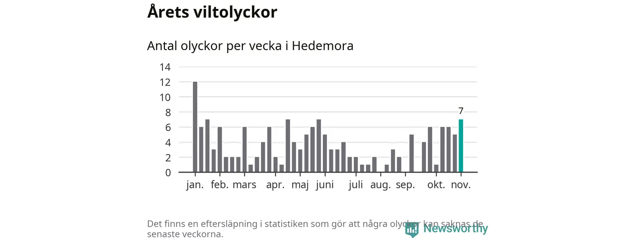 Hittills har sju viltolyckor rapporterats in i Hedemora kommun från vecka 45. Se listan här.
