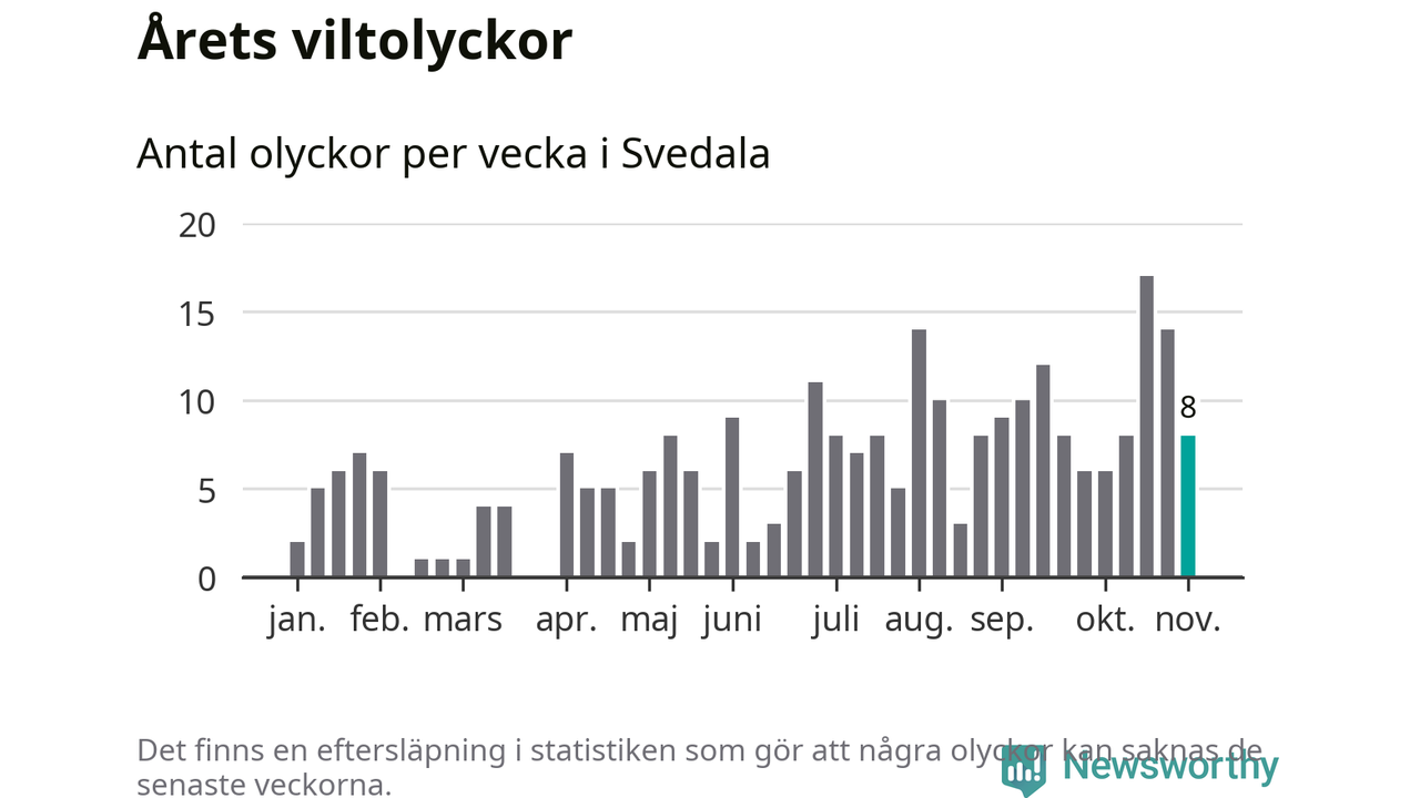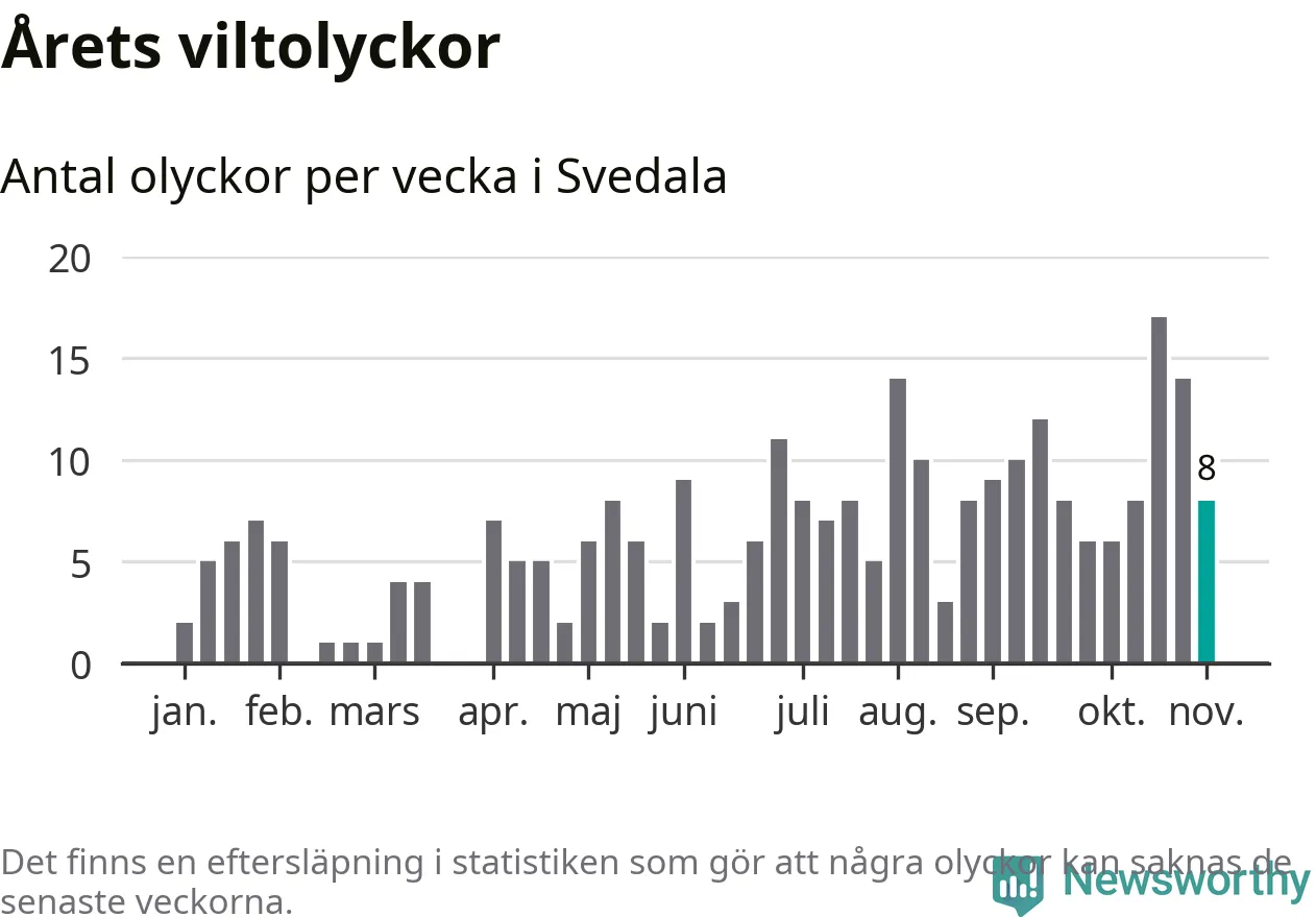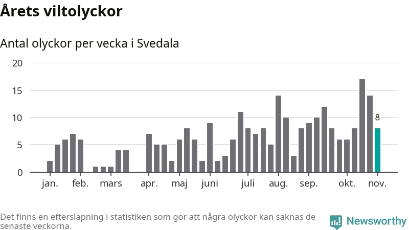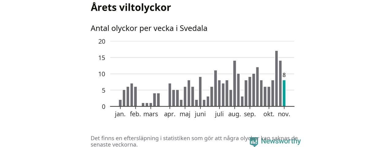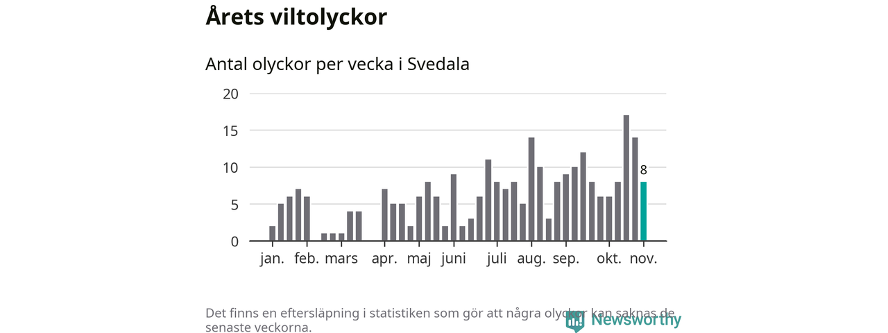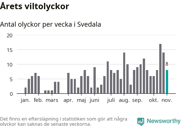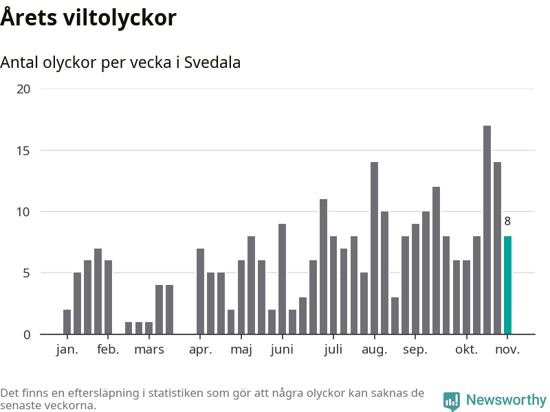 Hittills har åtta viltolyckor rapporterats in i Svedala kommun från vecka 45. Se listan här.