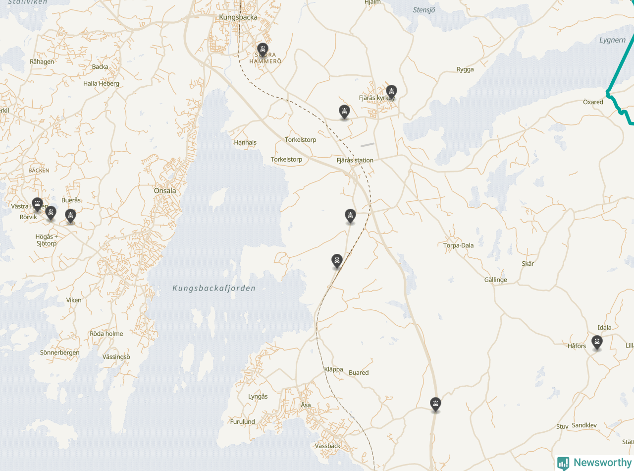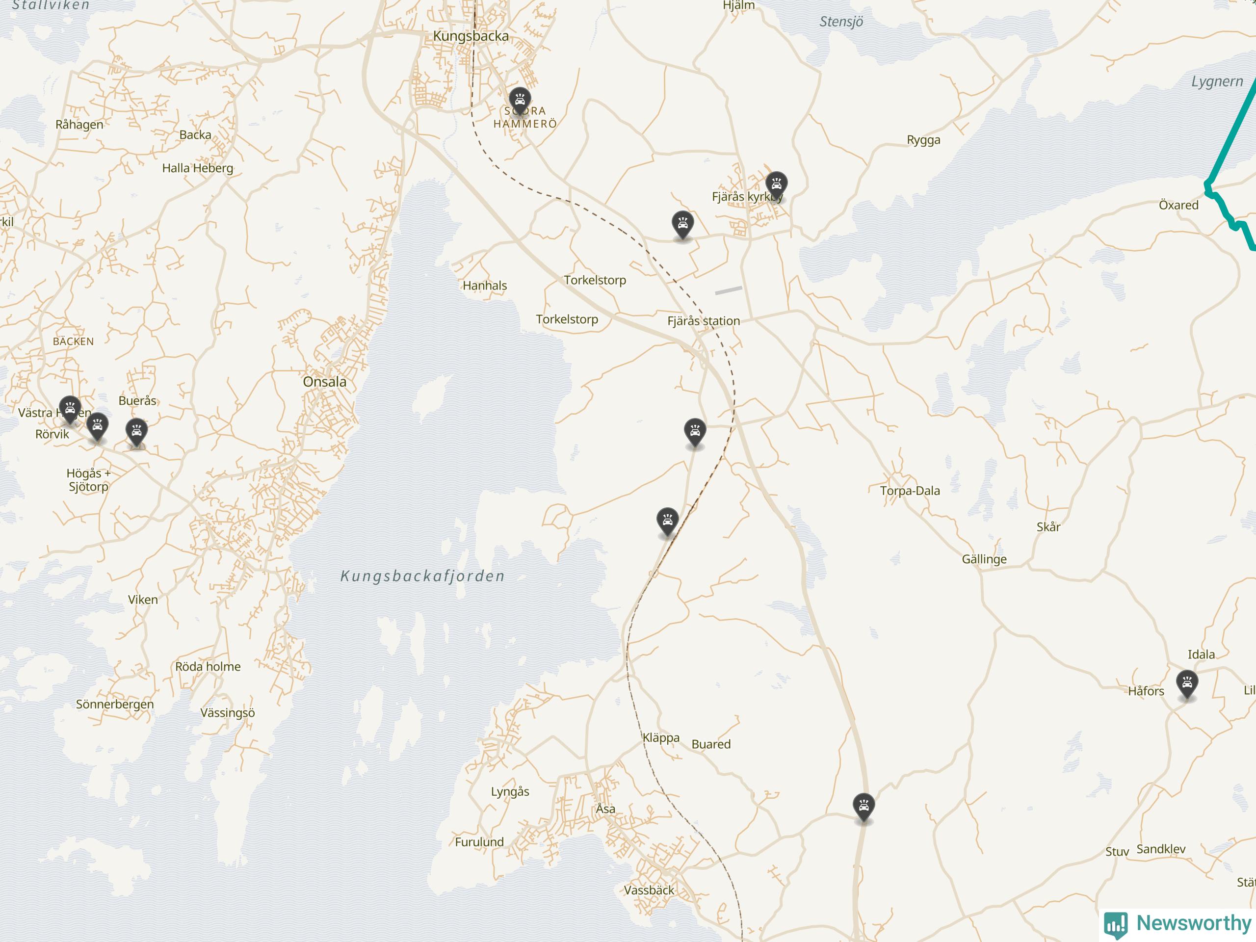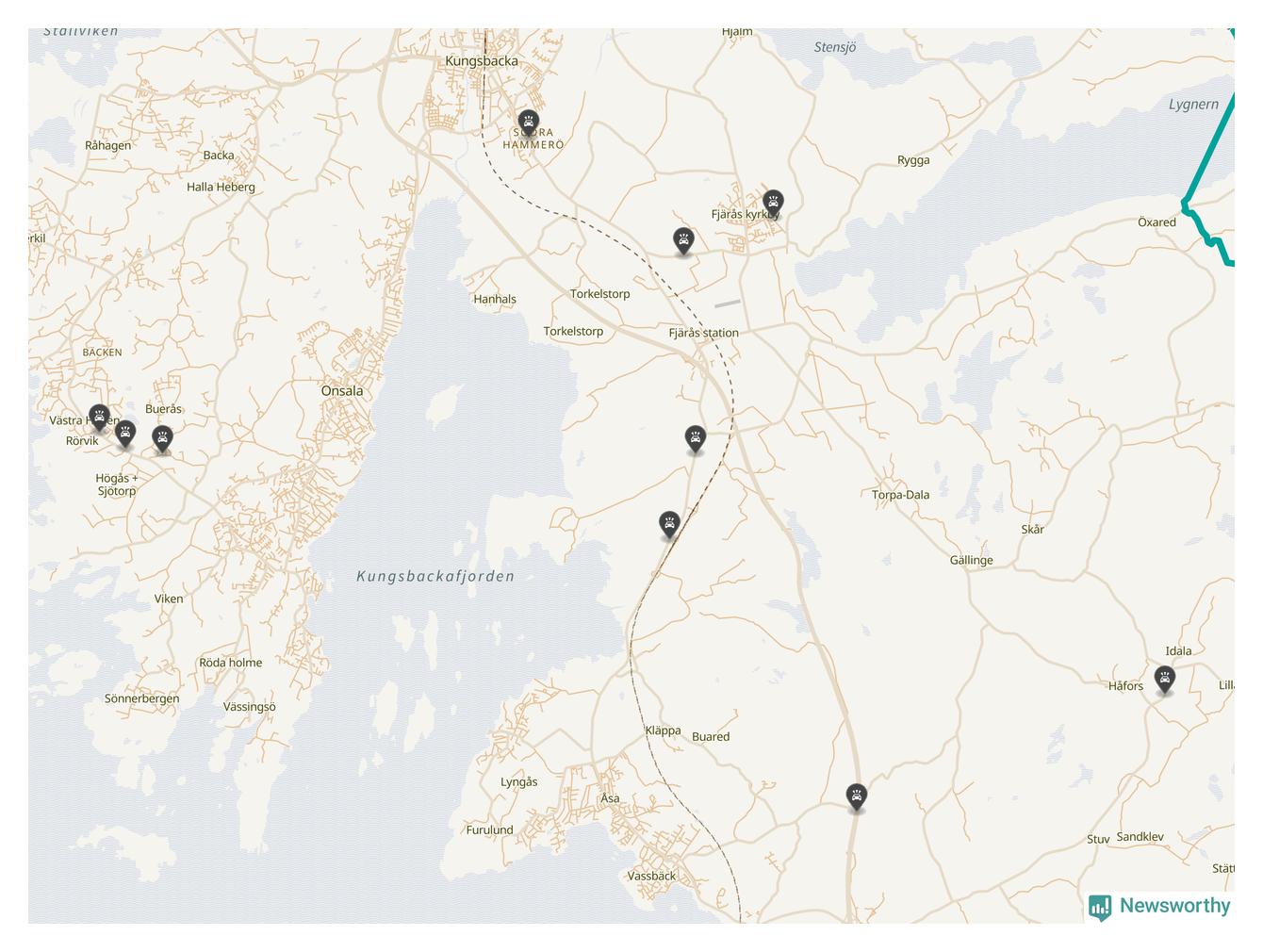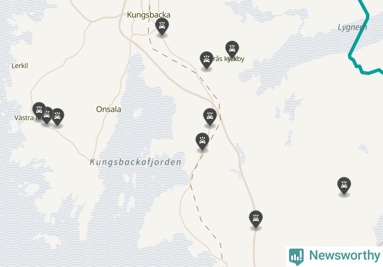 Karta: Förra veckans viltolyckor i Kungsbacka