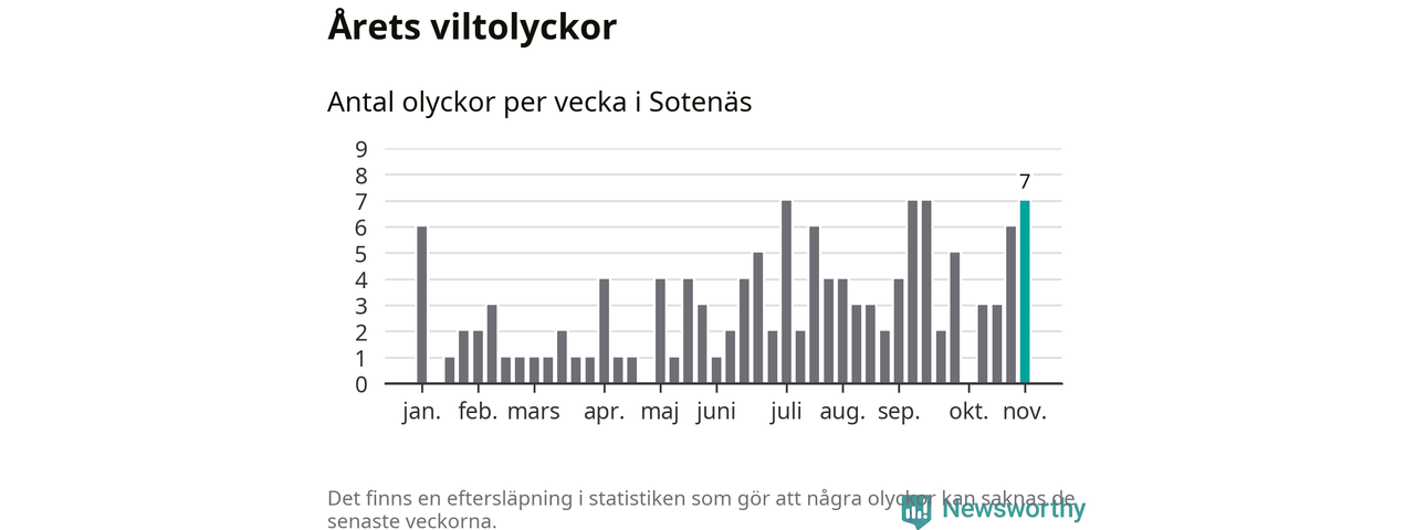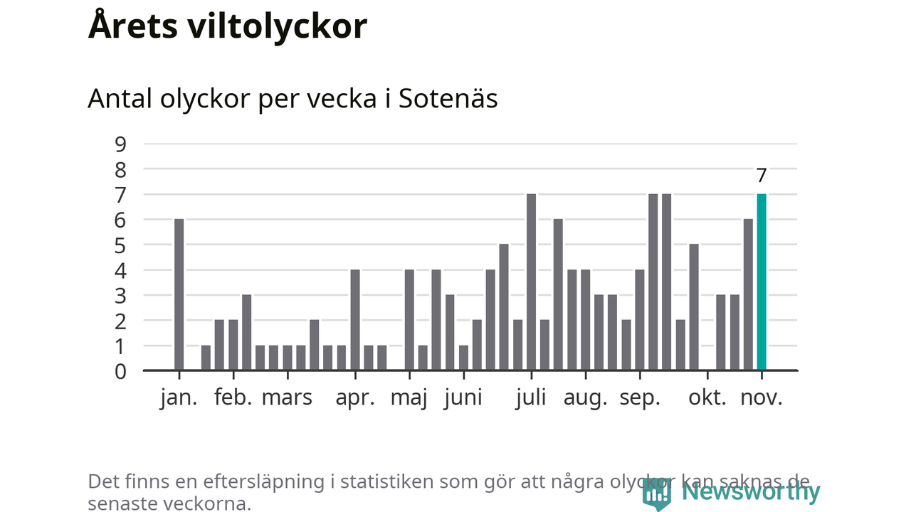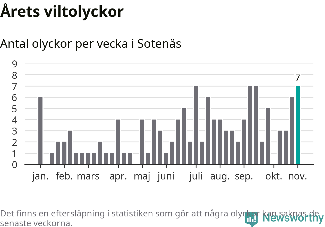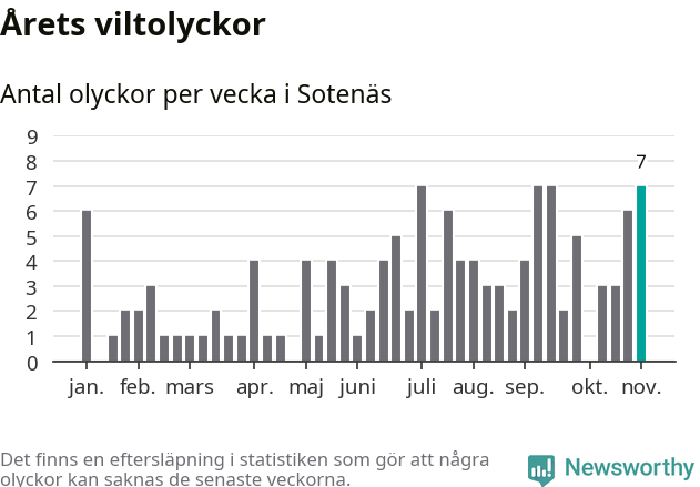 Sju olyckor på en enda vecka är däremot ovanligt många. Bara sex gånger tidigare sedan 2015 har det skett så många viltolyckor på en vecka i Sotenäs kommun.