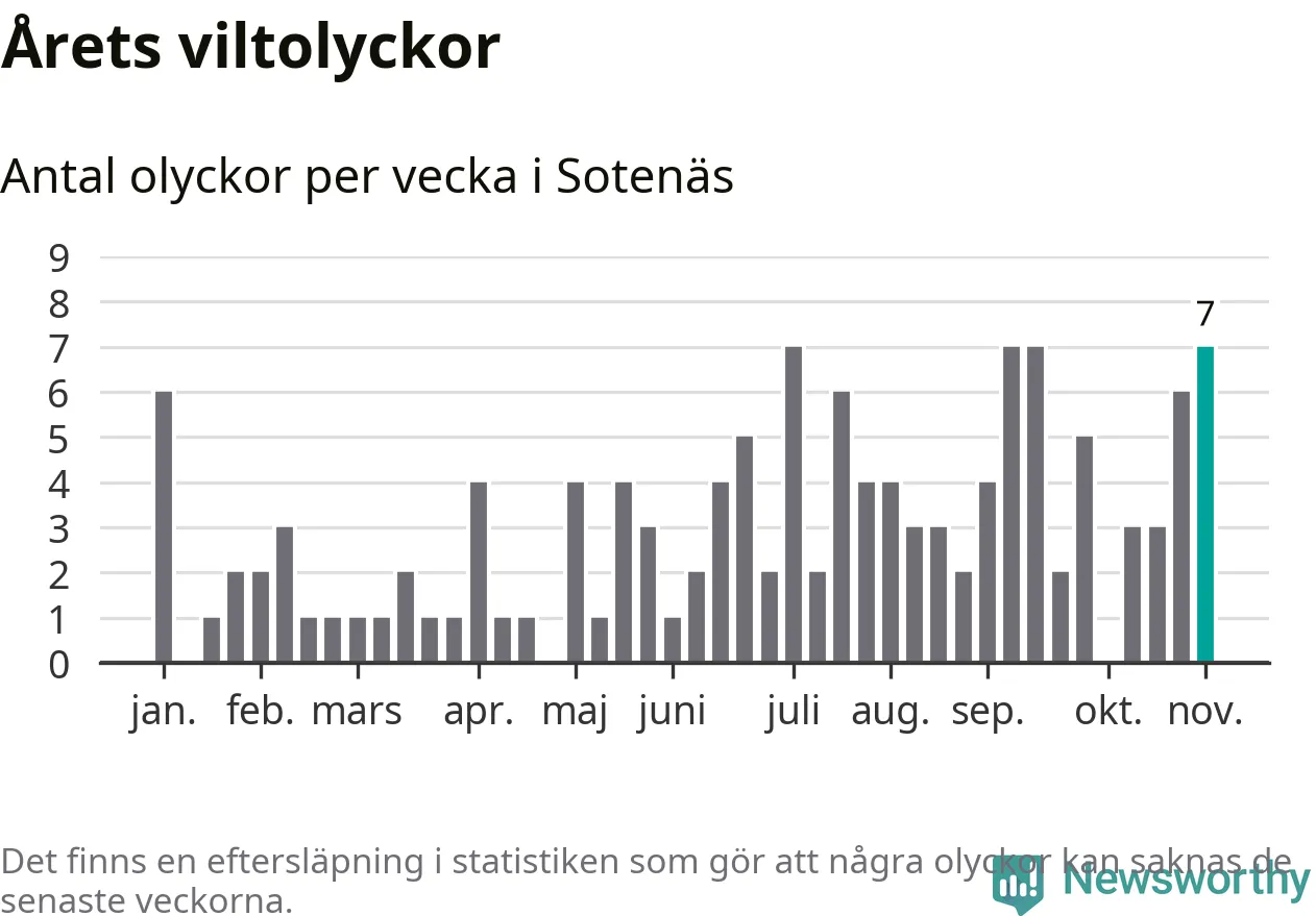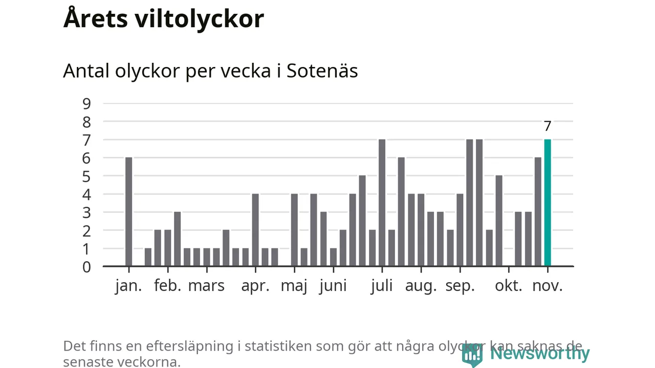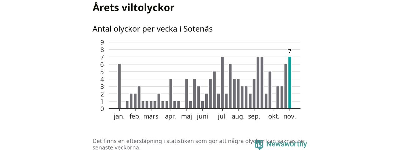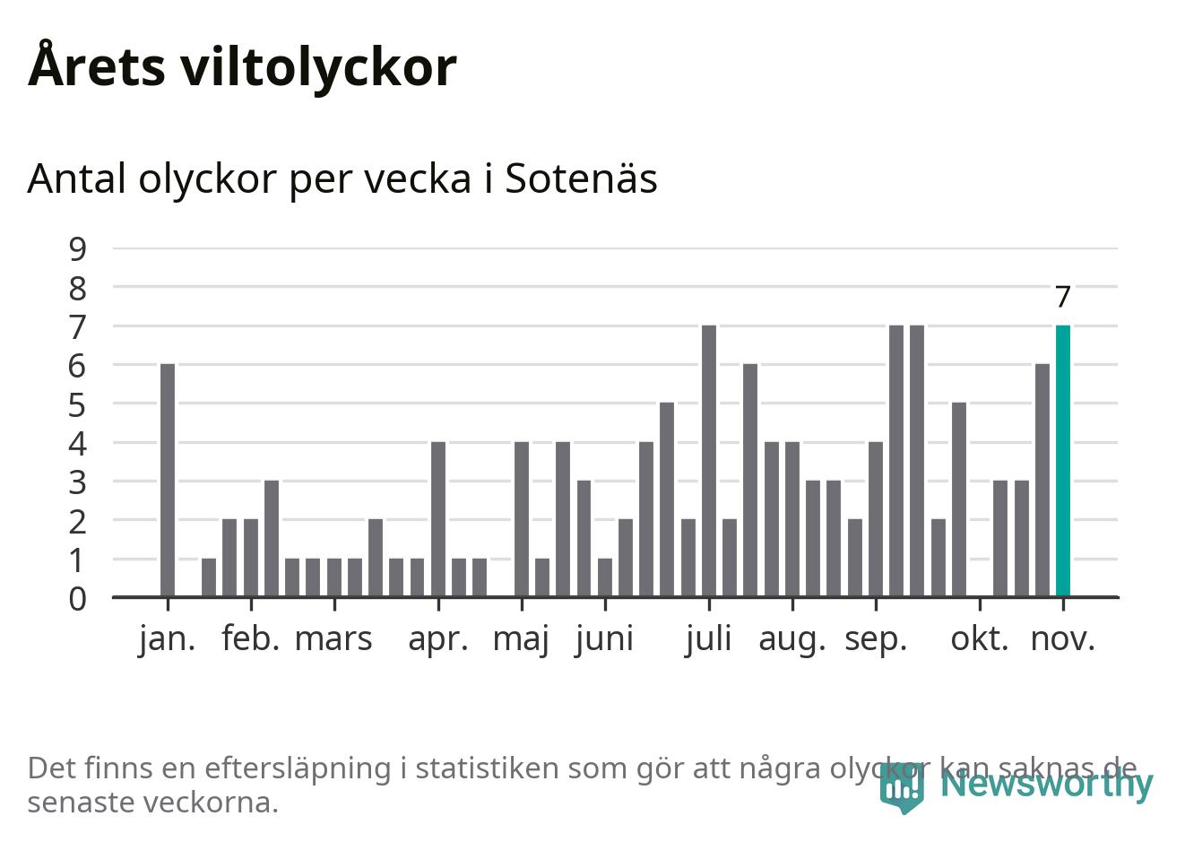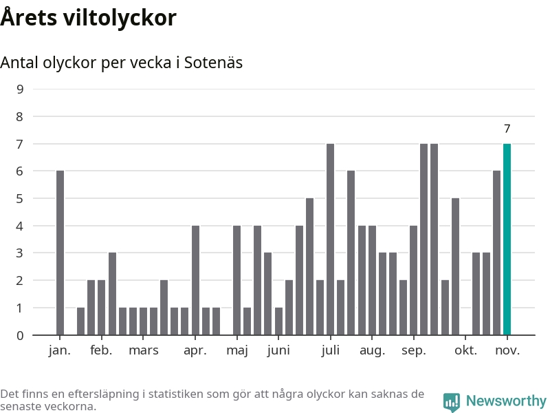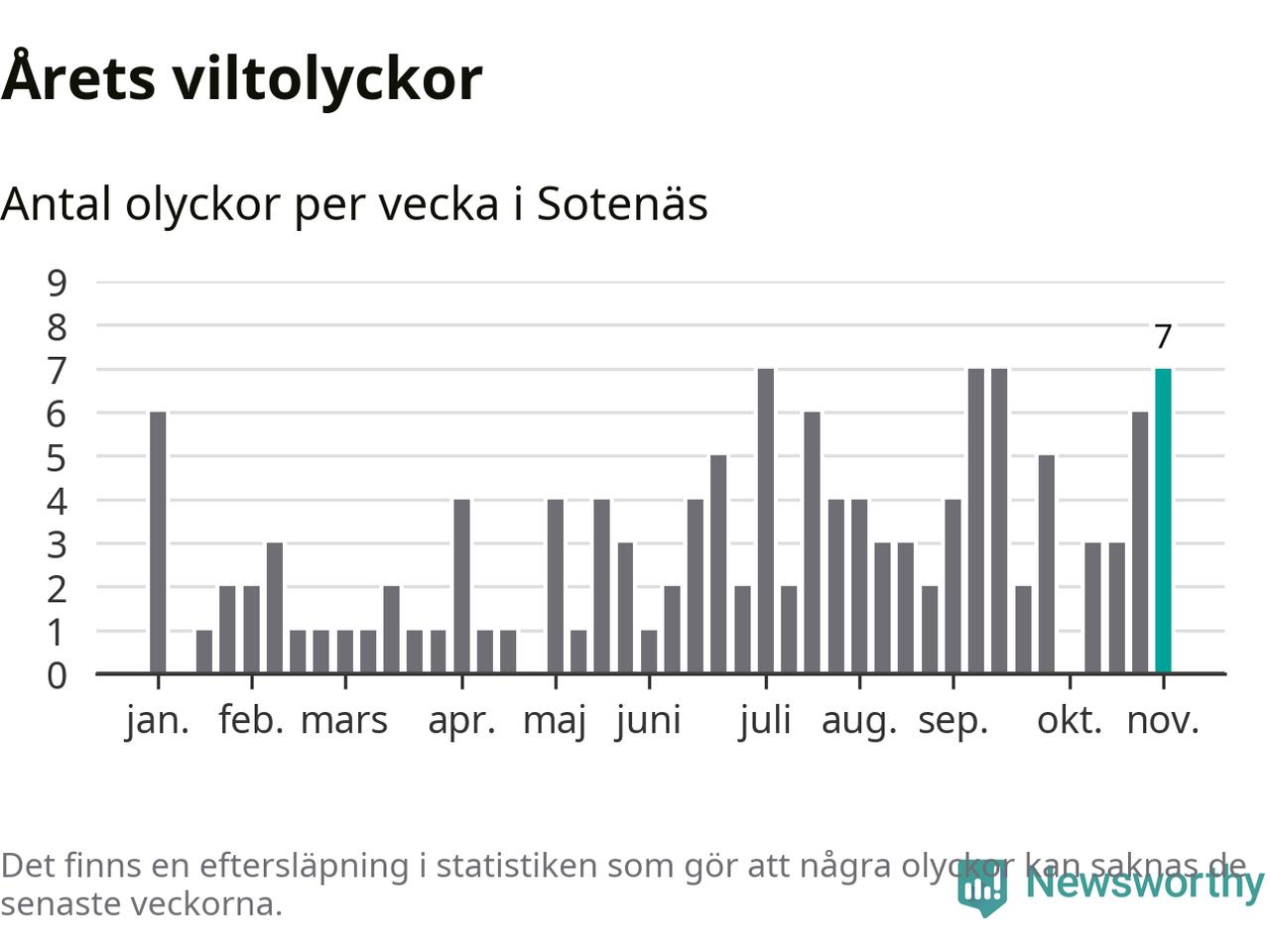 Hittills har sju viltolyckor rapporterats in i Sotenäs kommun från vecka 45. Det är en av de högsta siffrorna för en enskild vecka på över tio år.
