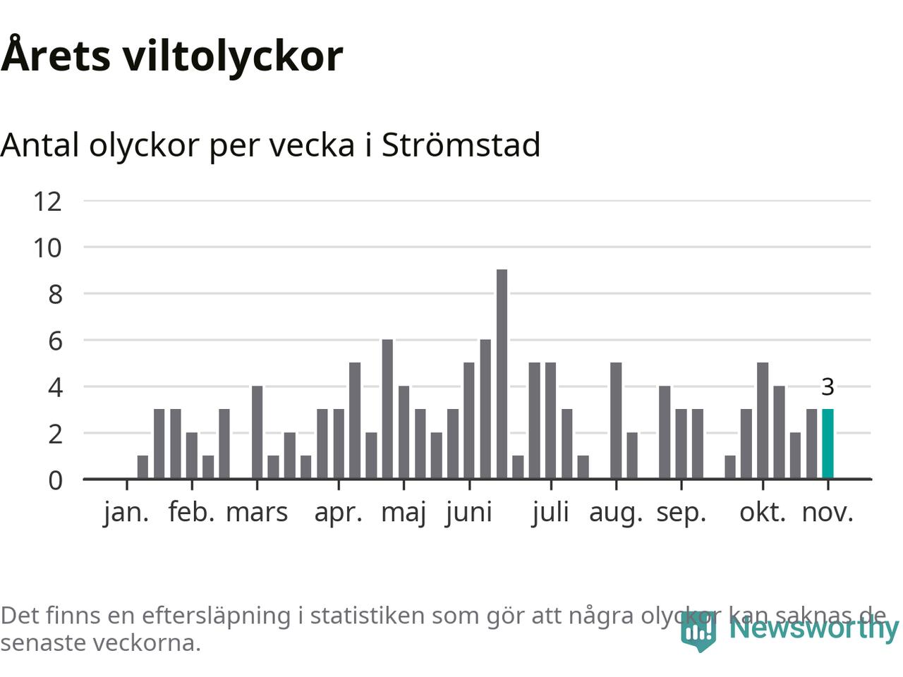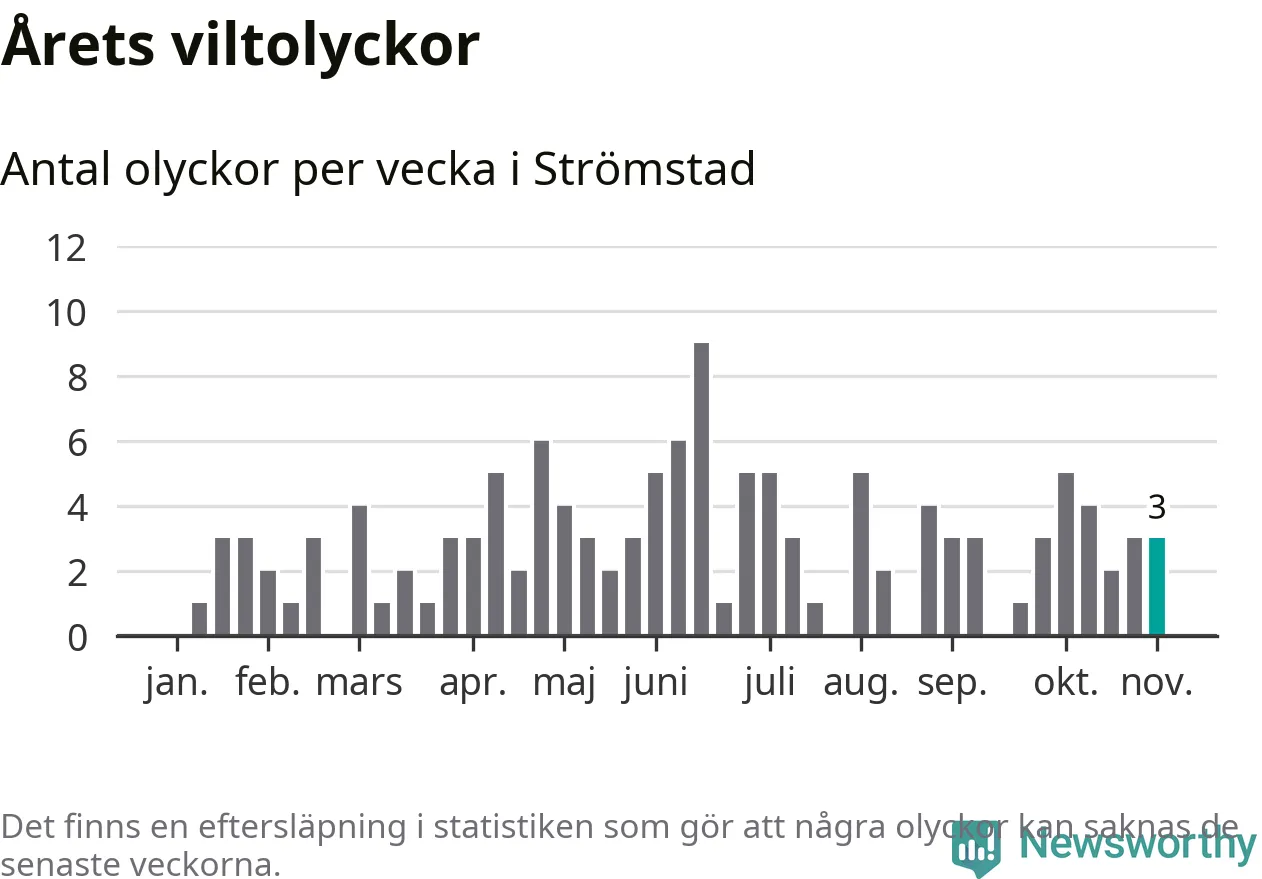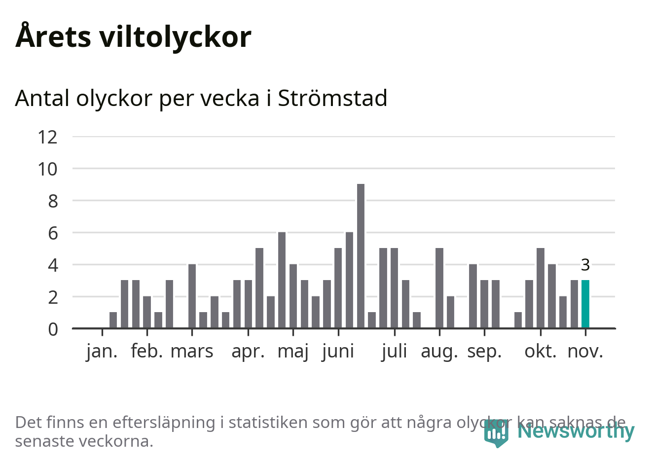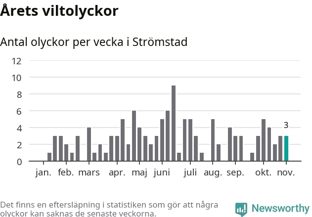 Hittills har tre viltolyckor rapporterats in i Strömstads kommun från vecka 45. Se listan här.