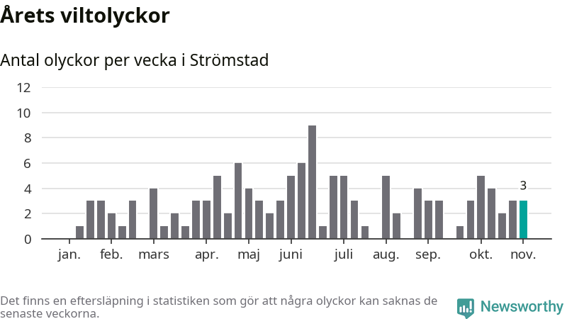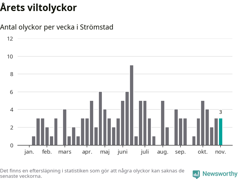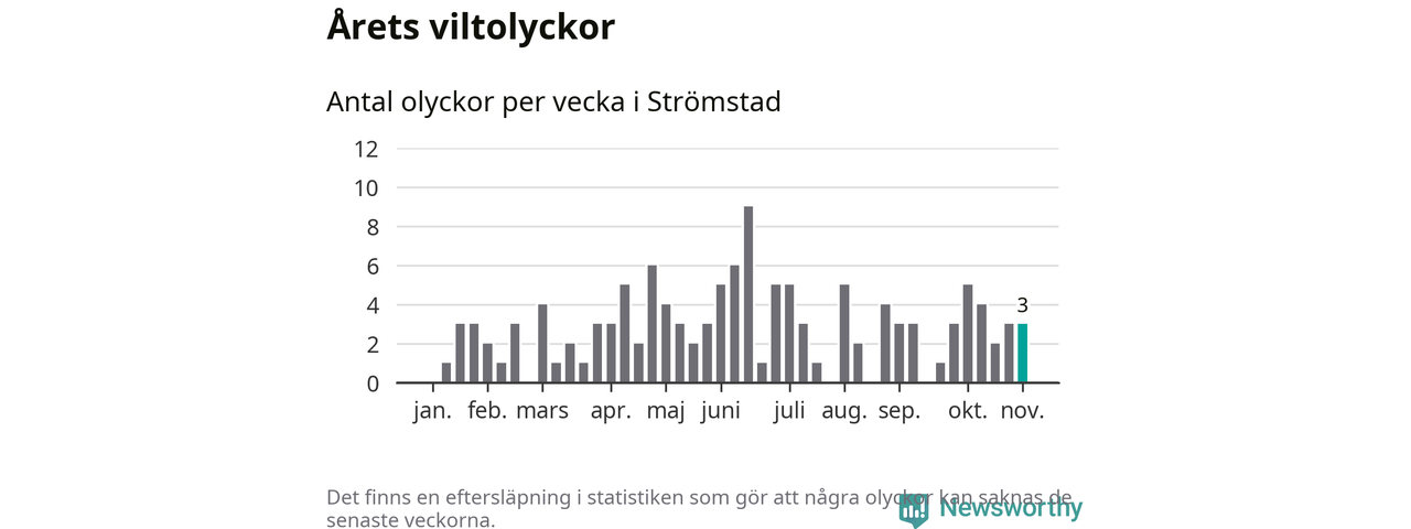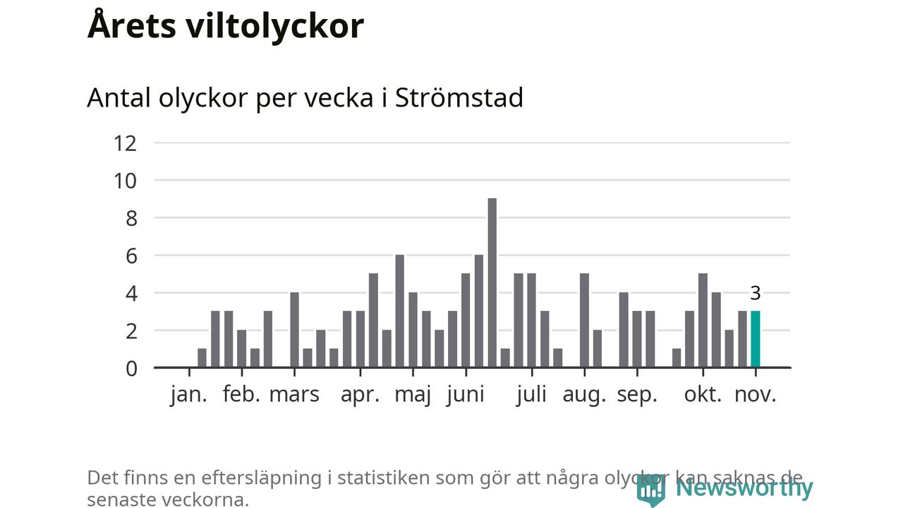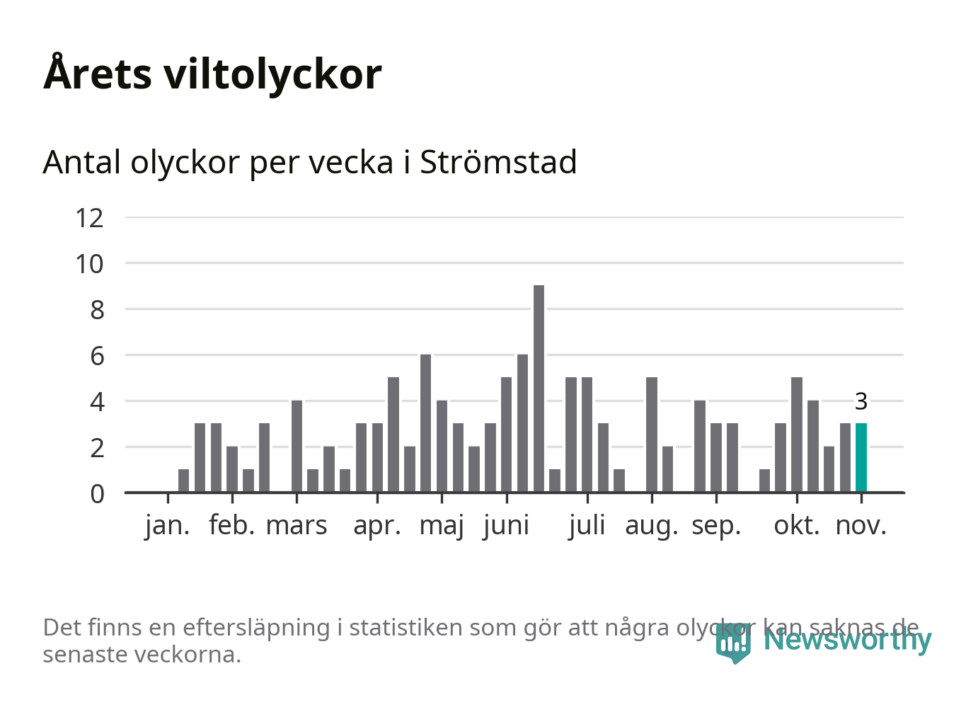 Hittills har tre viltolyckor rapporterats in i Strömstads kommun från vecka 45. Se listan här.