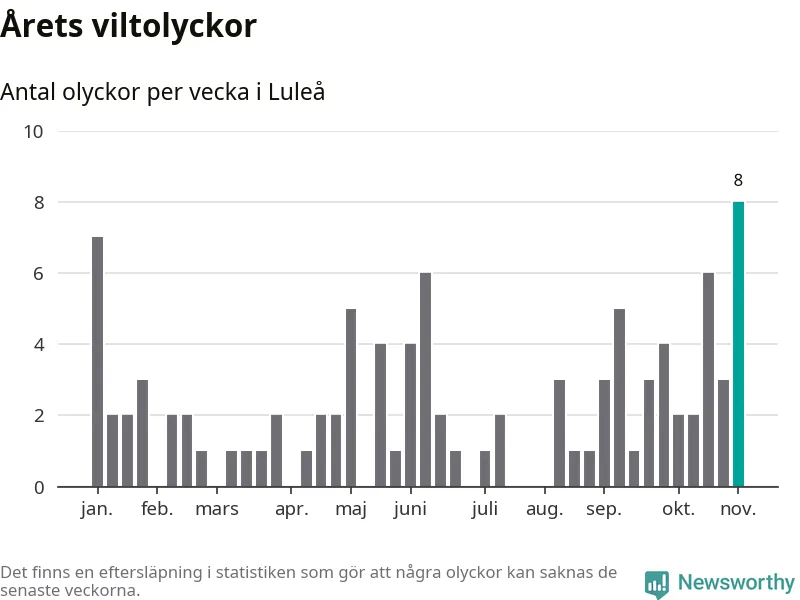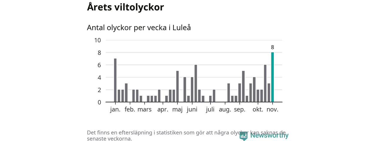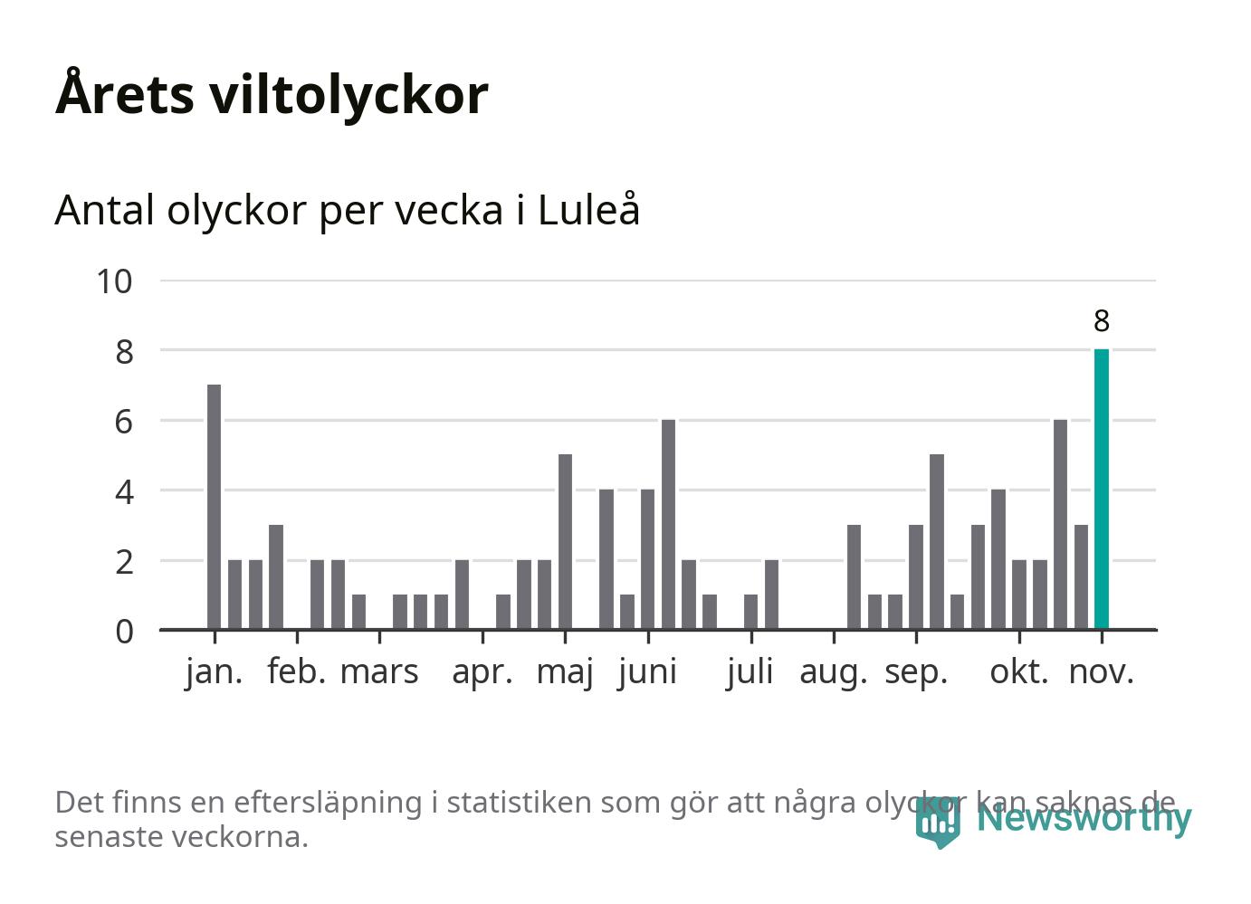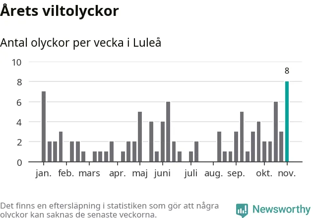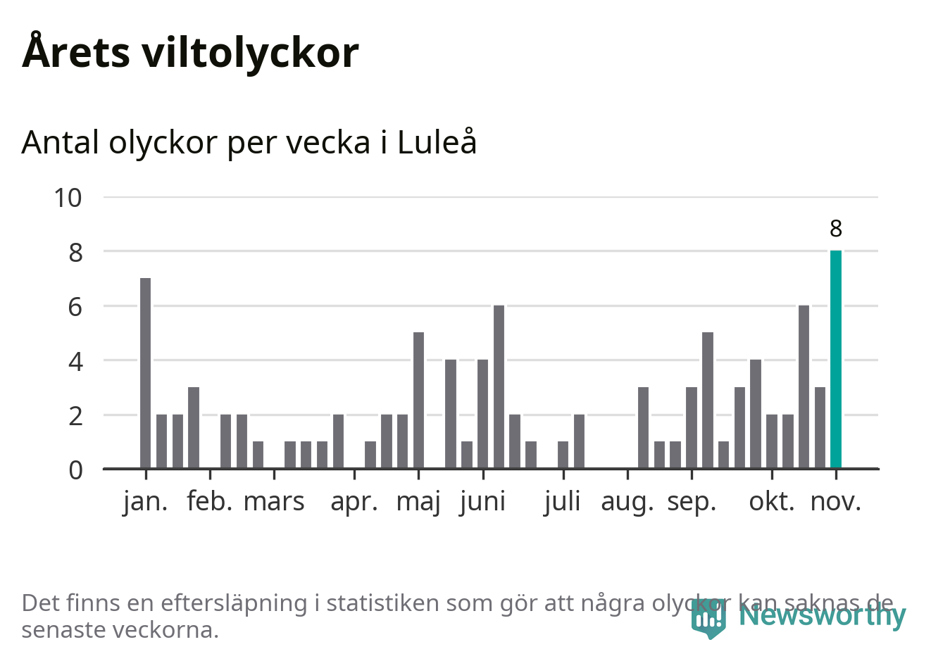 Under vecka 45 rapporterades åtta viltolyckor in i Luleå kommun.