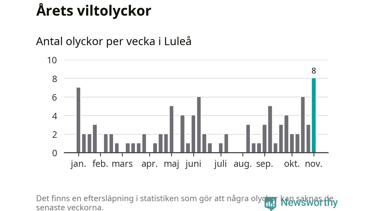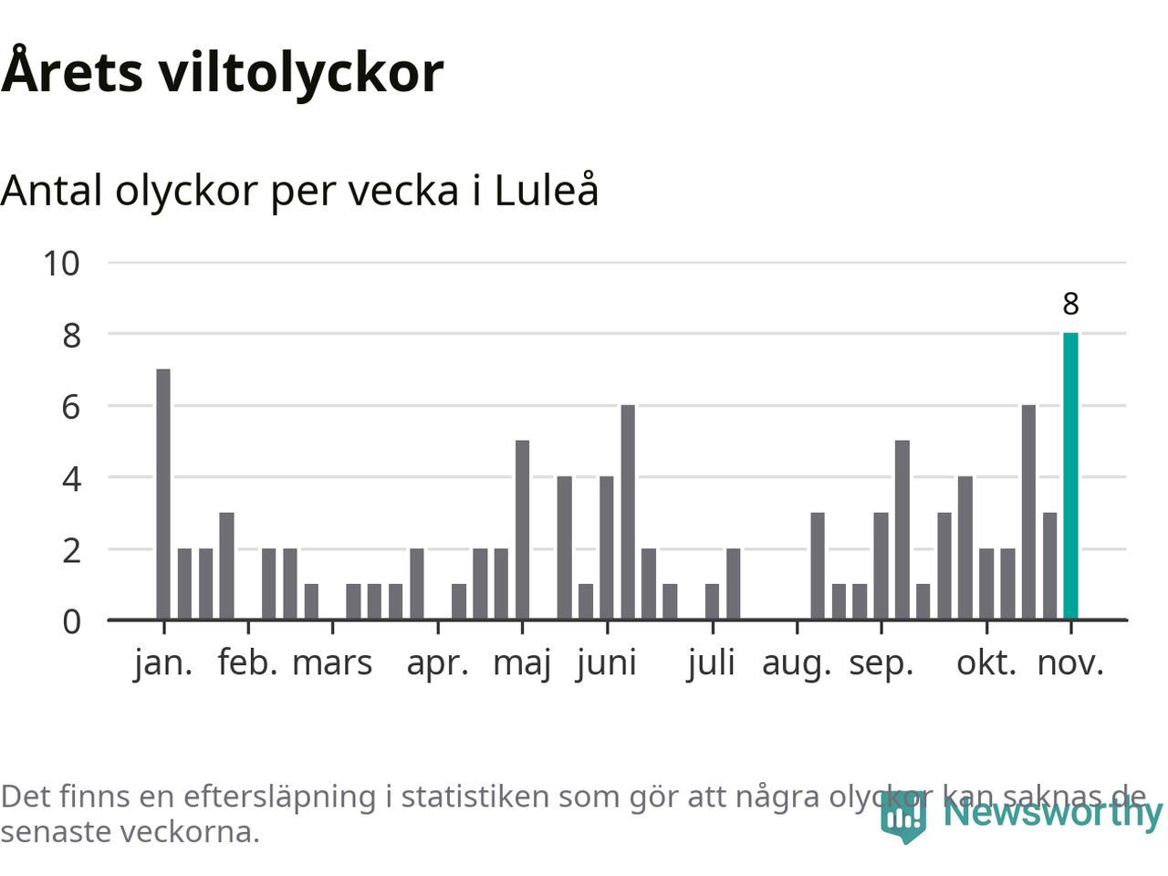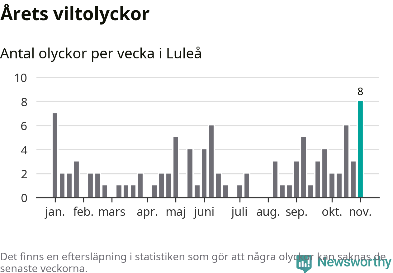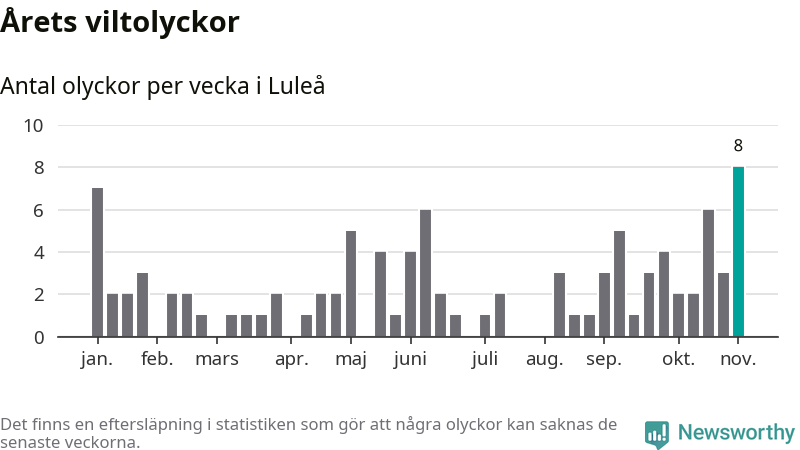 Under vecka 45 rapporterades åtta viltolyckor in i Luleå kommun.