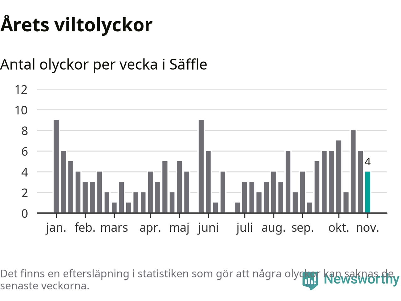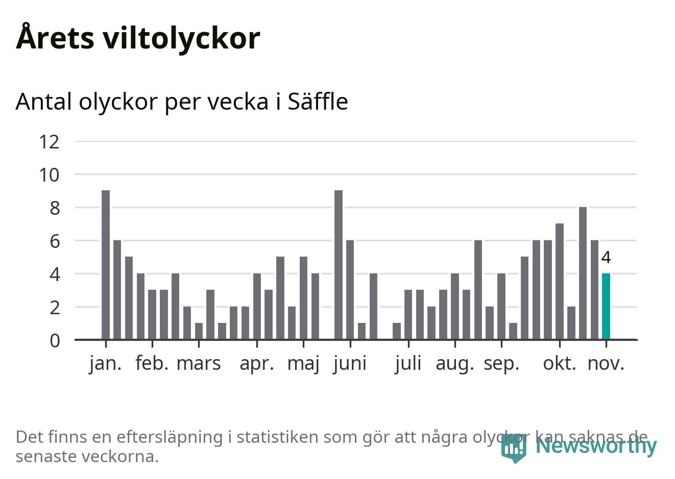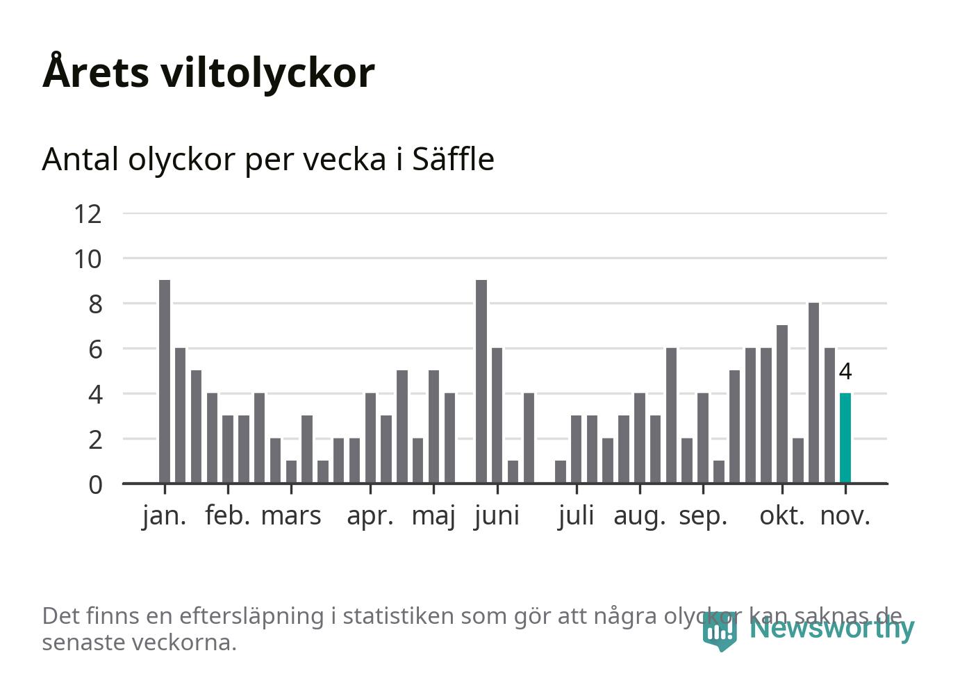Hittills har fyra viltolyckor rapporterats in i Säffle kommun från vecka 45. Se listan här.