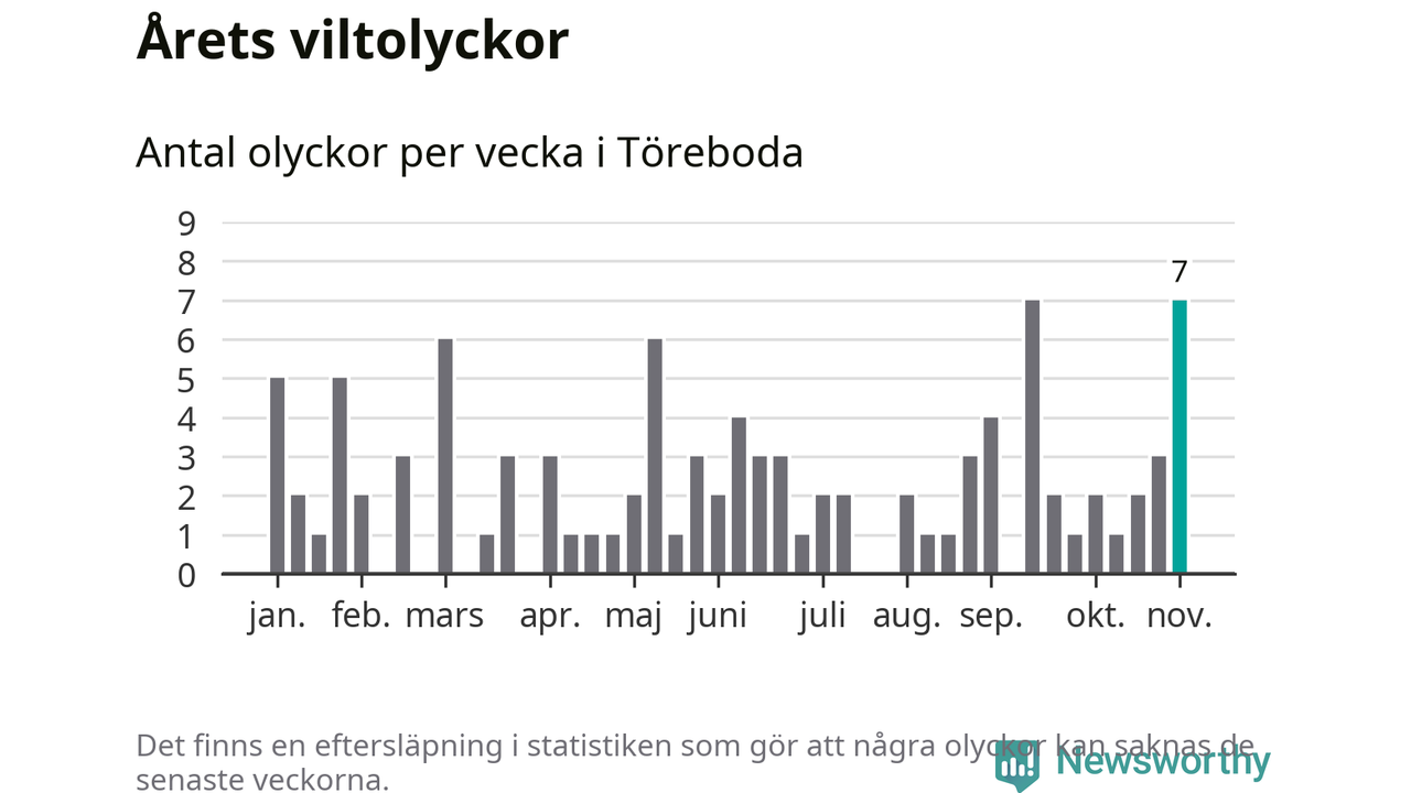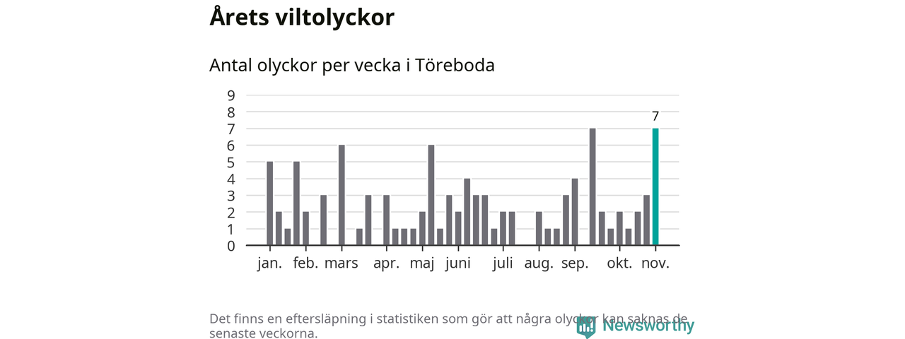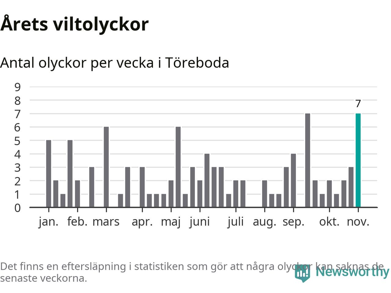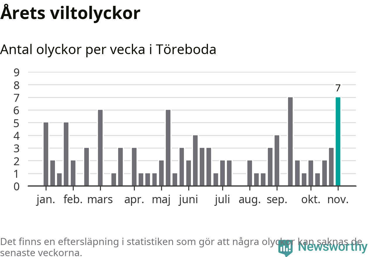 Sju olyckor på en enda vecka är däremot ovanligt många. Bara fyra gånger tidigare sedan 2015 har det skett